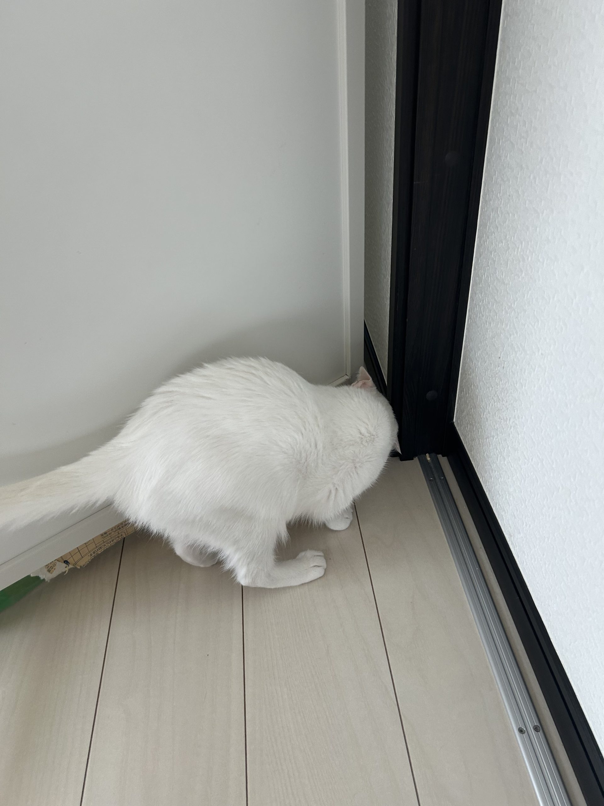 午後:メス部屋レモンちゃんケージ横の窓枠に短い爪がありました。左前足を気にしている様子です