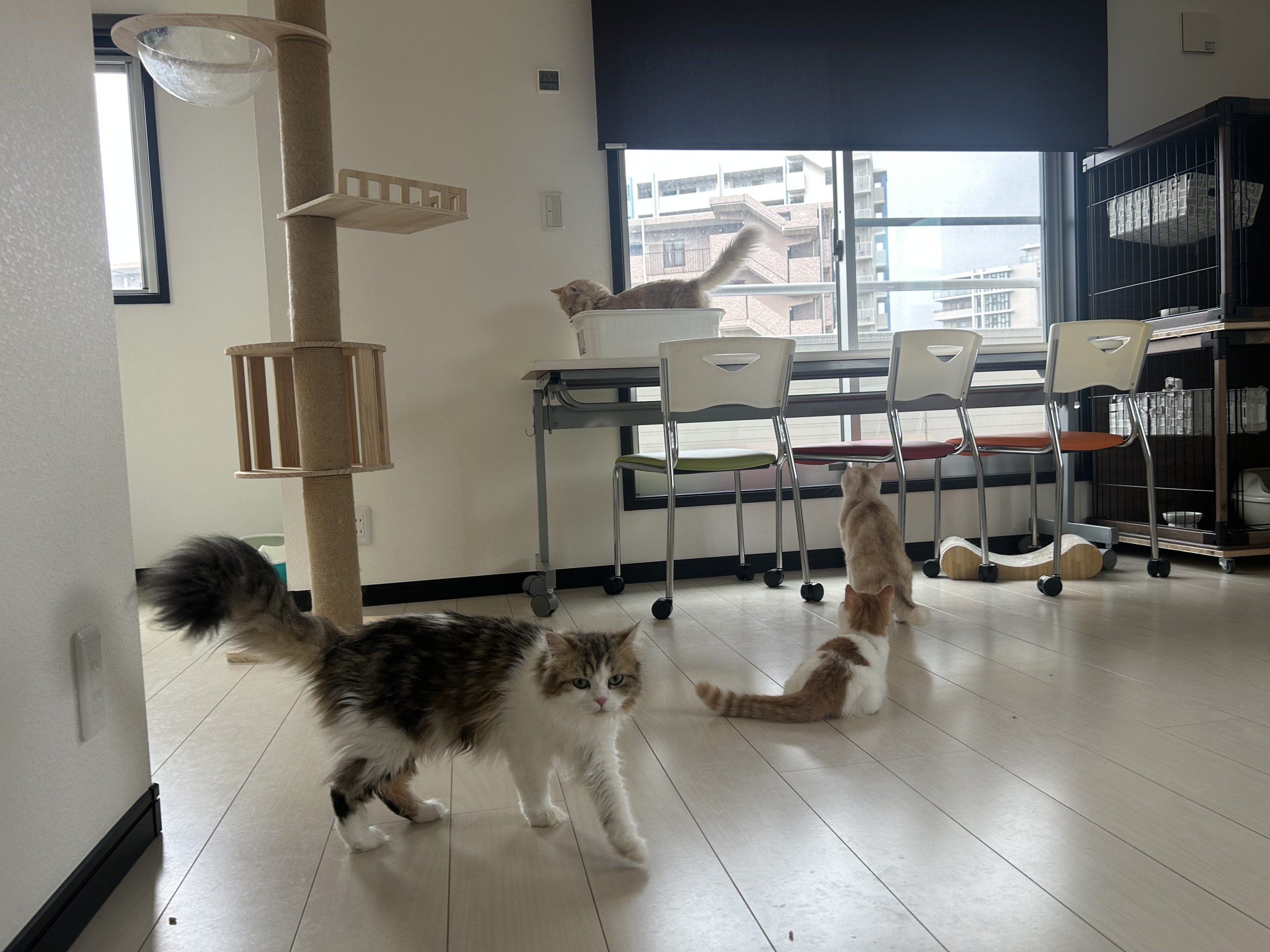 他は空調そのまま、本日はあまり日が差さないようですが、西日対策でメス部屋ロールカーテン閉めています。