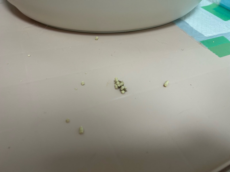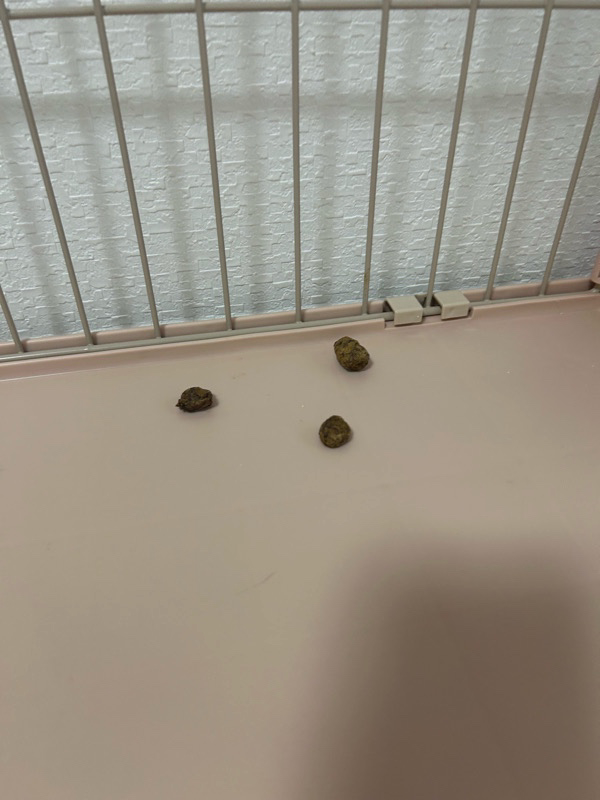 オス部屋の殿くんケージ内トイレに緩かったのか、少し便が落ちていた。
