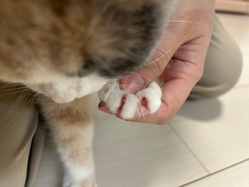 レモンちゃんの爪を確認すると、左前足の真ん中2本(親指を除く)がほんの少しの爪しか残っていない状態でした。