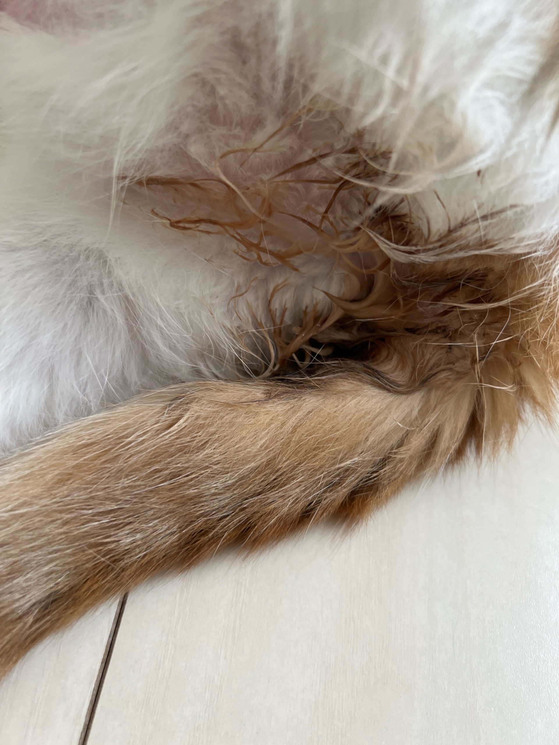 お尻付近や尻尾が湿ってるので間近かと思われる
