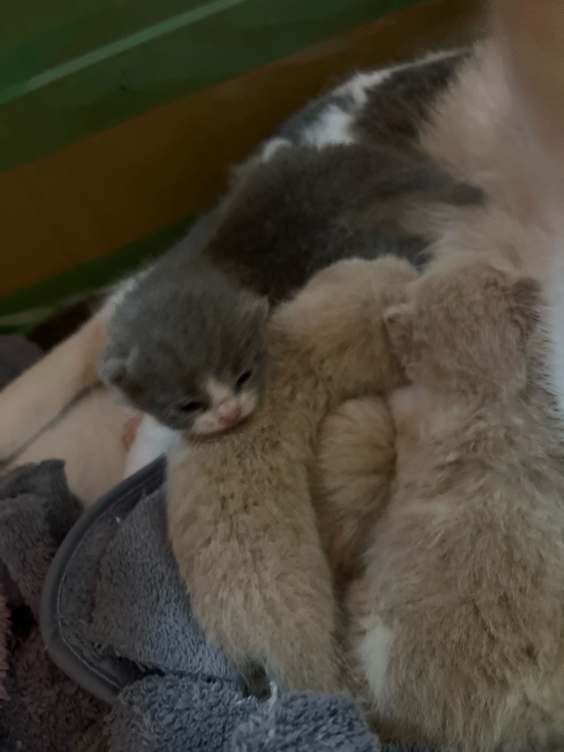 総合栄養食のチュールをご飯にかけるとその部分だけ食べてくれた。その後お乳を飲ませている様子がある。