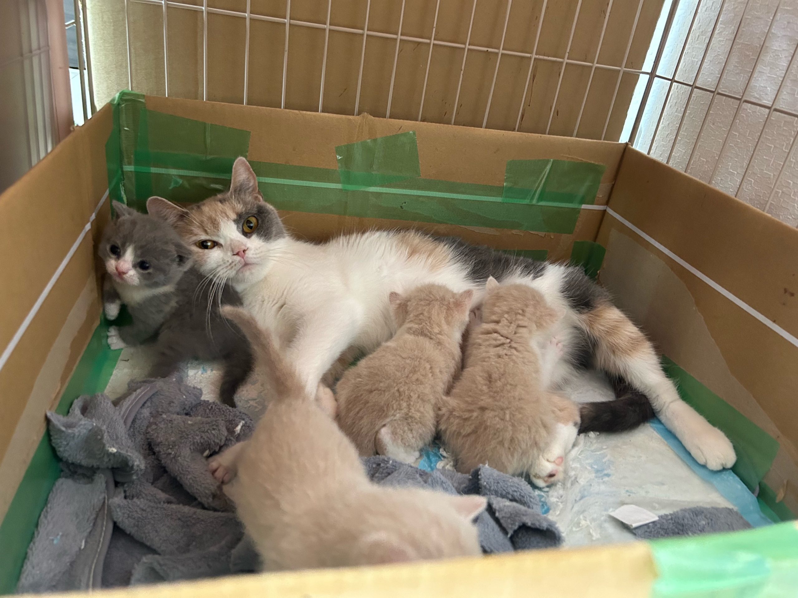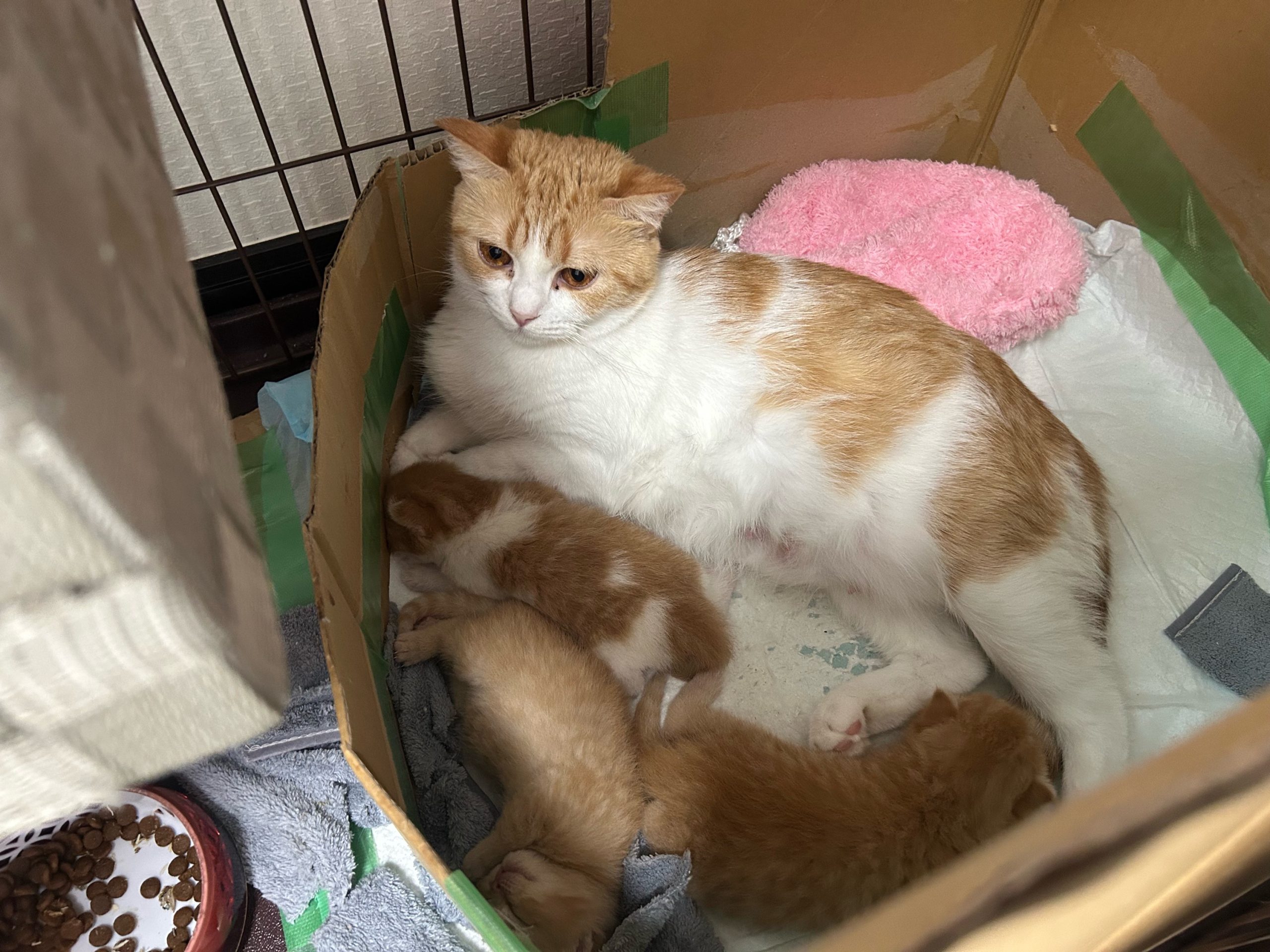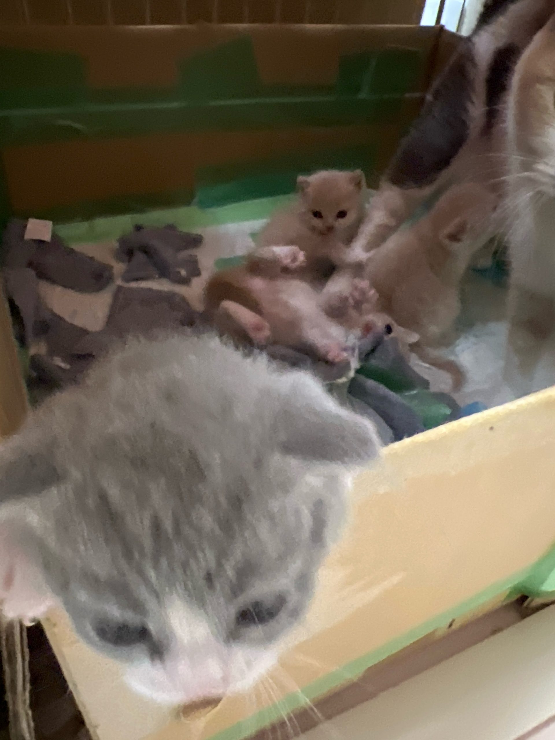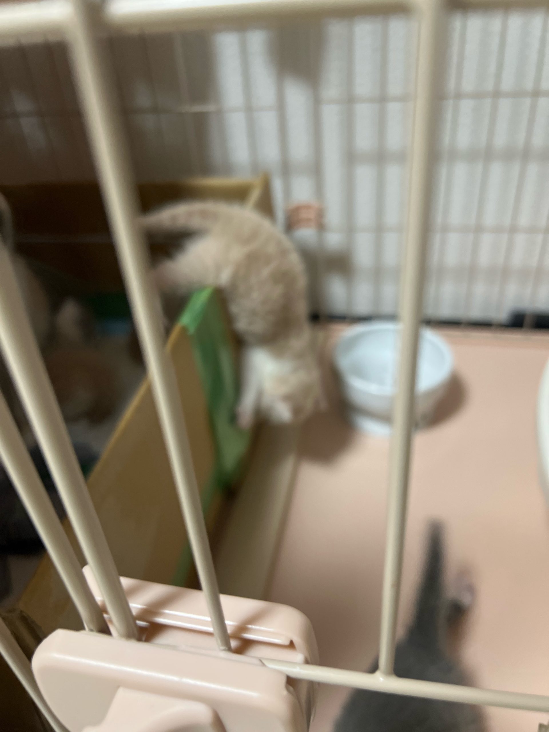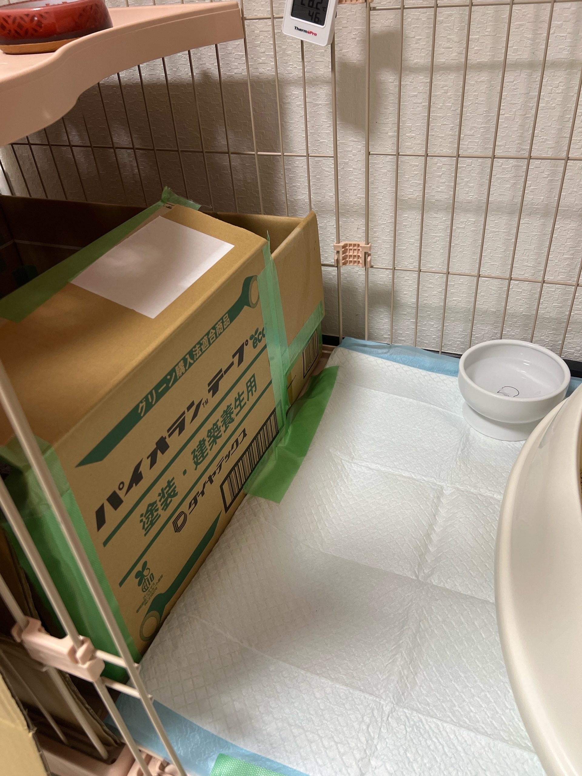 1ちゃんは小柄だかやんちゃでお産箱から出ていた‼️そのあと3ちゃんも出てきたの少し壁を高くしてみました