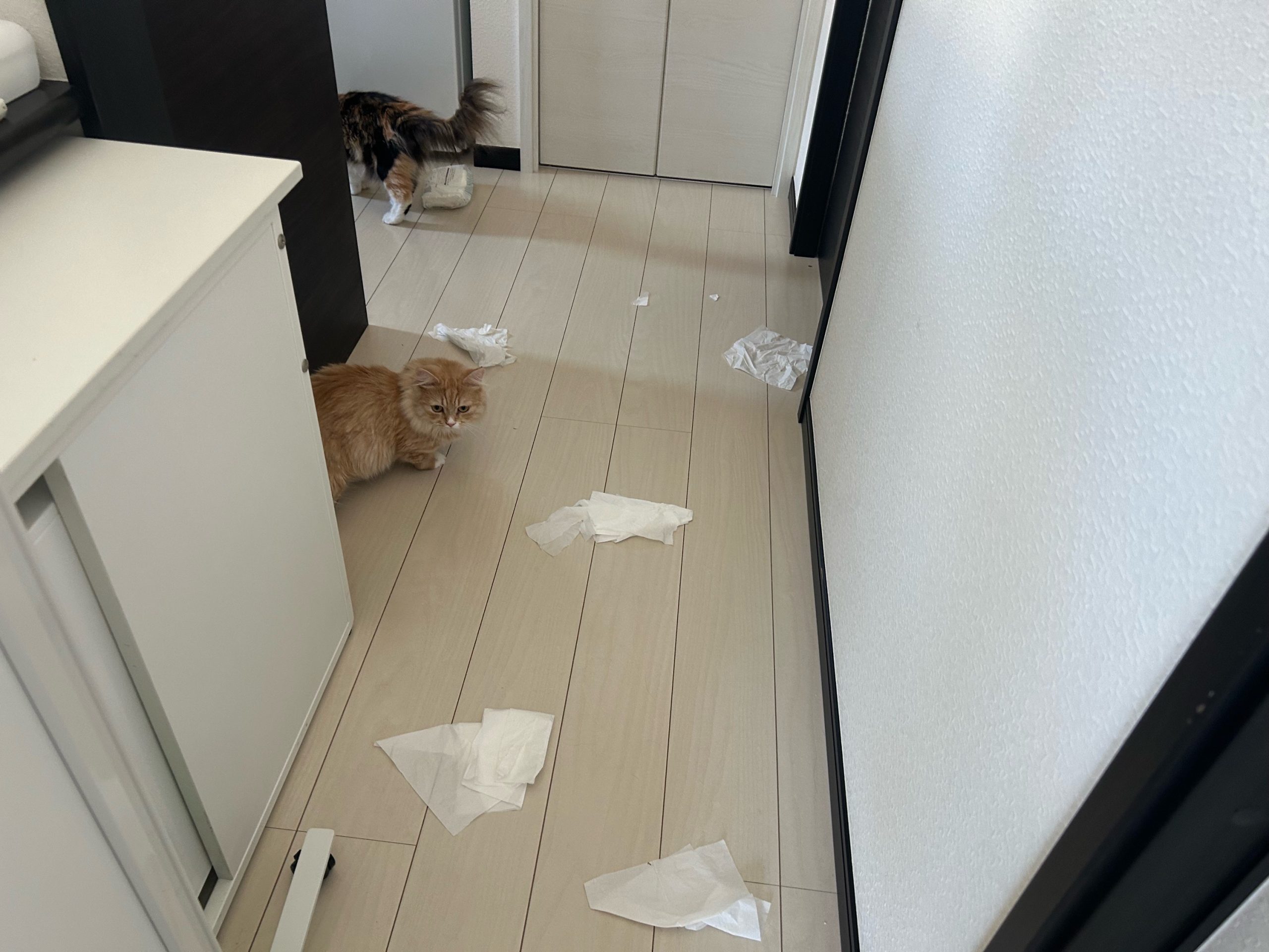 午前:やはり2階のパーテーションのロックは突破されており、ティッシュで楽しんだようでした。