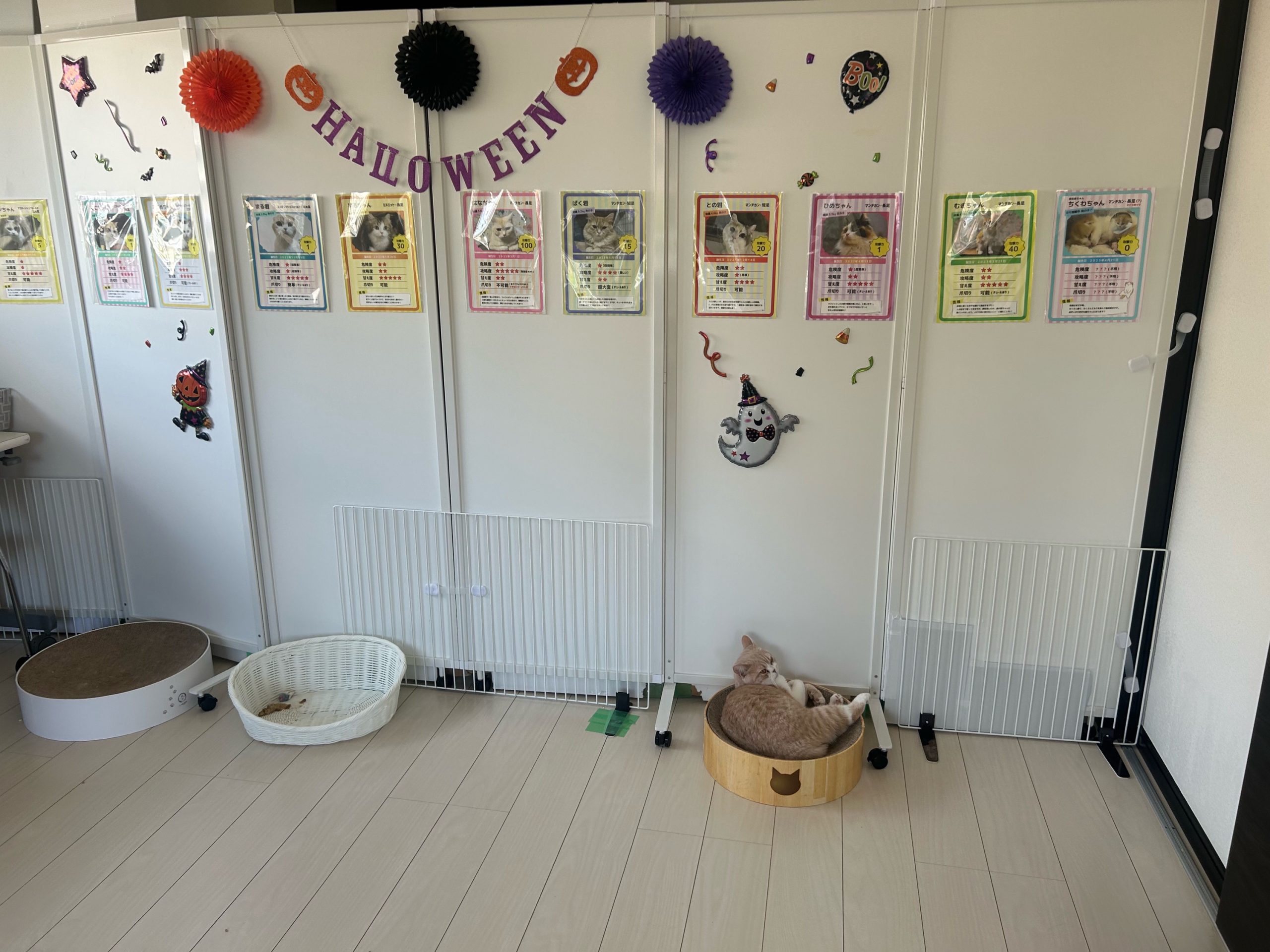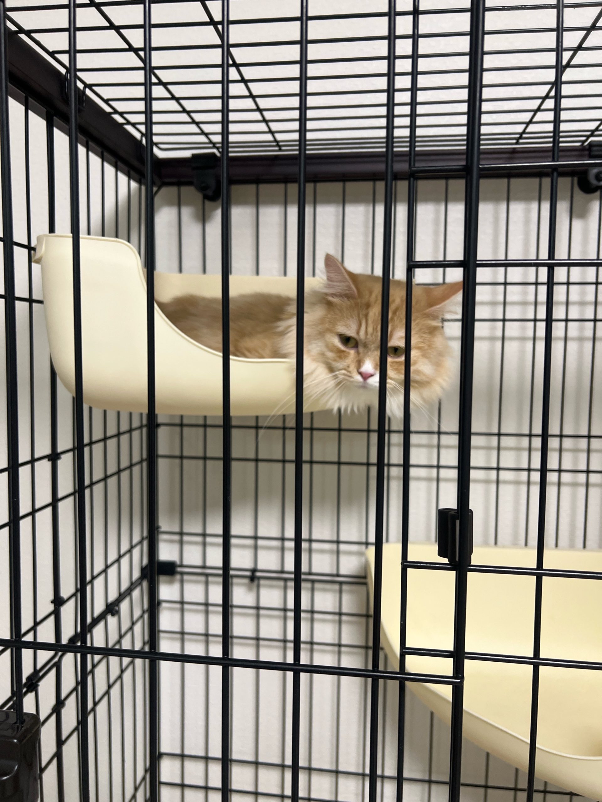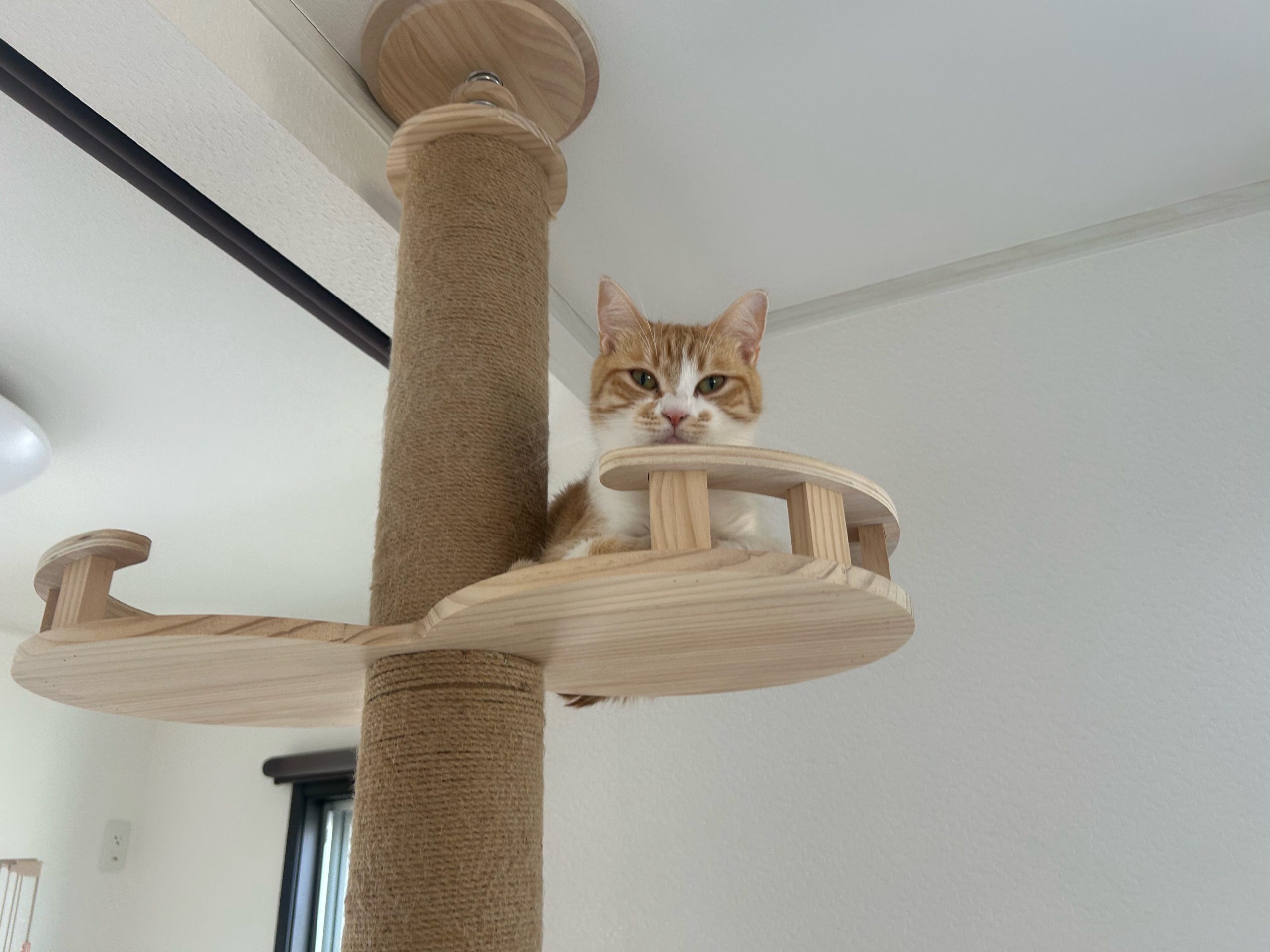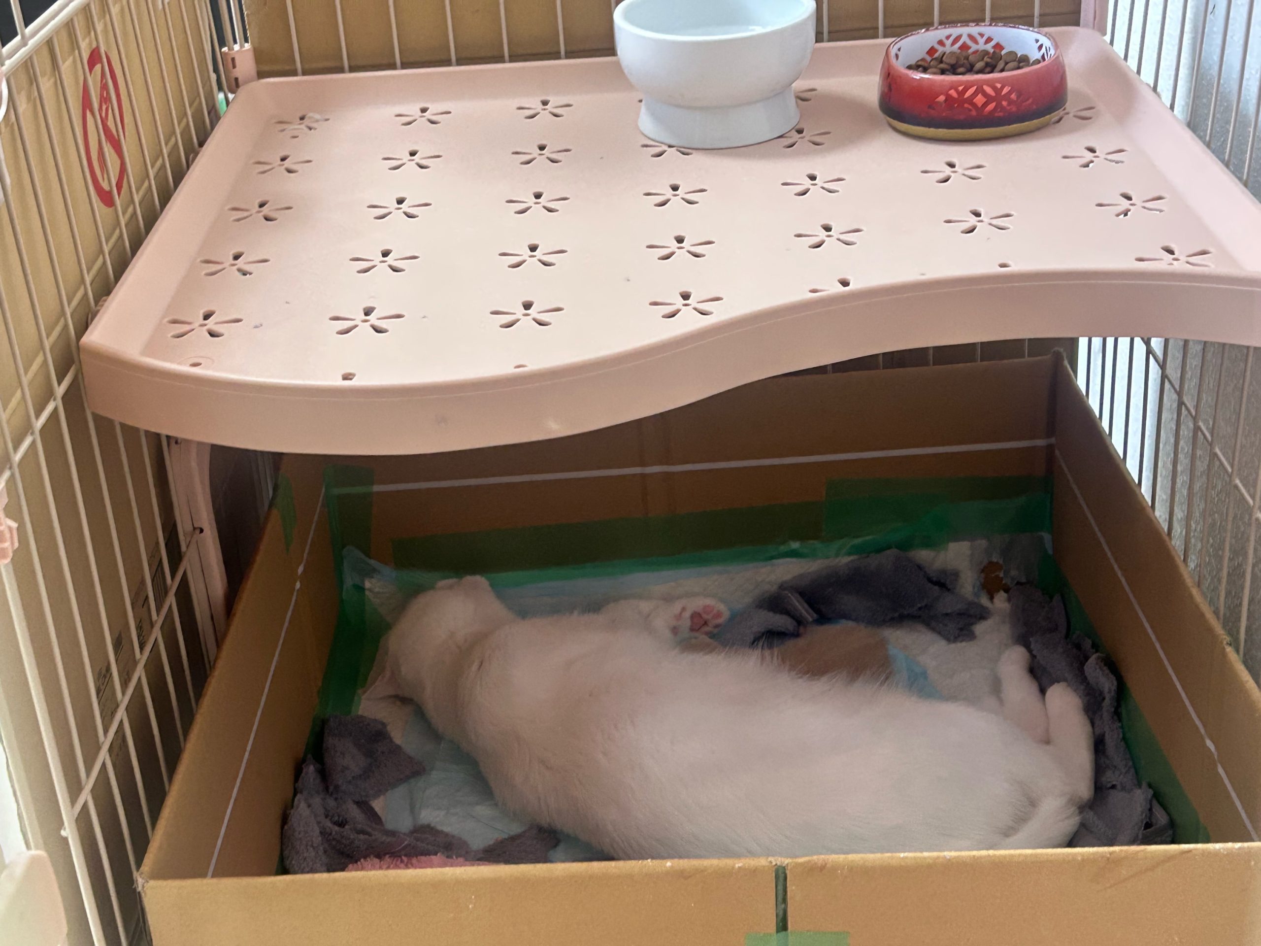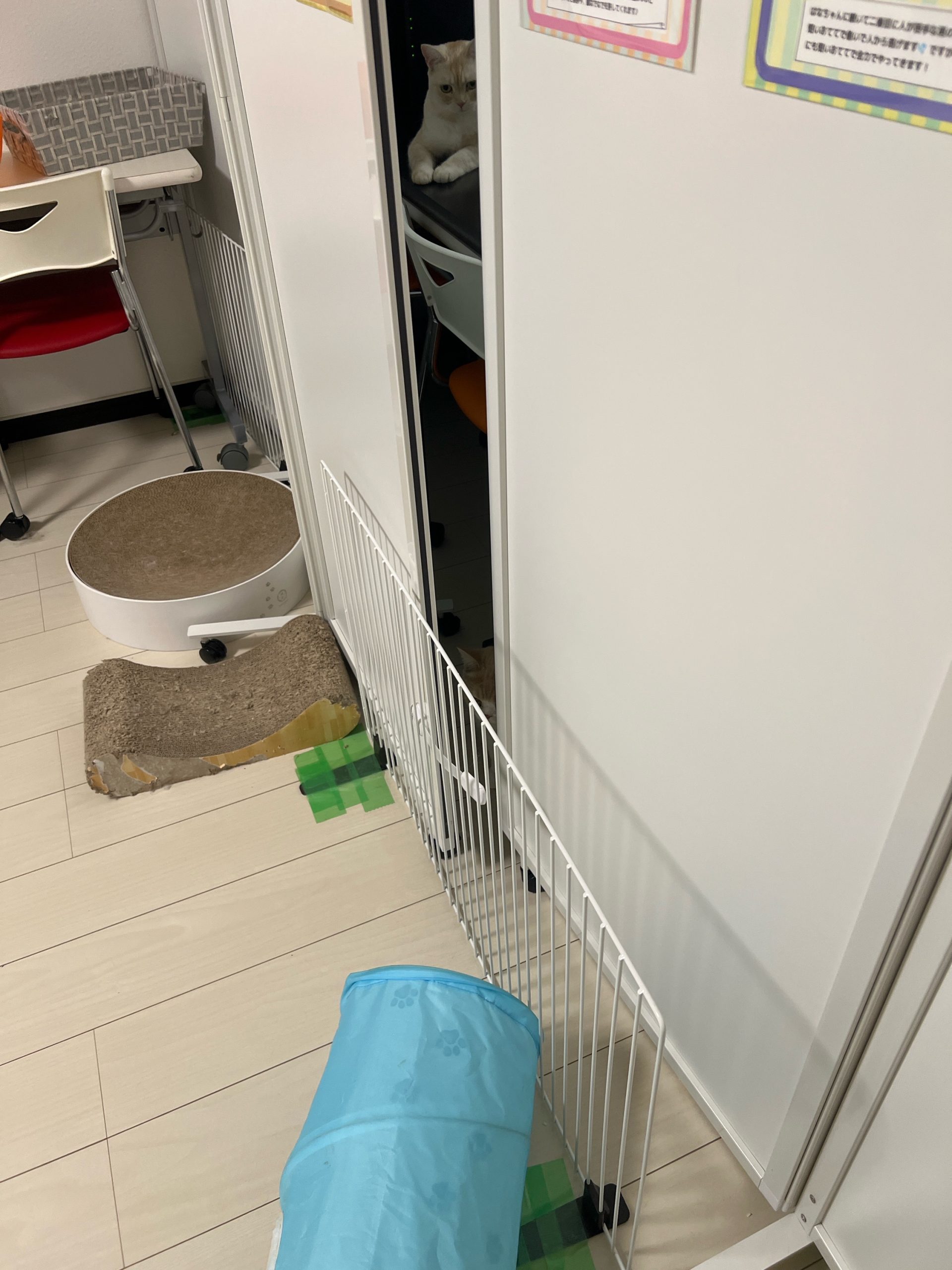 午前:2階は今回もパーテーションの突破はなく、むぎちゃんもキャットタワーで寝ていました😴