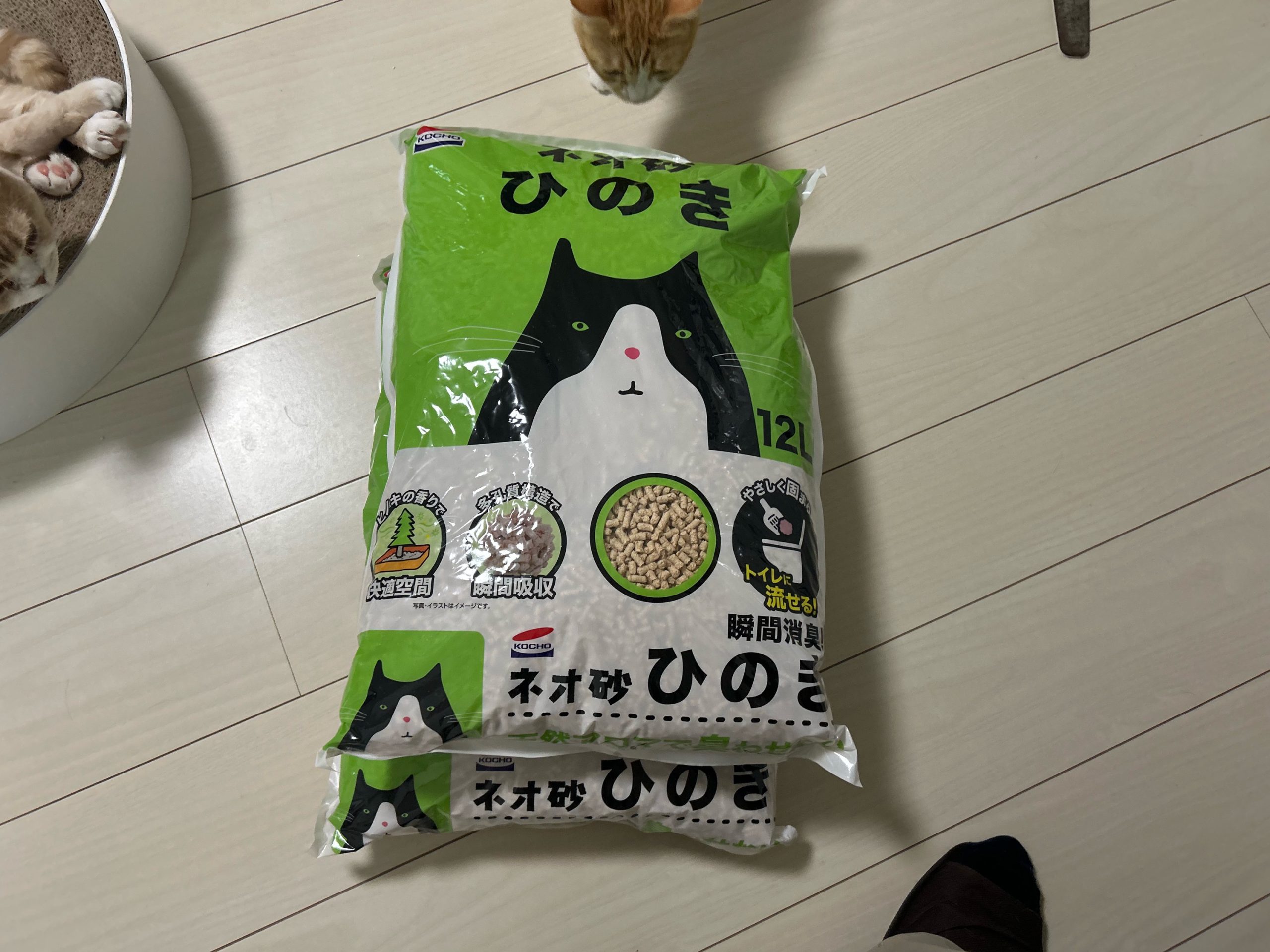 午後:猫砂を普段のものだと消臭しきれていないということで、浜田さんと話し合い別の猫砂を試してみます🙆🏻♀️