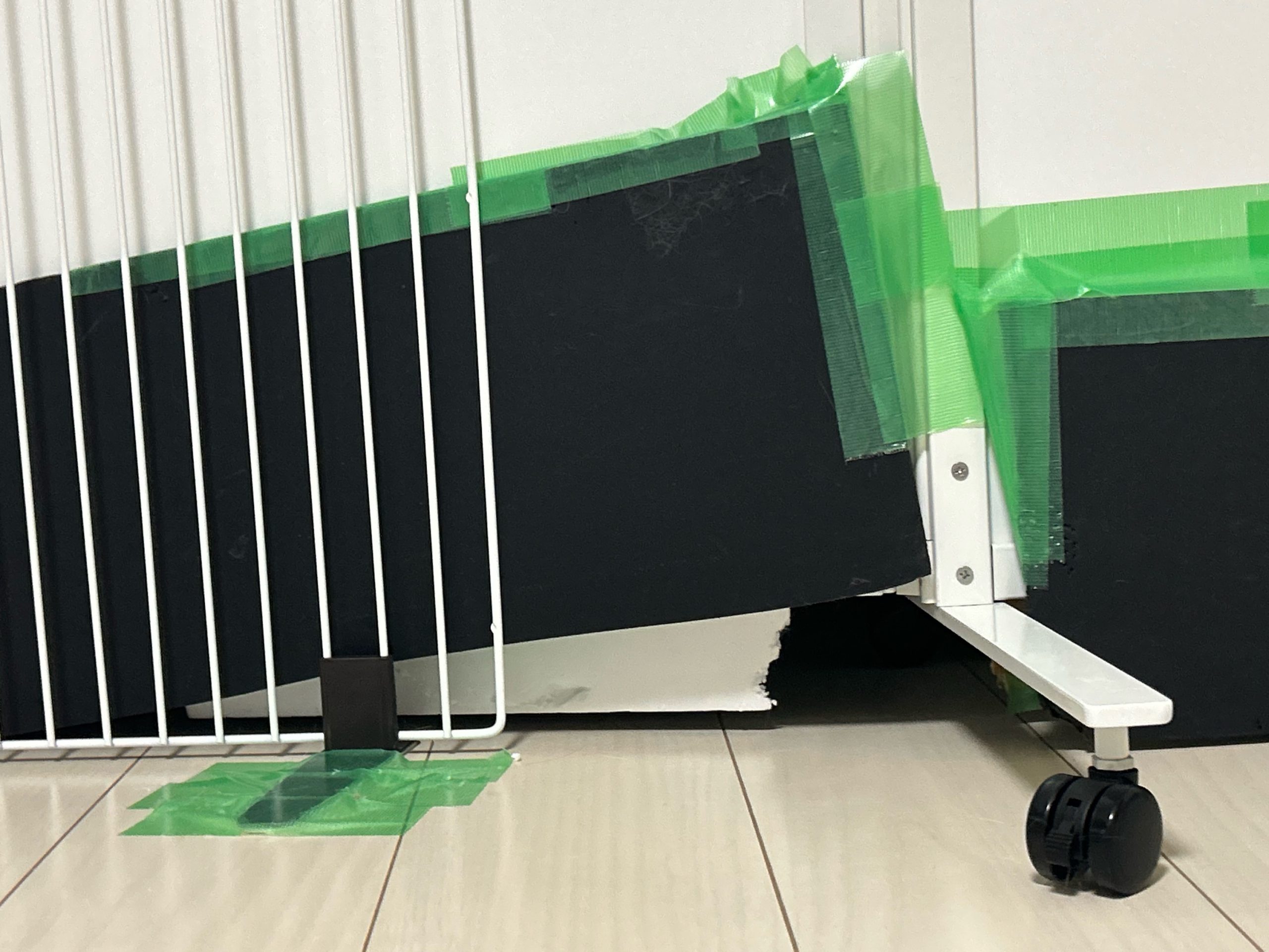 次の対策として、お隣の板と下の部分から橋のようにテープを貼り付けています。