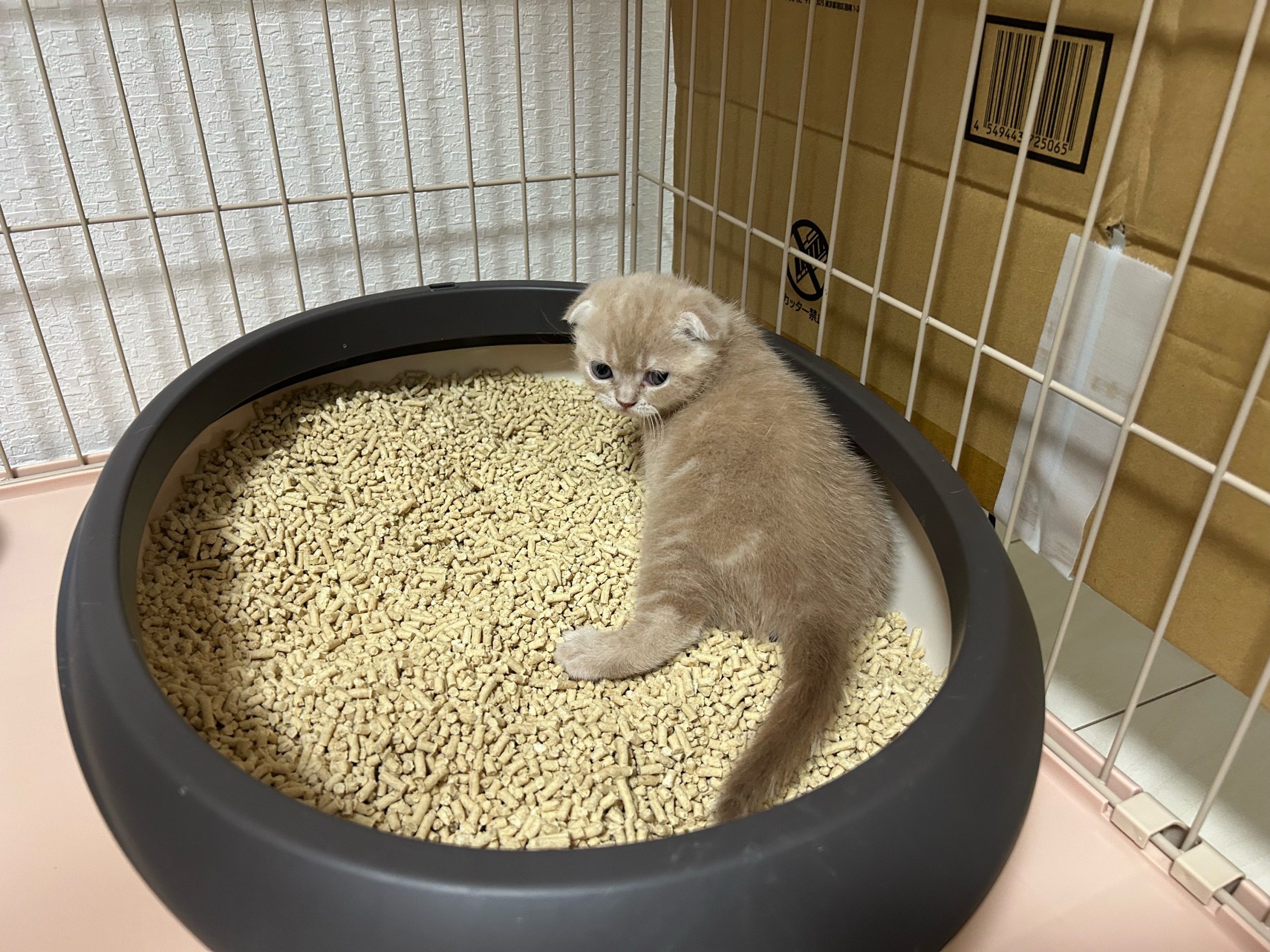 作業終盤に2階で赤い排尿?が体重計のおけの中にありました。子猫か他ねこか、だれのかがわからなかったのですぐ子猫たちはケージへ。