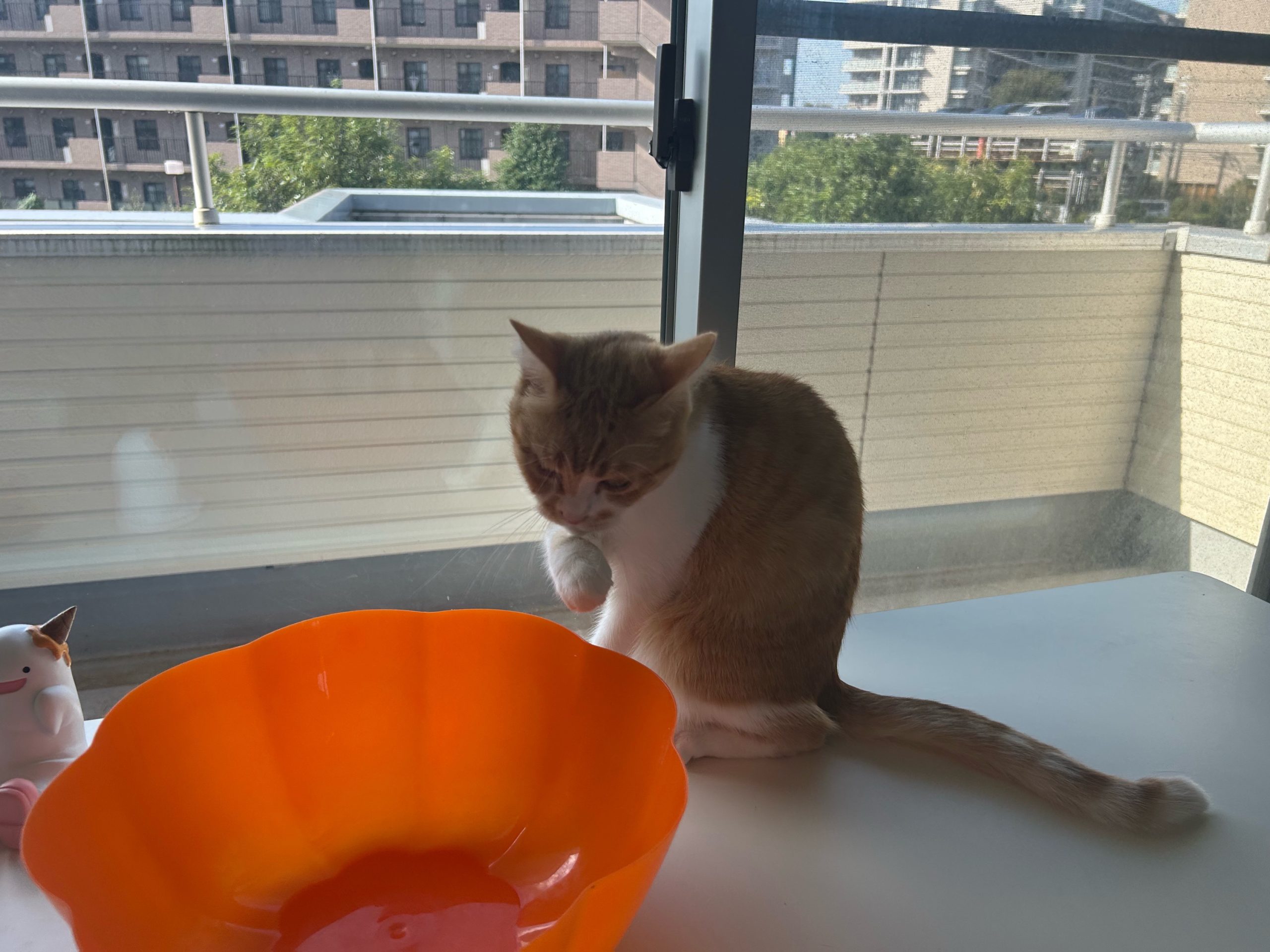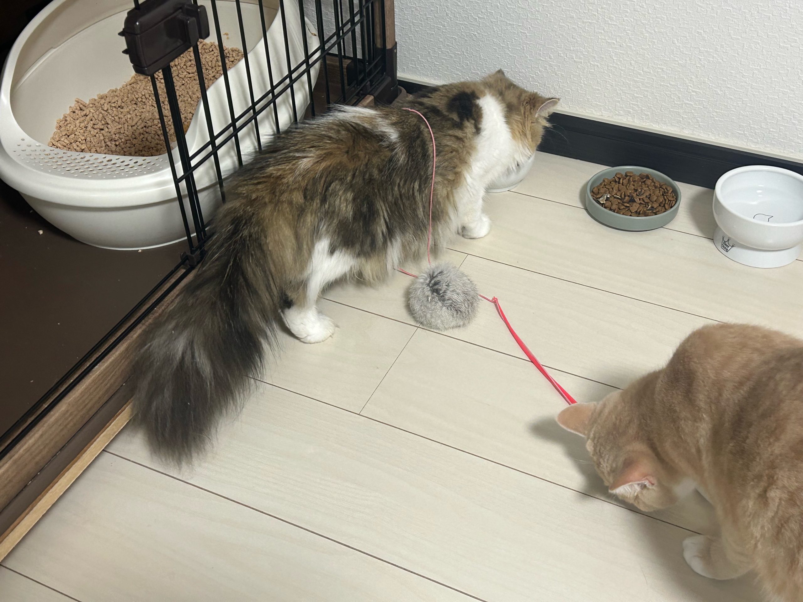 マロちゃんが猫じゃらしを着てしまっていたので、お世話終了時にいつもの場所に収納しました。
