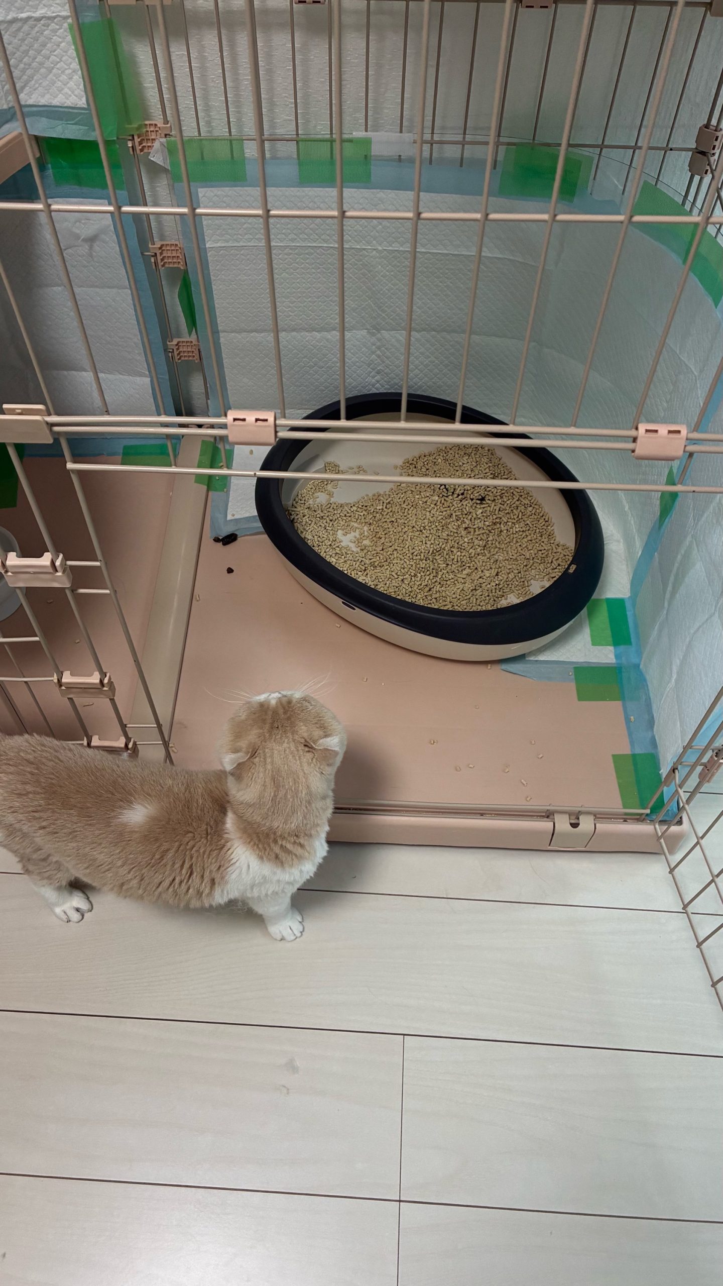作業中にレモンちゃんのおトイレがはじまりそうで前に押してあげると上手く中でできました。はみだし阻止👍