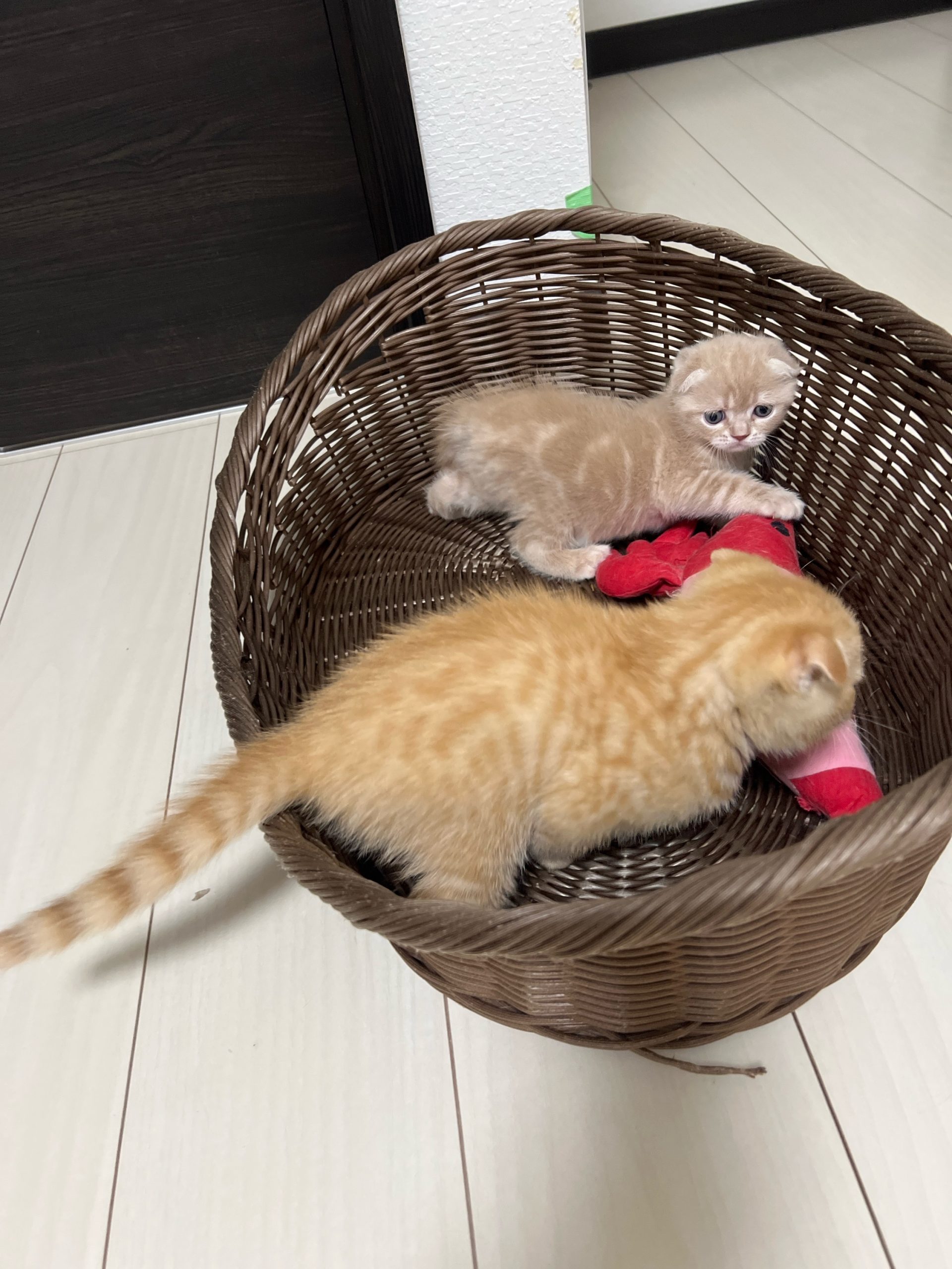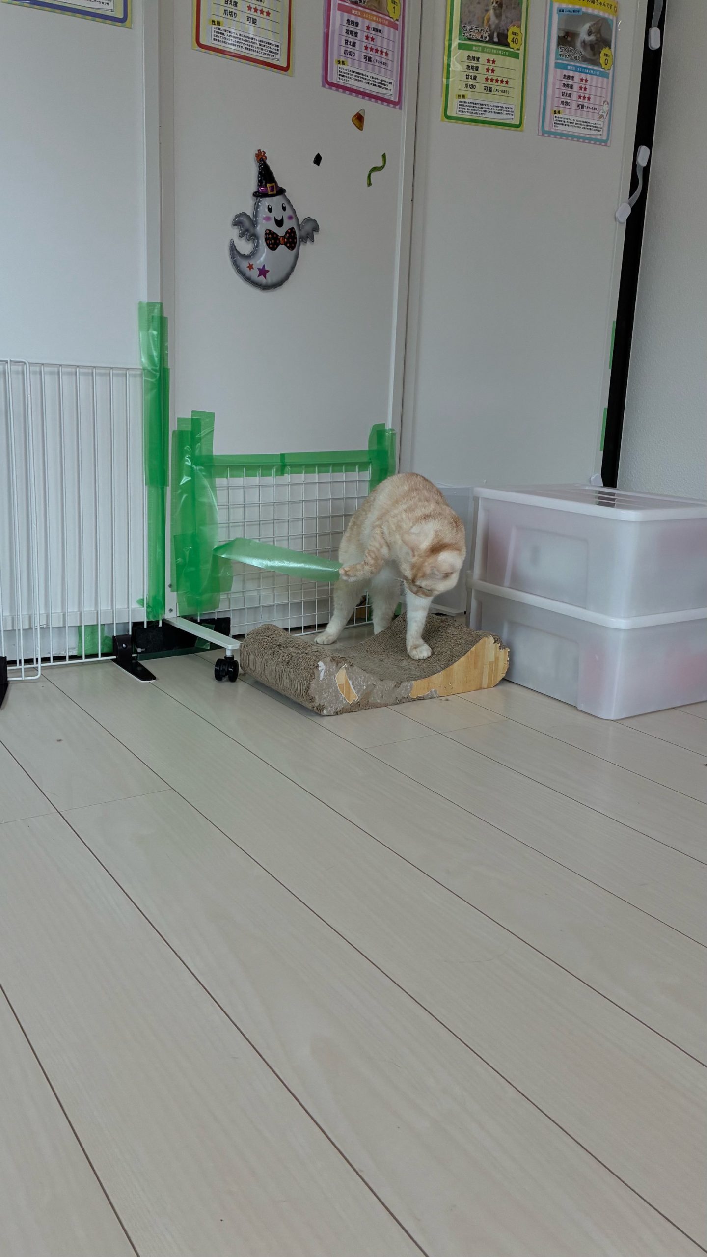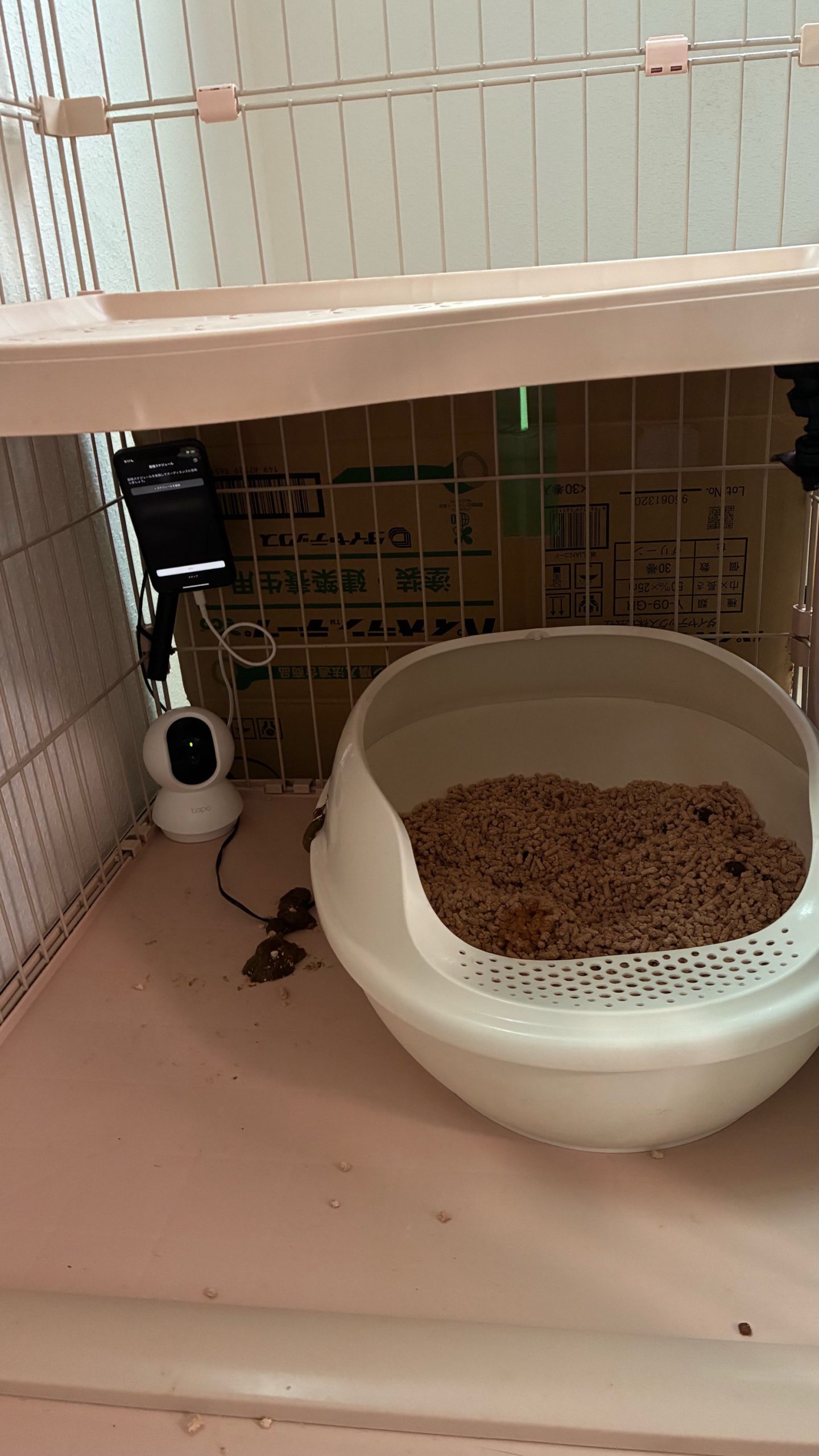 子猫たちはお部屋中を走り回っています。また赤い色混じりの排尿を発見。おそらく子猫組かと思われますが、だれかは特定にできず。