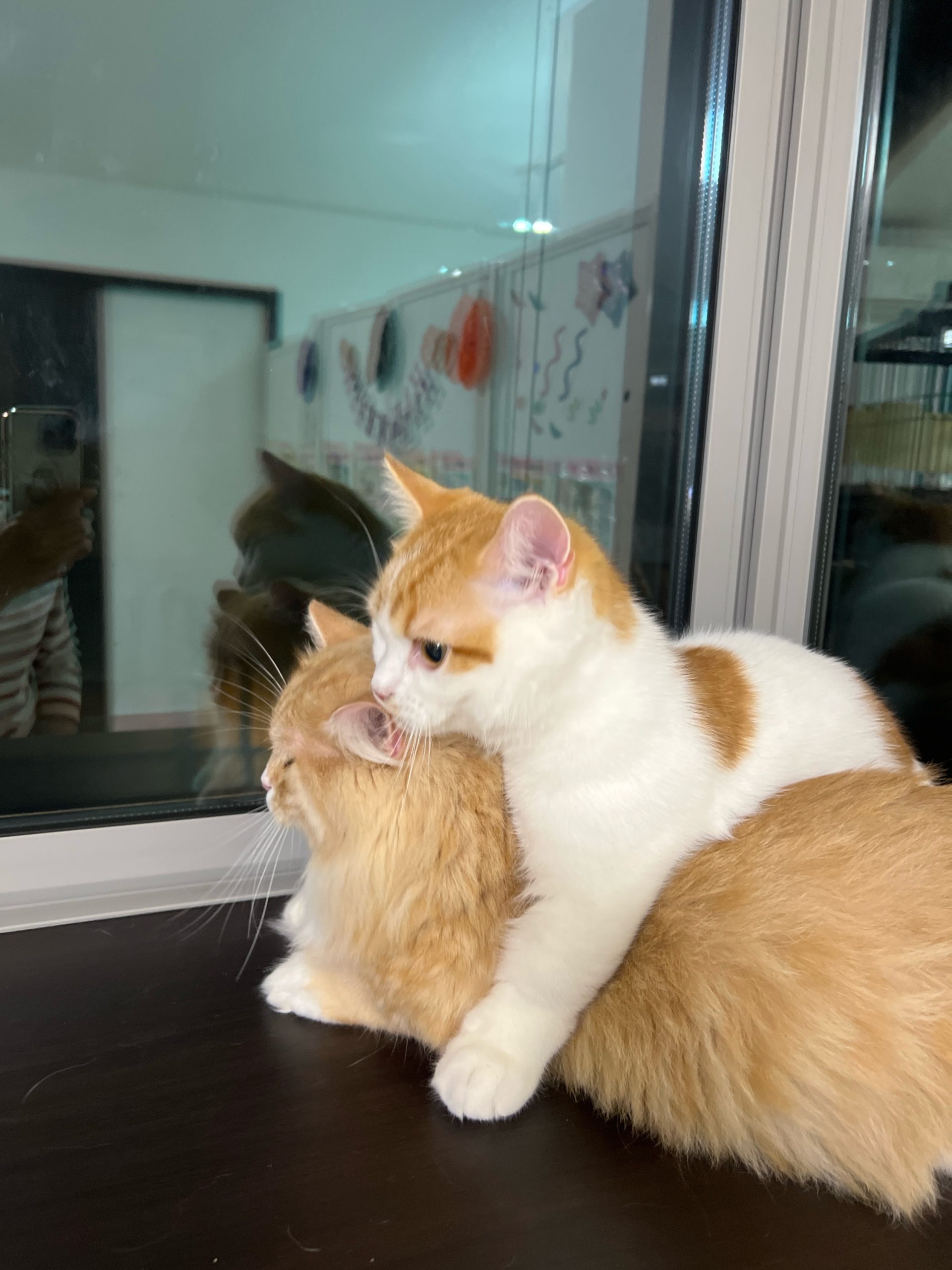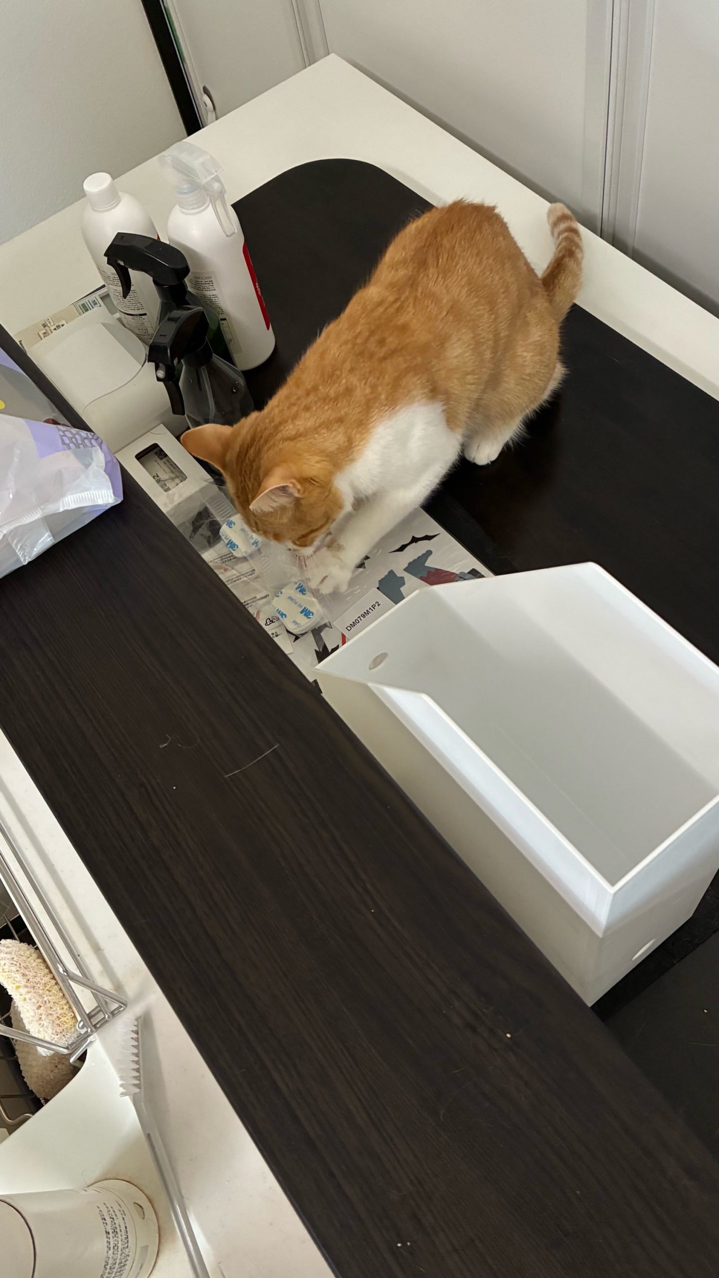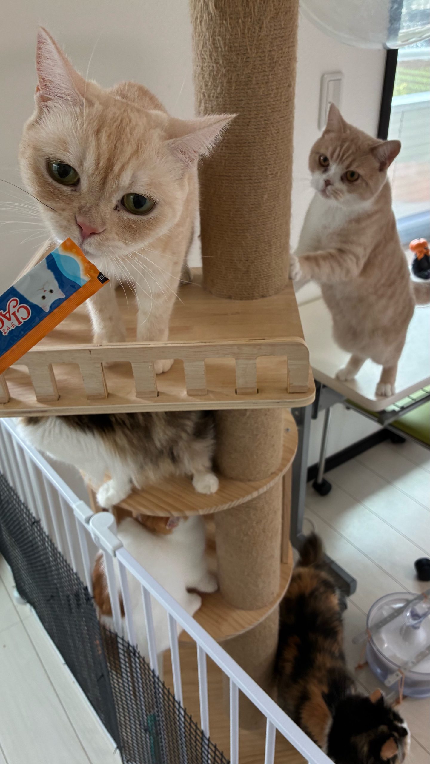 作業中むぎはなが侵入。はなちゃんが出てくるのに一苦労でちゅーるをひとつ使い、仲良くみんなでたべました🥲