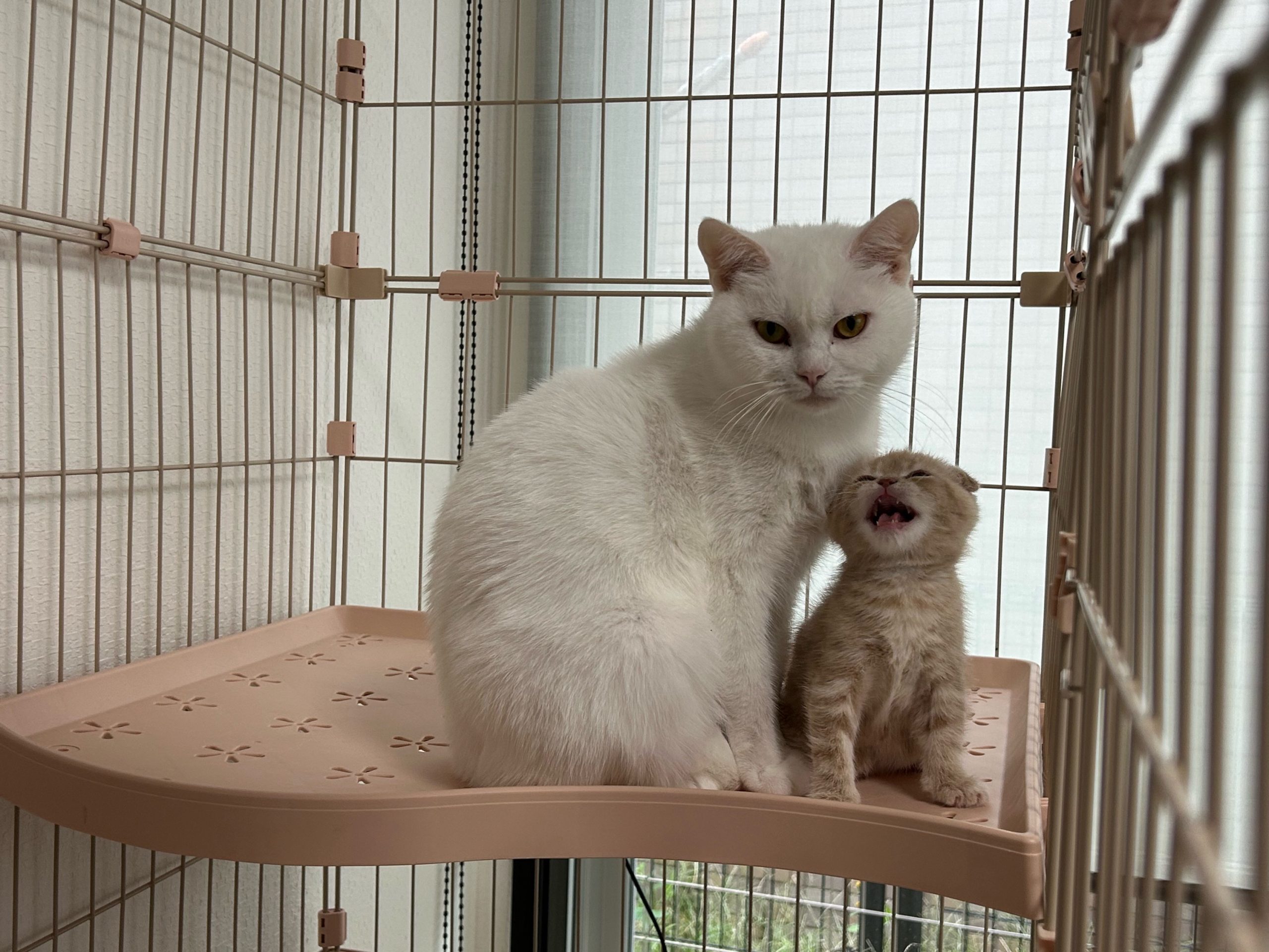 午前:なぜかおこめ赤ちゃんが上の段にいました👀