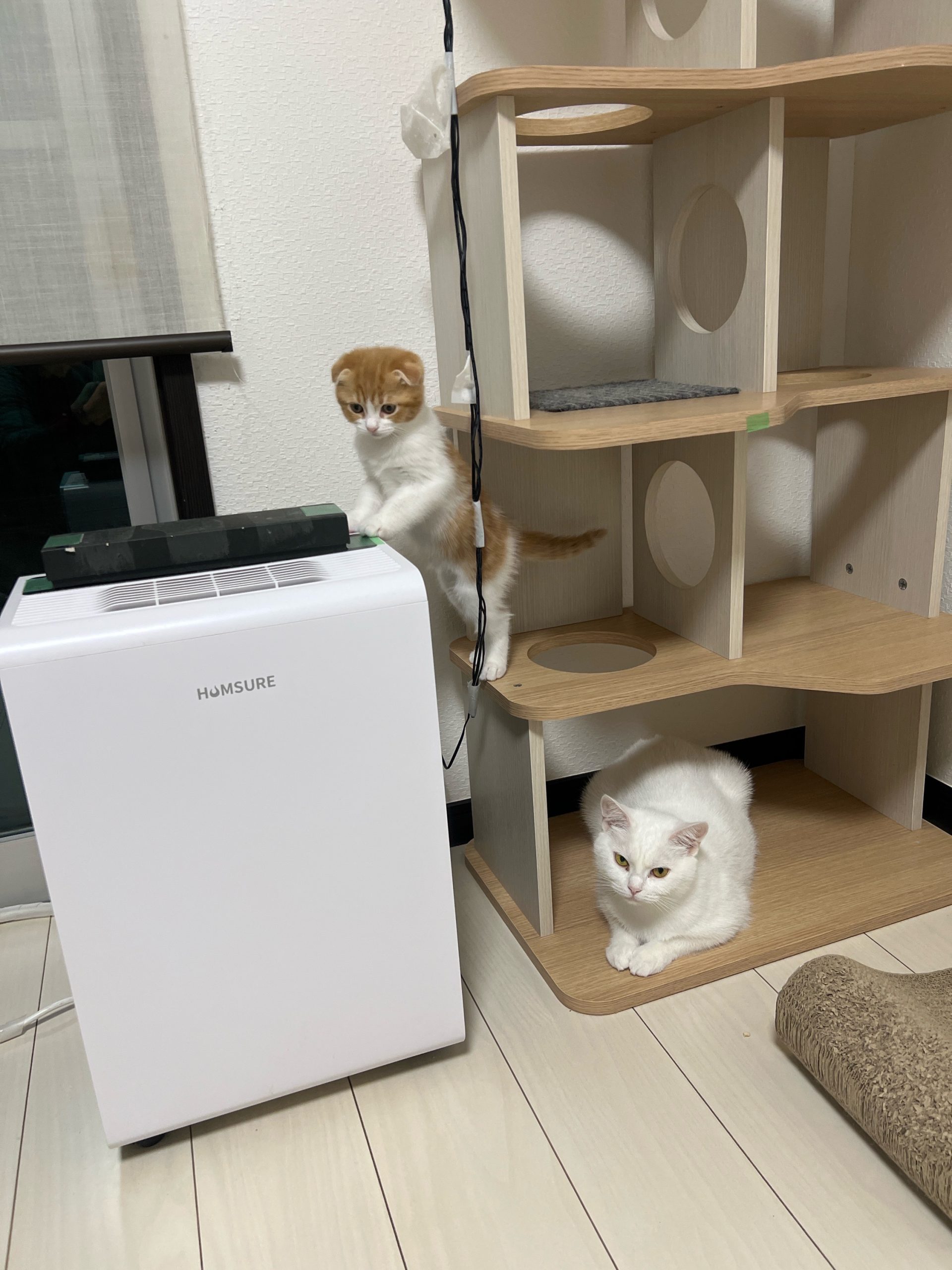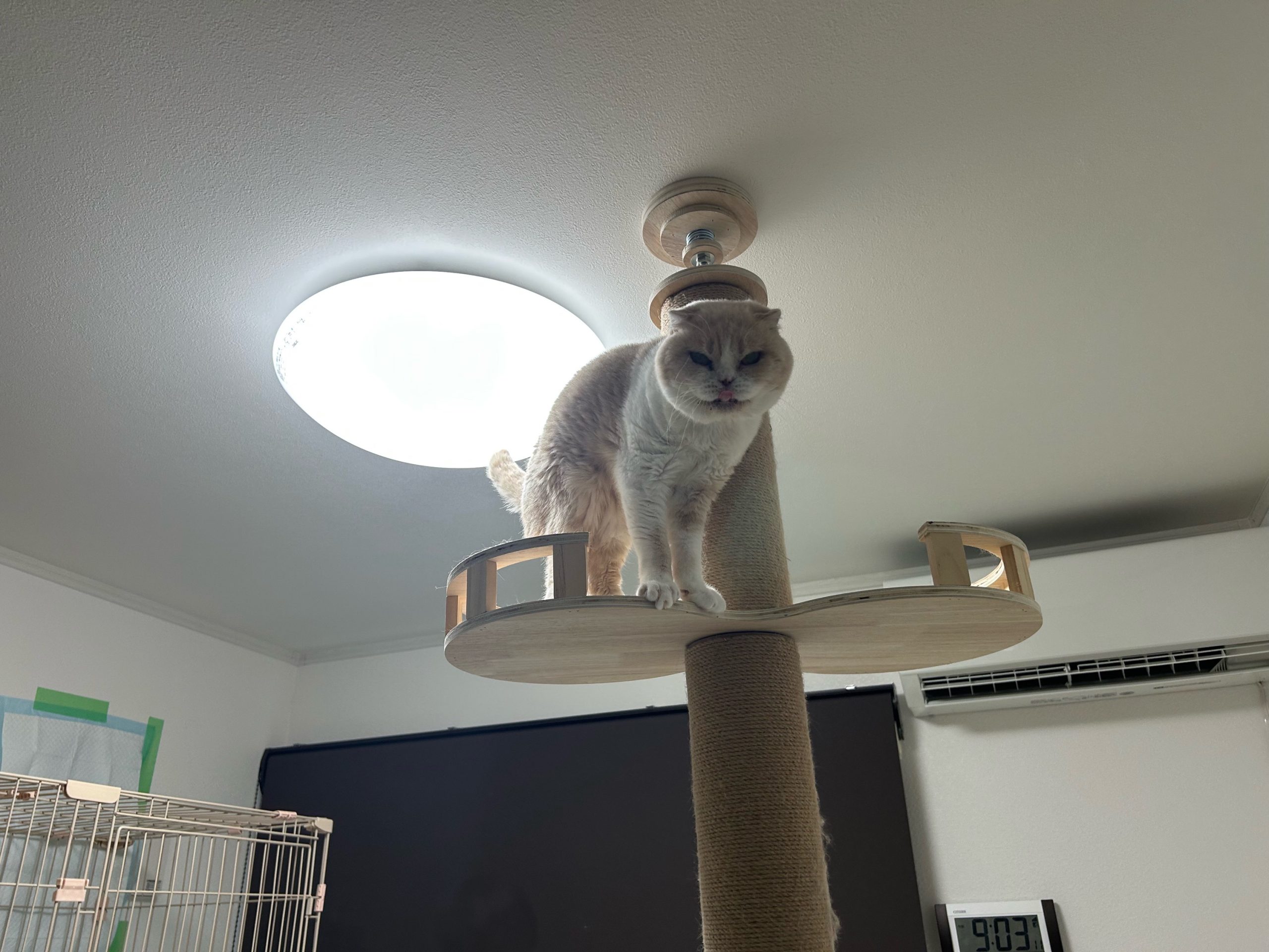 まるくんもなぜかキャットタワーの最上段に👀‼️