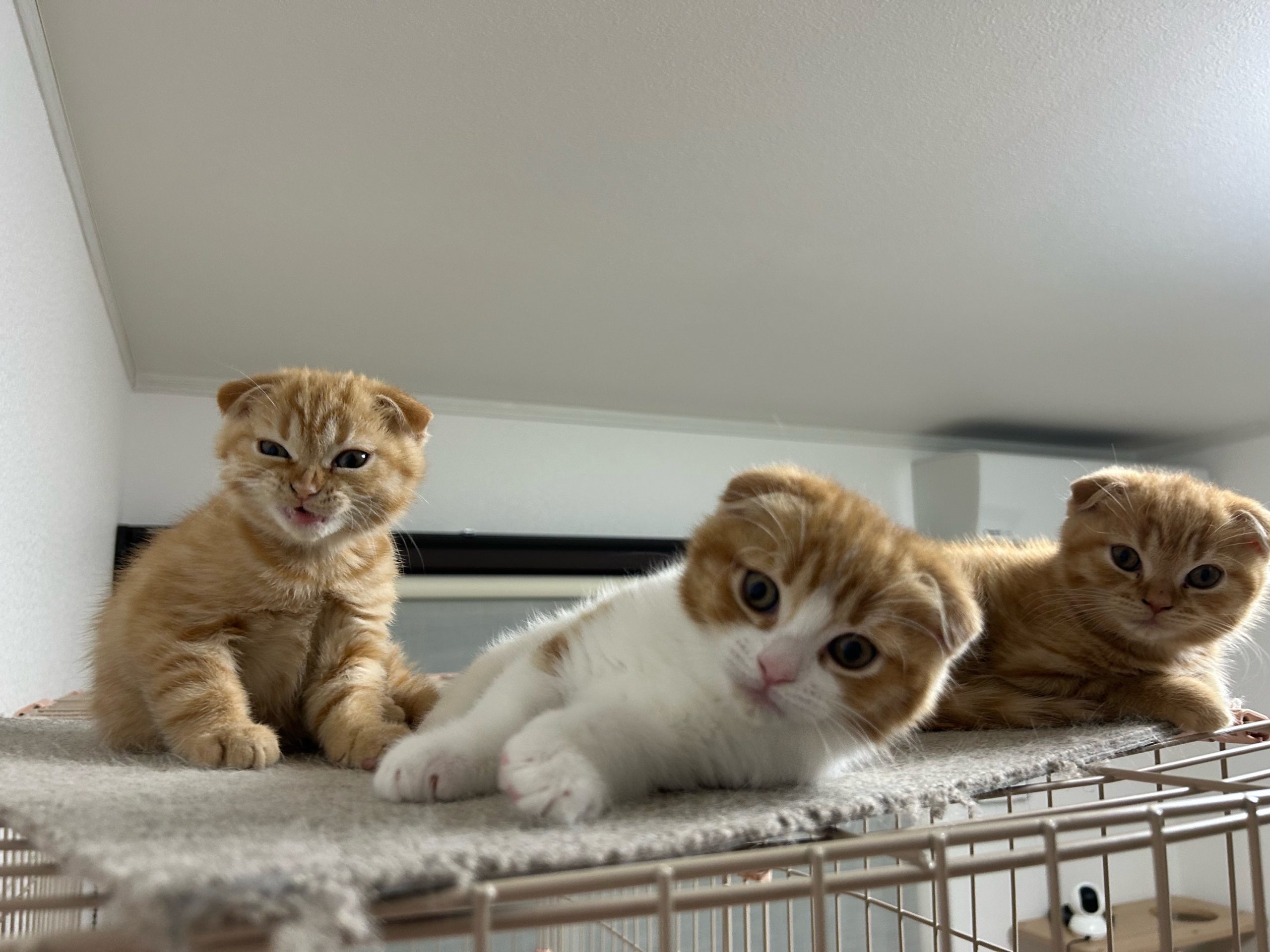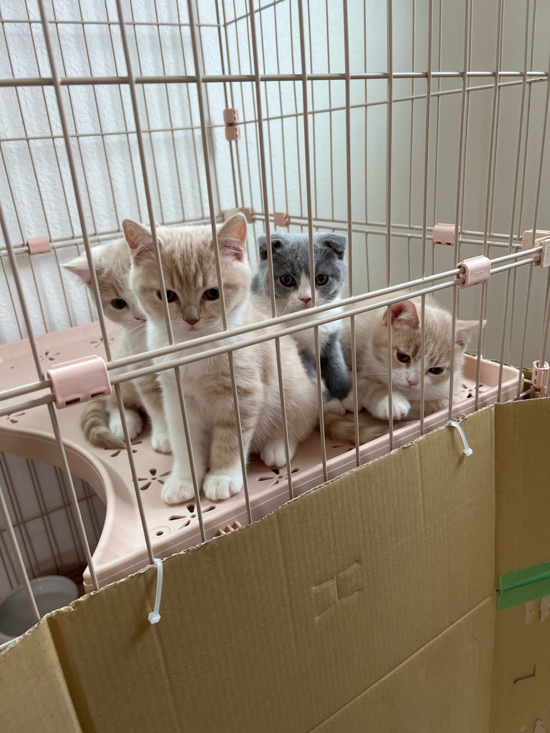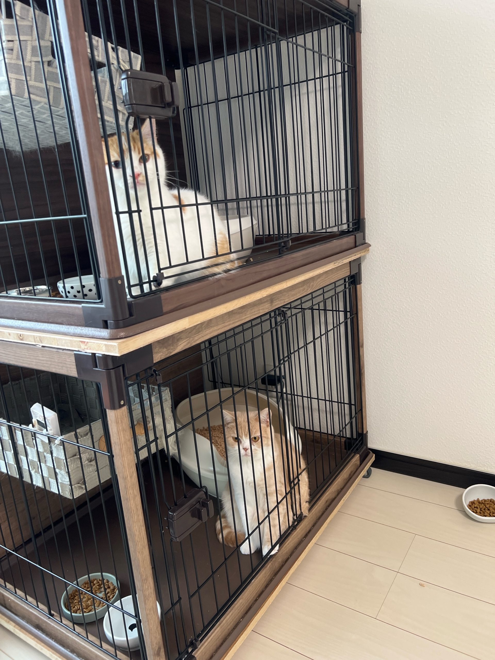 3匹ともおこめ親子ケージ上にいて様子を見ていたが下りられないようなのでおろしました