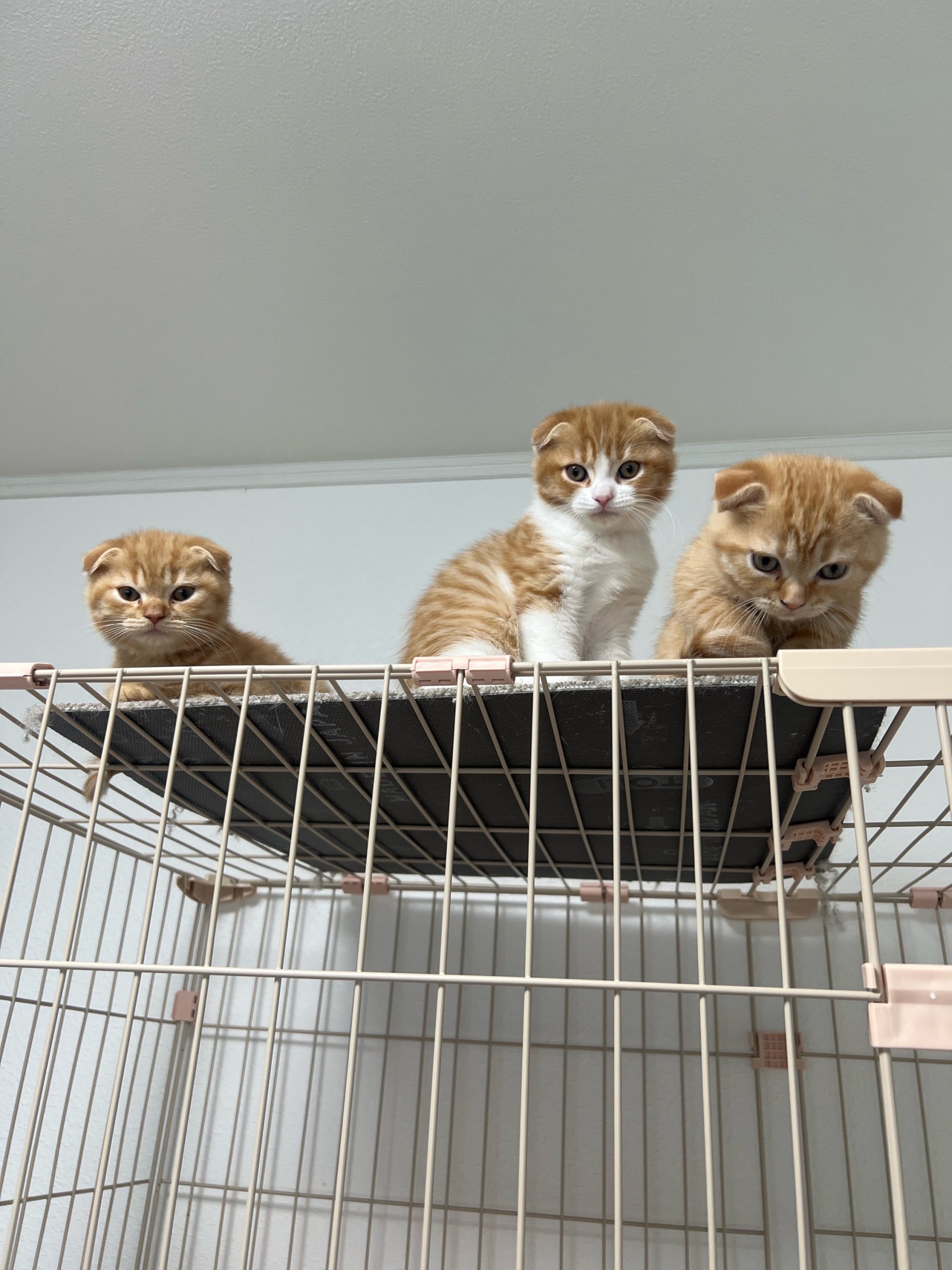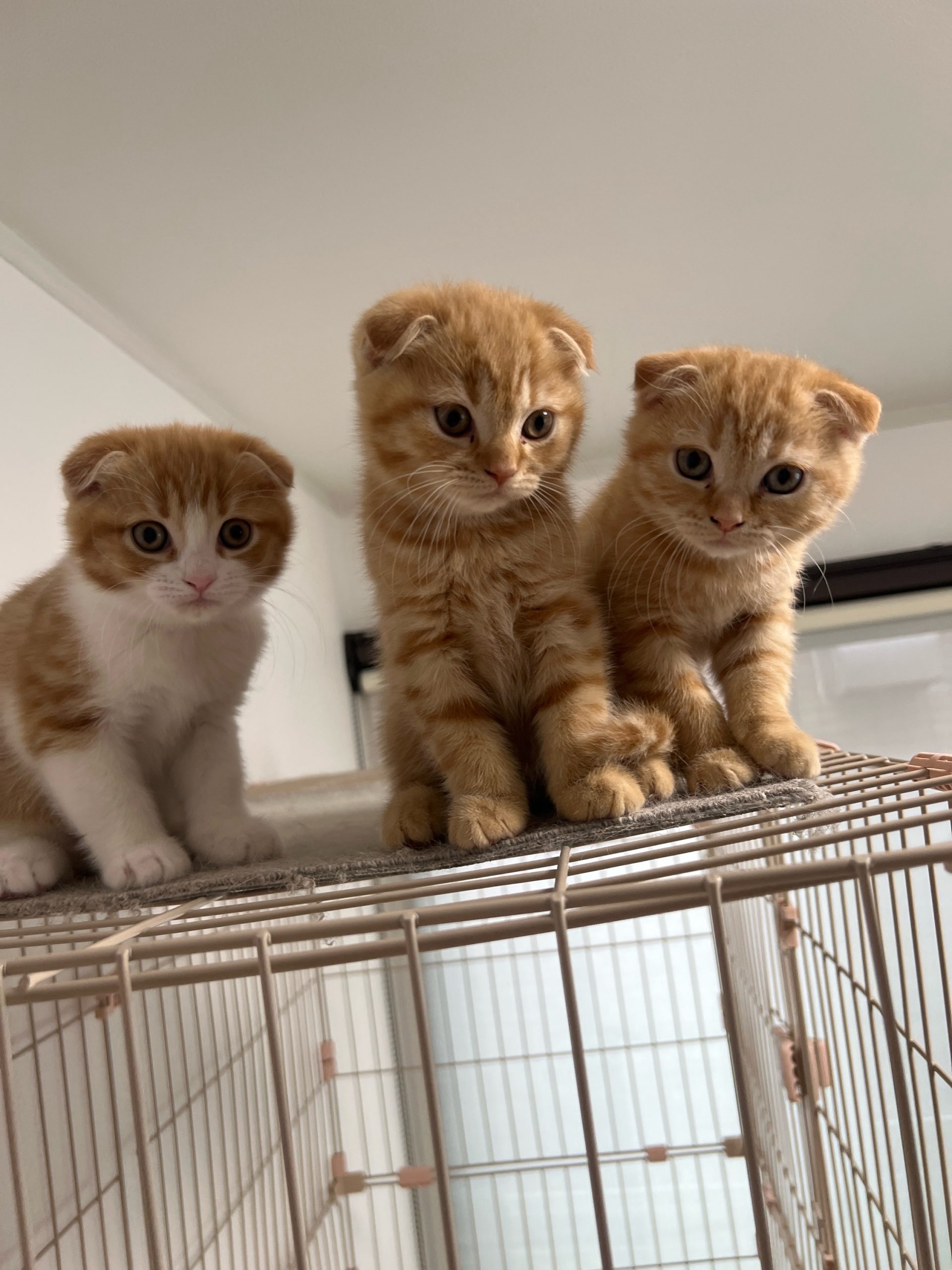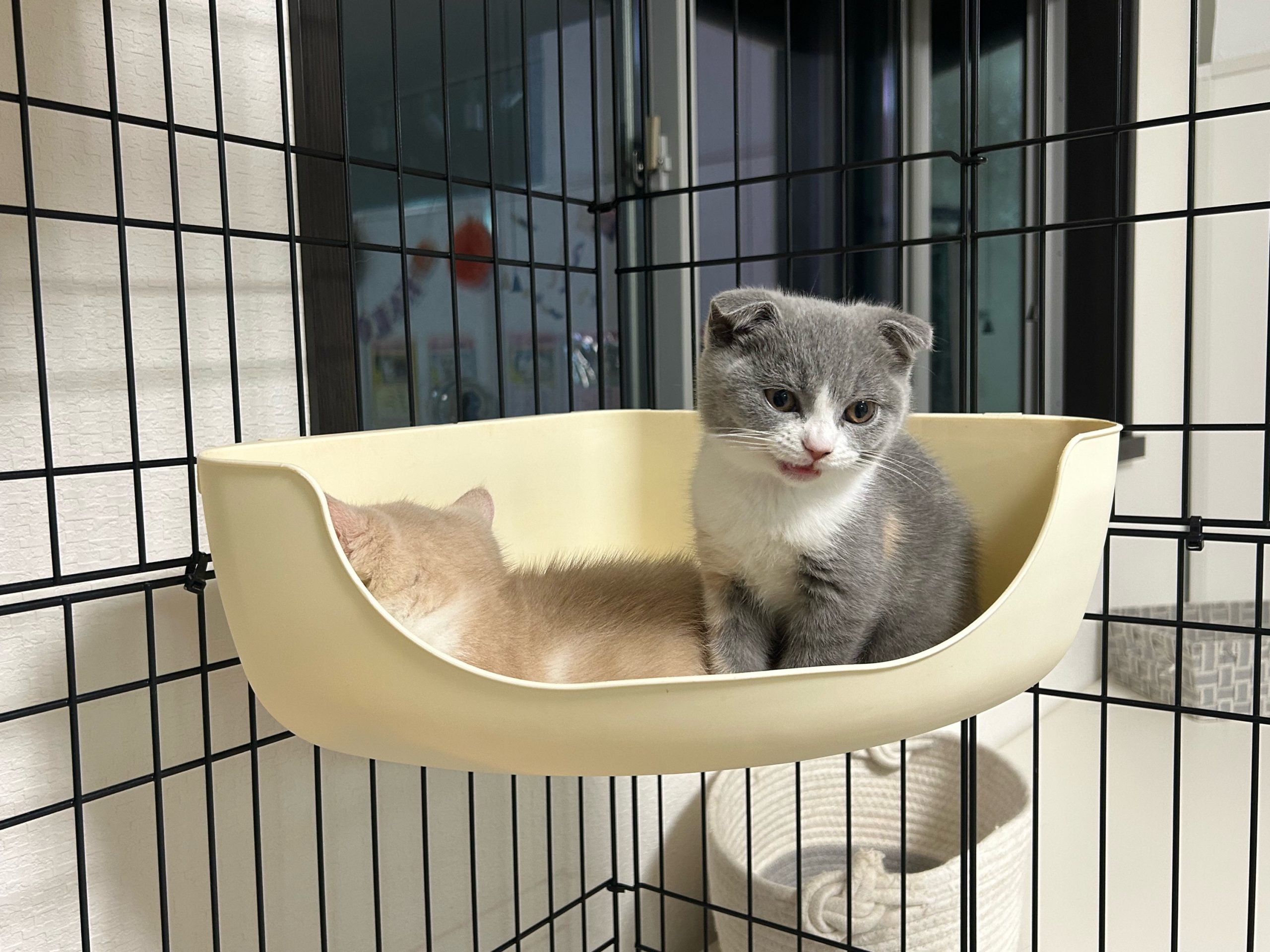 3匹ともおこめ親子ケージ上にいて様子を見ていたが下りられないようなのでおろしました