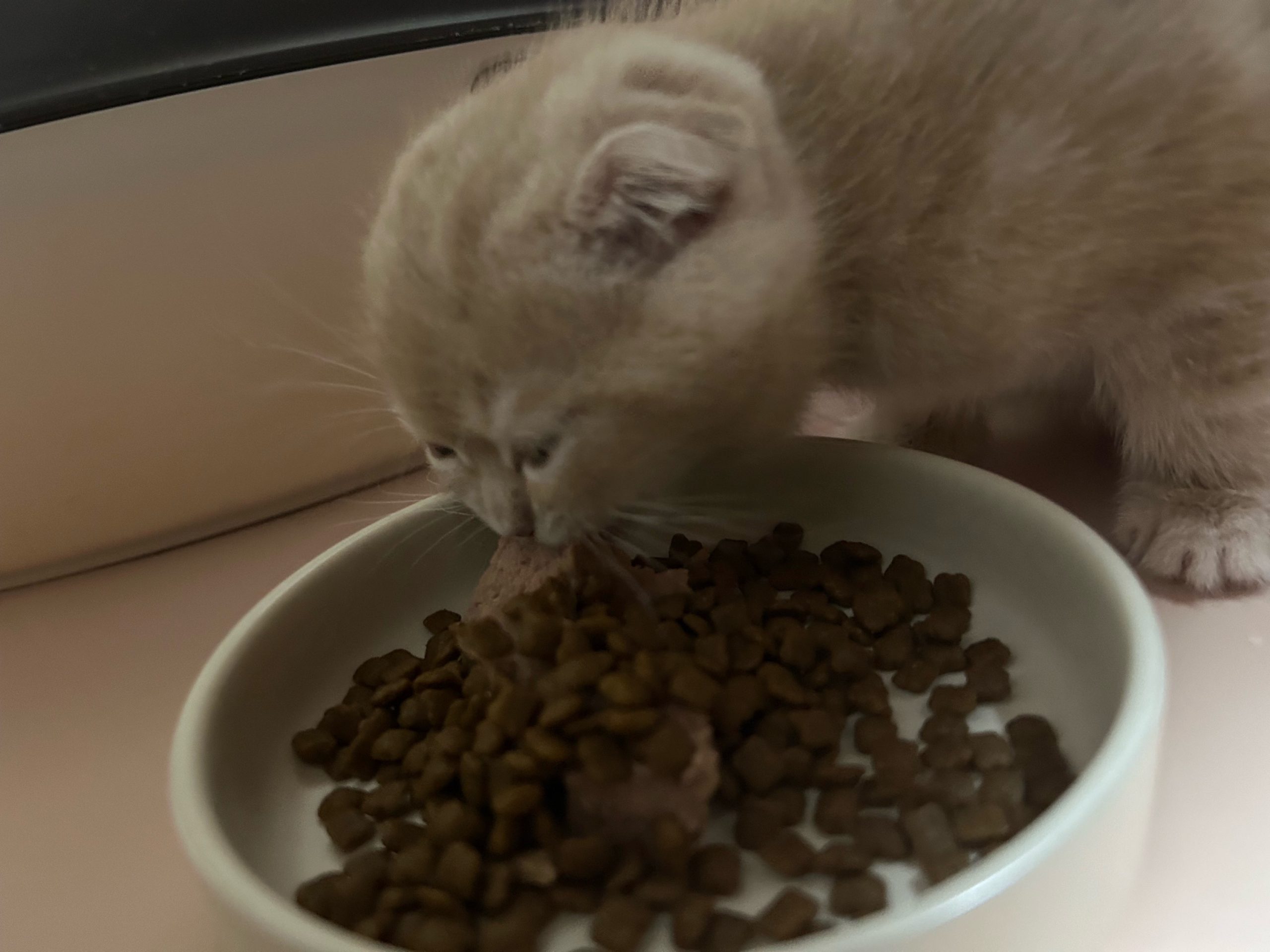 食い付きが悪いようならミルクを上からかけようと思いましたが、すぐにお皿からウェットフード中心ですが食べ始めてくれました。