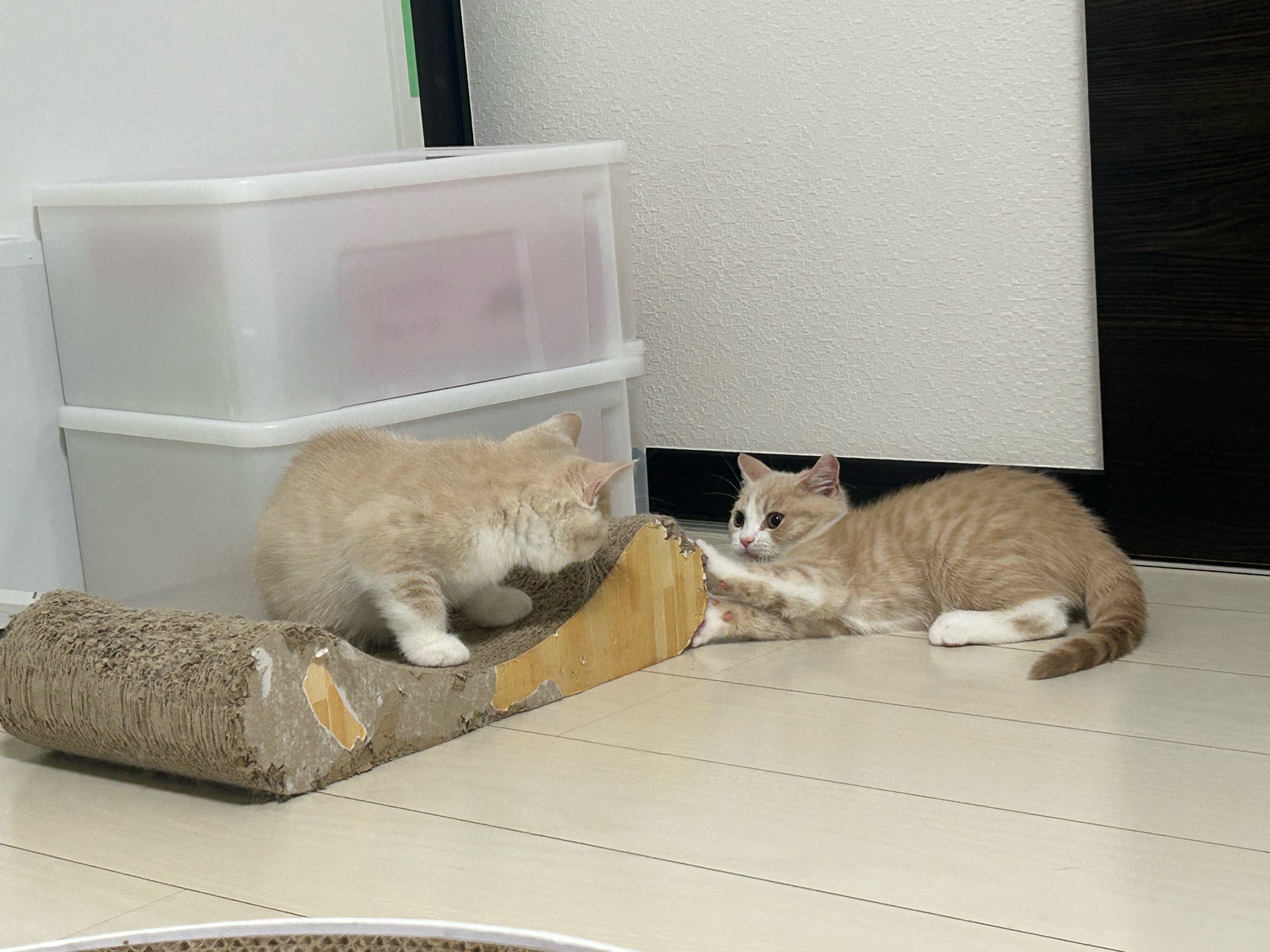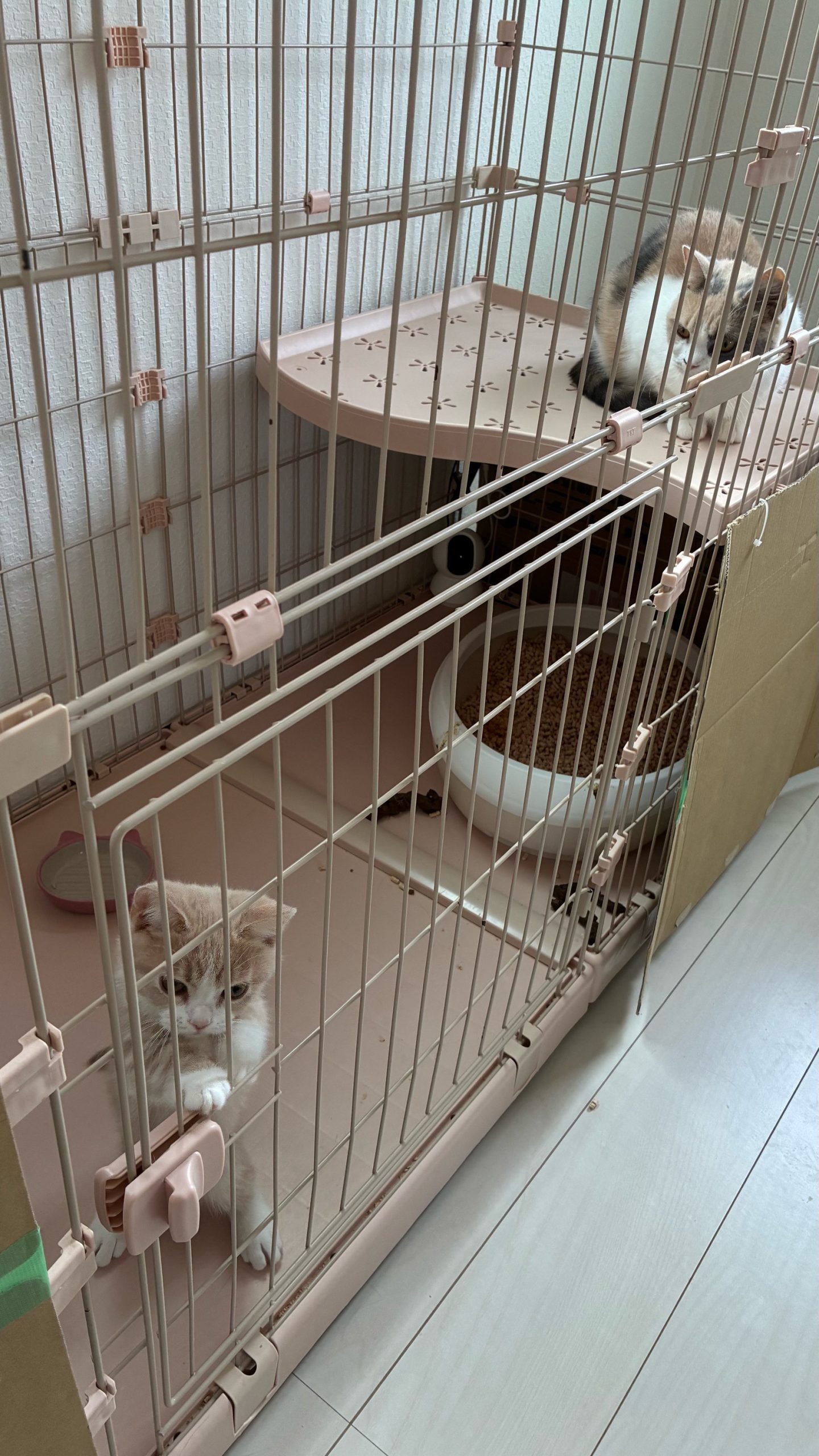 帰宅前に1,2ちゃんを小ケージへ、3,4ちゃんをレモンちゃんと一緒の大ケージへ🏠🐱