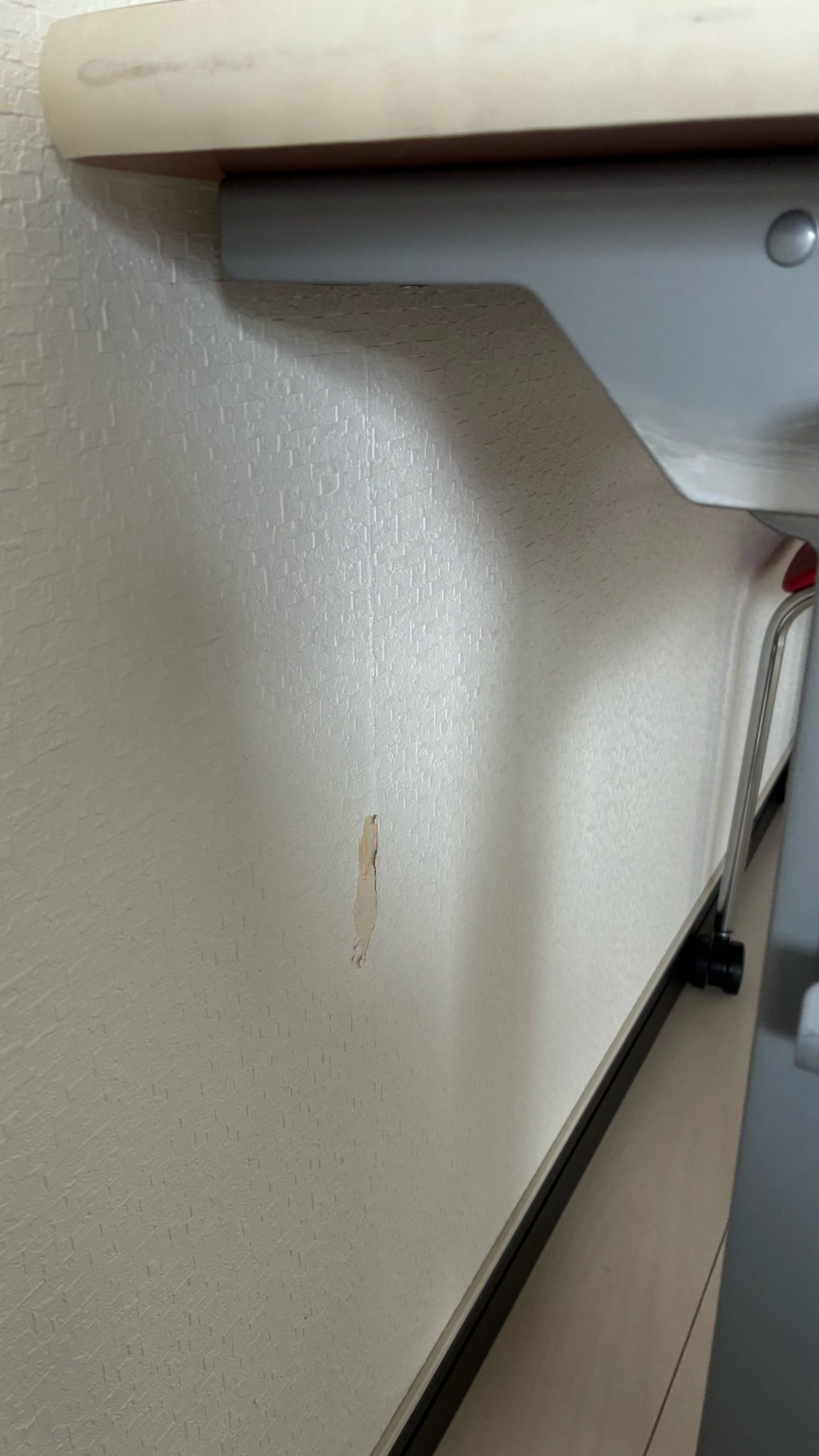 壁紙が剥がれてしまっていましたので、回収できる部分は拾ってキッチン前のテーブルにおきました。なにかで貼れるといいのですが…