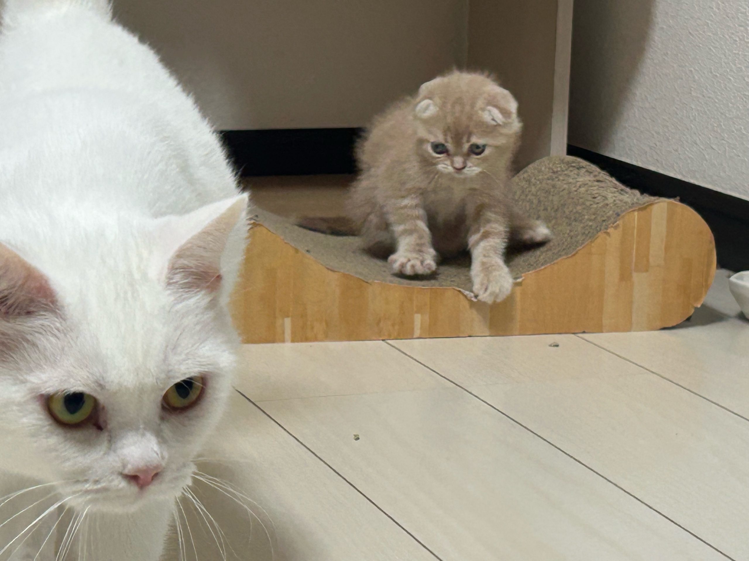2階のドアにちくわくんが少し挟まり、毛がごそっと抜けました。レールあたりに寝てるときがありますので、お気をつけください🥲