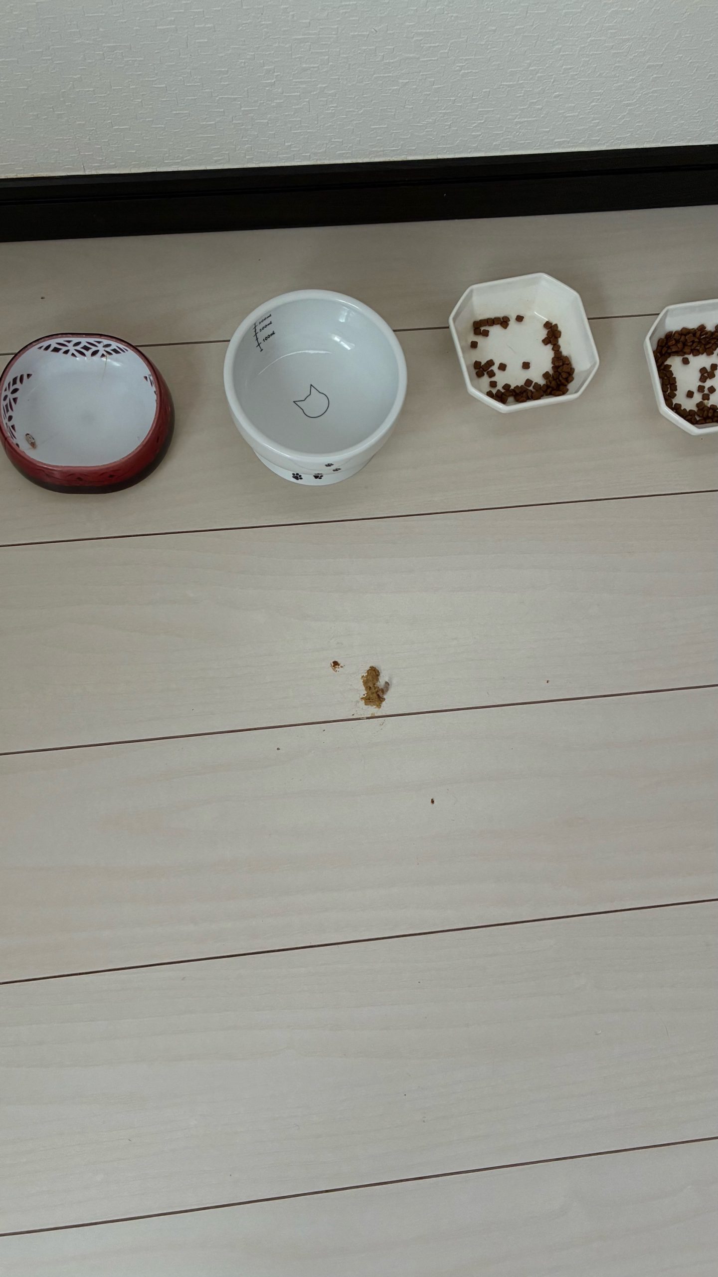 回収した子猫用ごはんをむぎちゃんが一気に食べて嘔吐