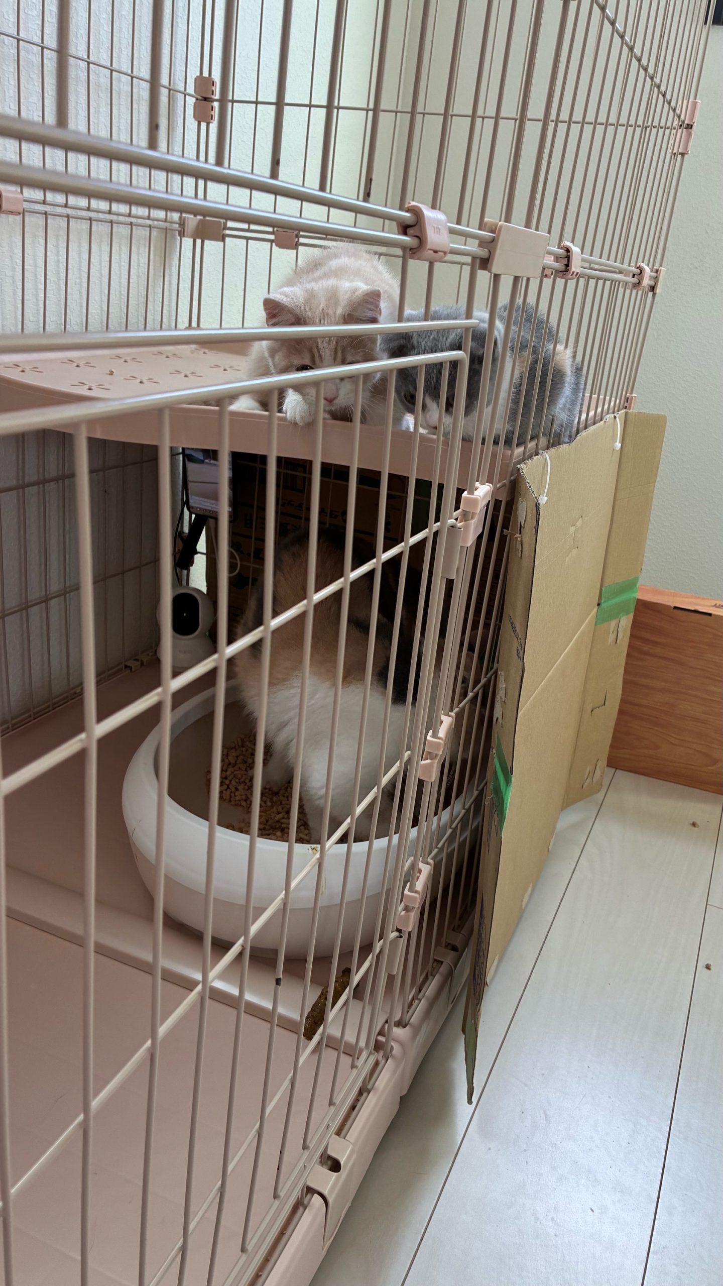 またレモンケージあたりを掃除してた際にむぎ、ちくわ、まろ、きび、はなのキッチン侵入あり😅はなちゃん以外はすぐ出てきてもらえたが、難関はなちゃんは他のみんなをケージに入れてパーテーションオープンにて脱出させました🤣