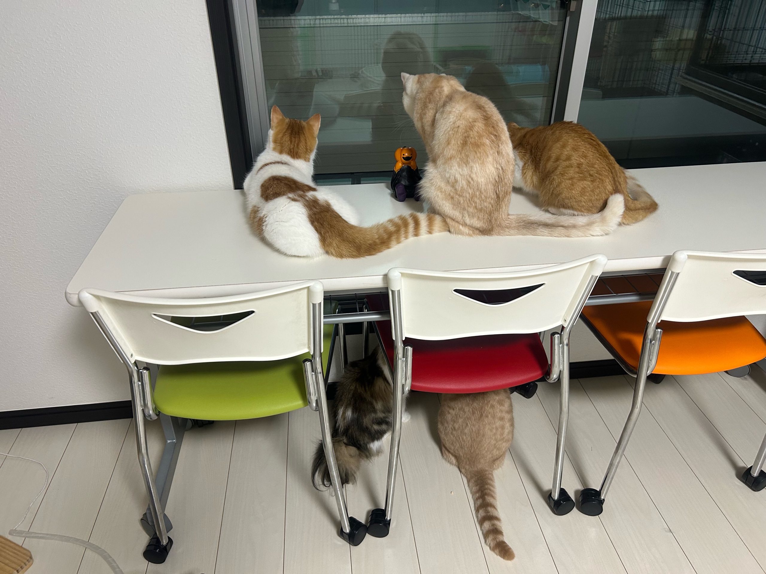 帰宅間際の2階放牧組は、お外の虫に興味津々でした👀