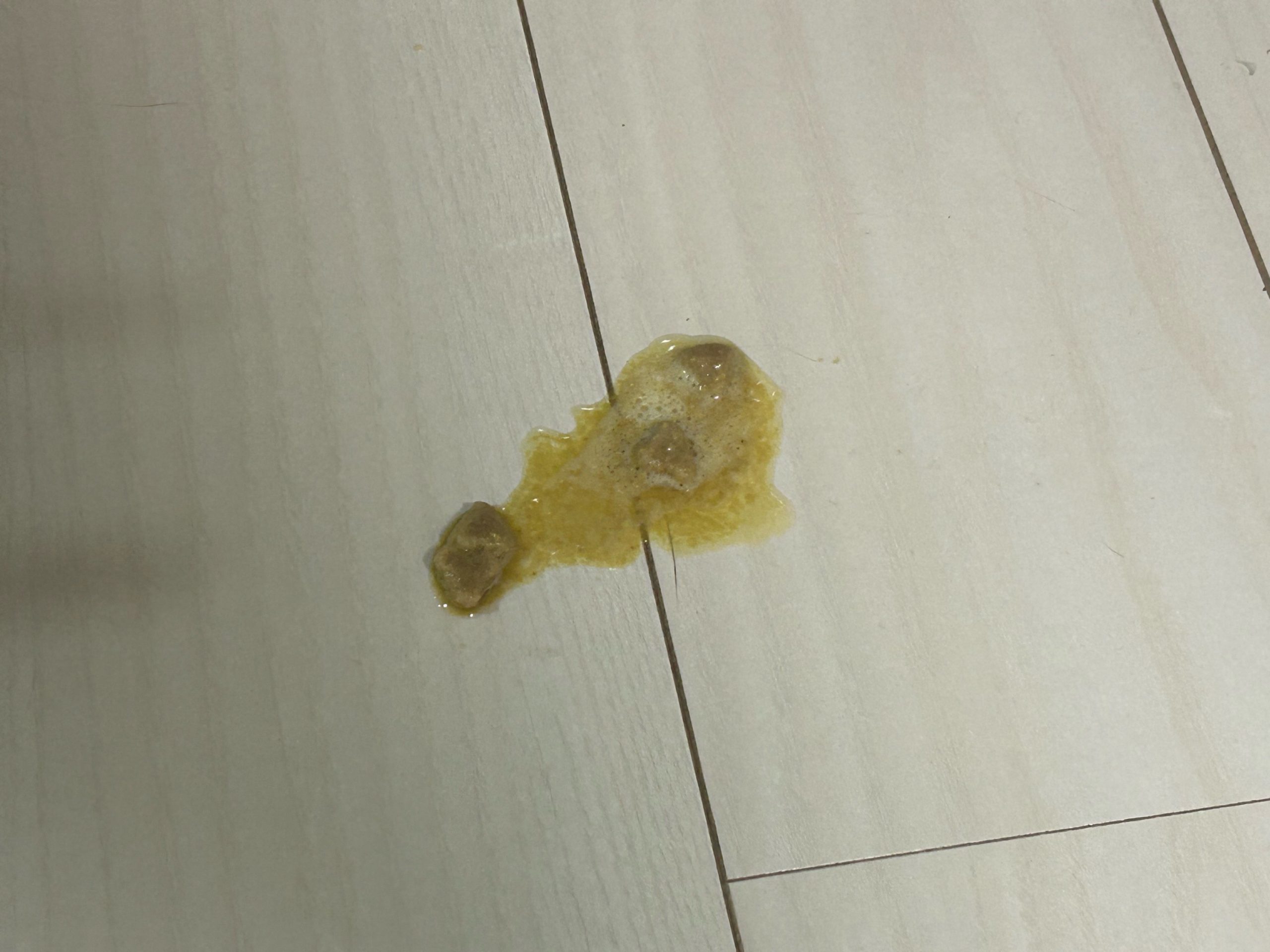 午前:まるくん消化途中の嘔吐あり。