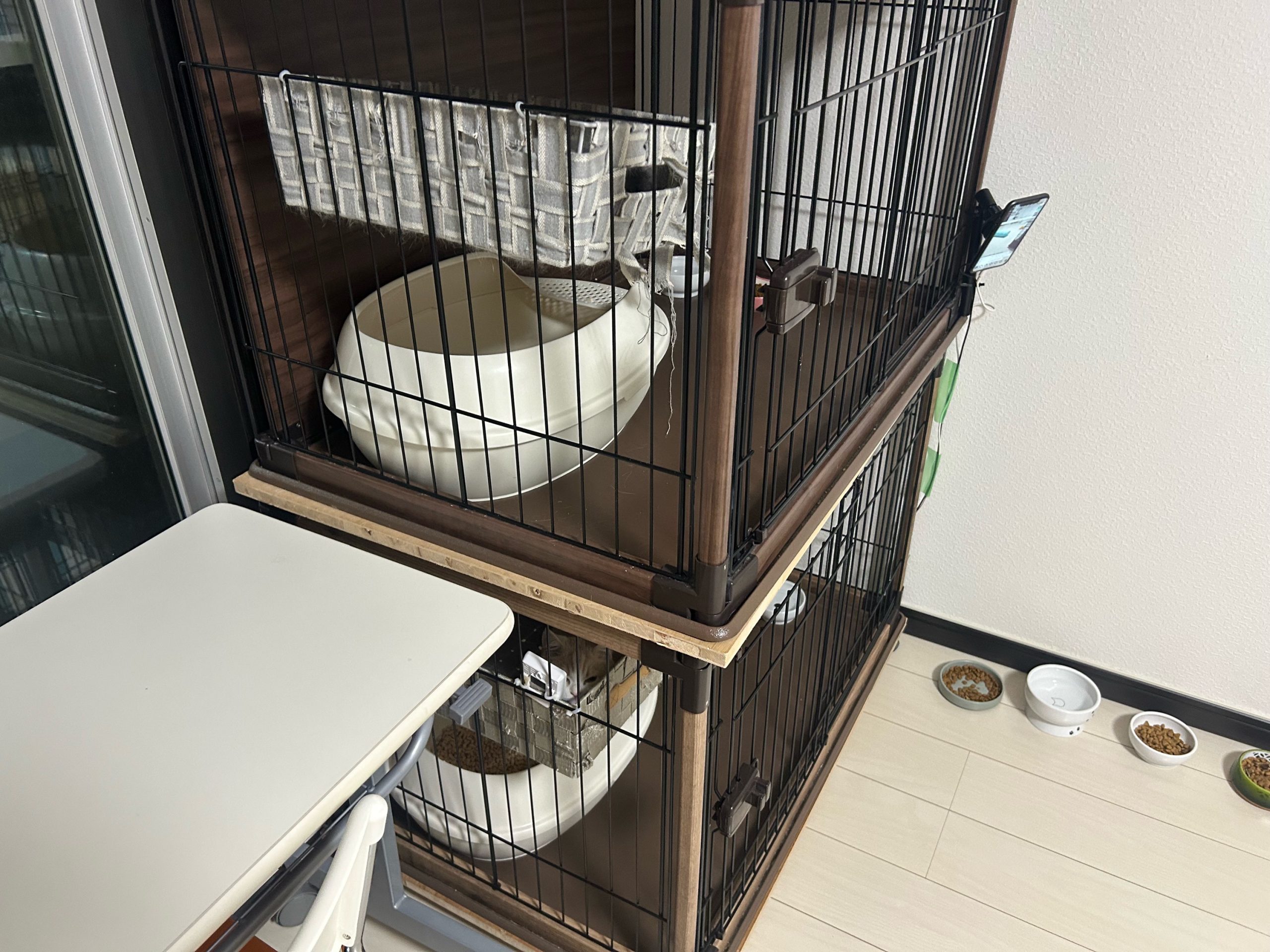 →柵を撤退させ、猫砂も減った分は重い方(以前のおから猫砂)を追加しました✨