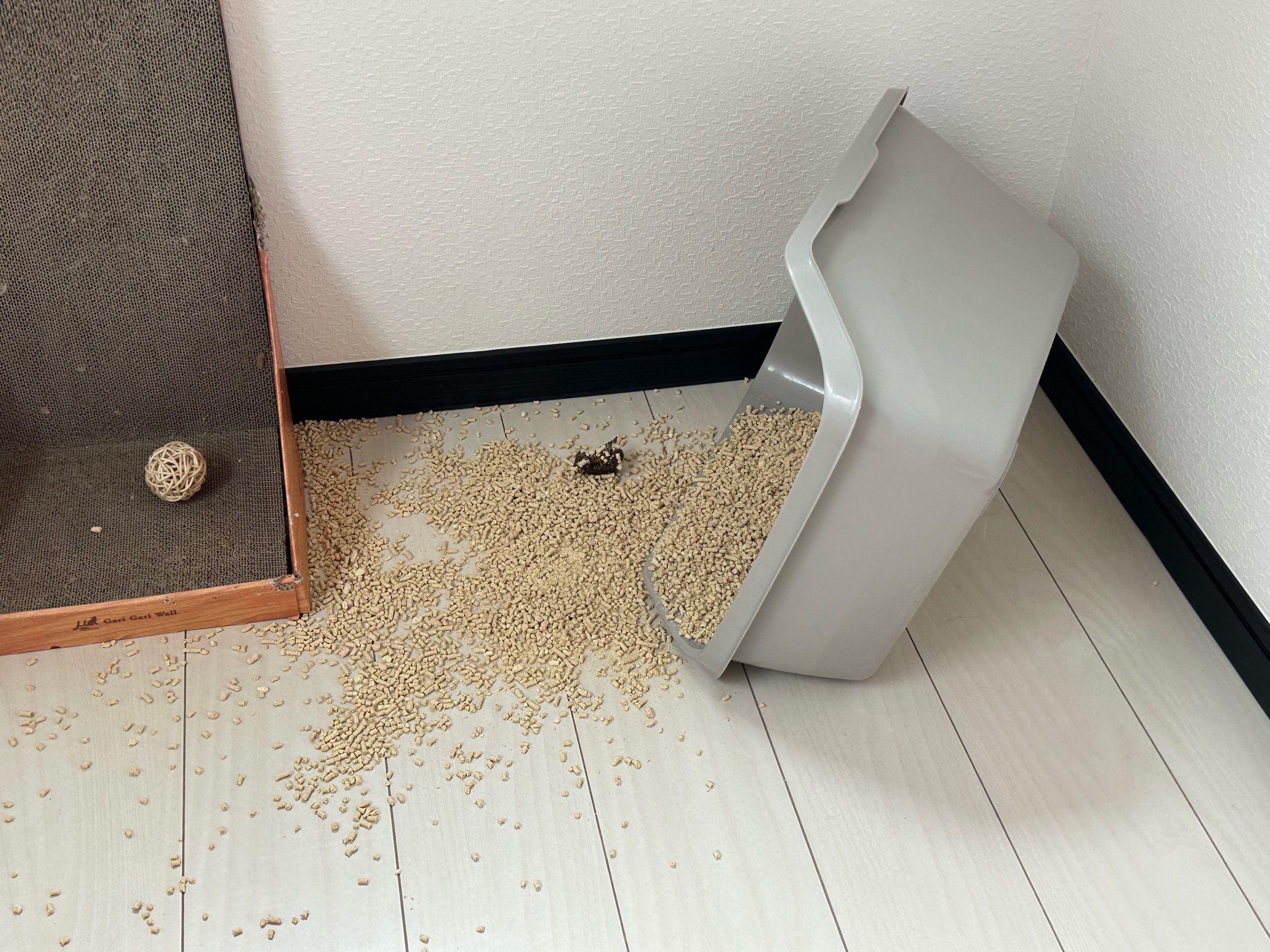 マジックテープ固定も考えましたが、接着面が少ないので減っていた猫砂を足して、午後に別の容器に変えてみます💭