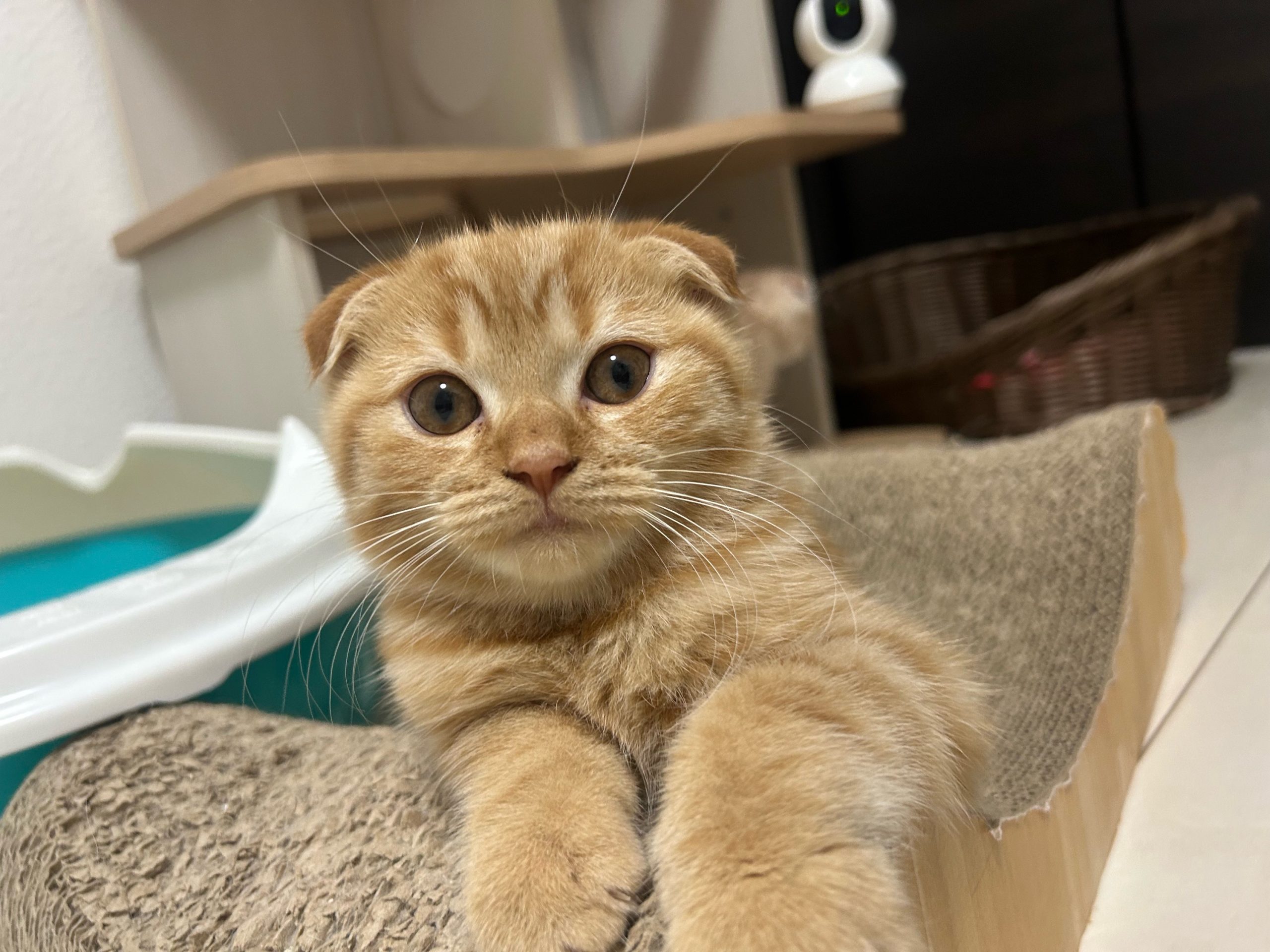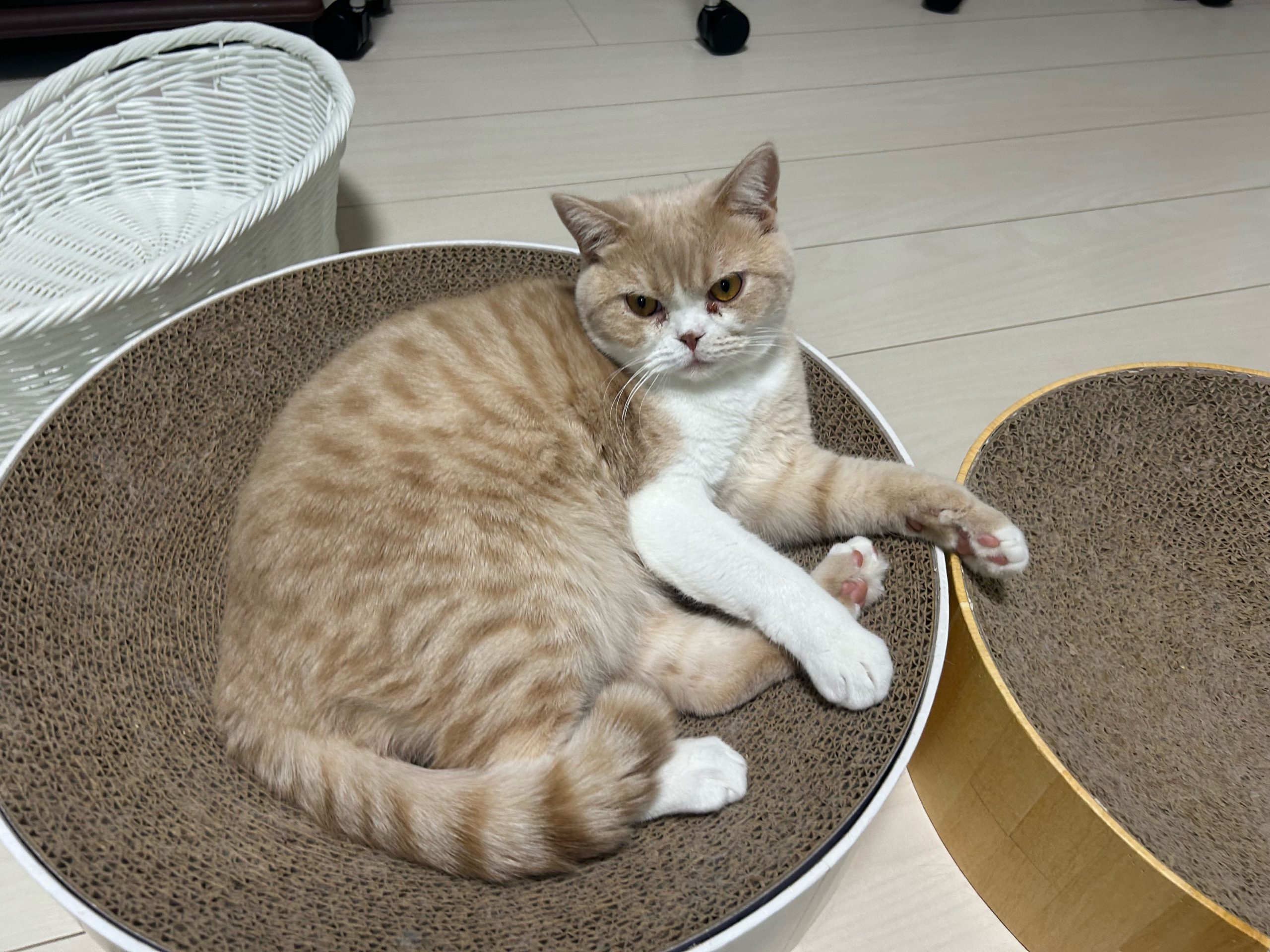 清掃中に申し訳なさそうに爪とぎに座って、じっとしていたので💦