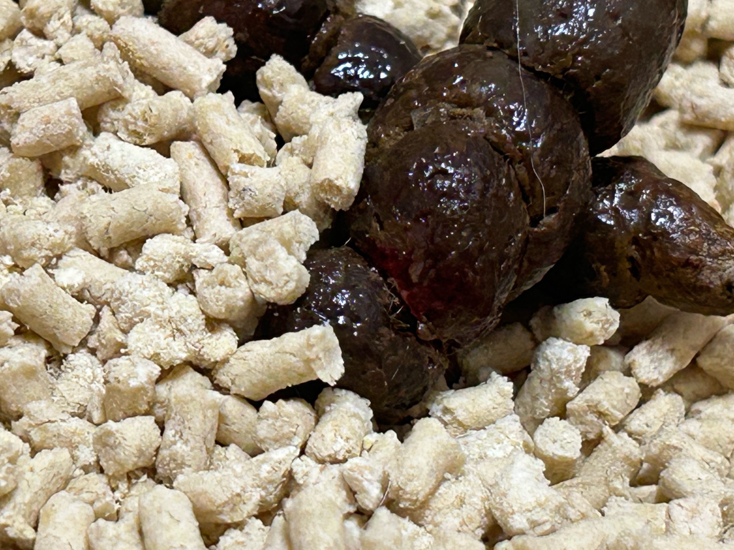 レモン親子ケージ内のおトイレに大きなうんちがあったのですが、少しだけ赤く血のようなものがありました💩