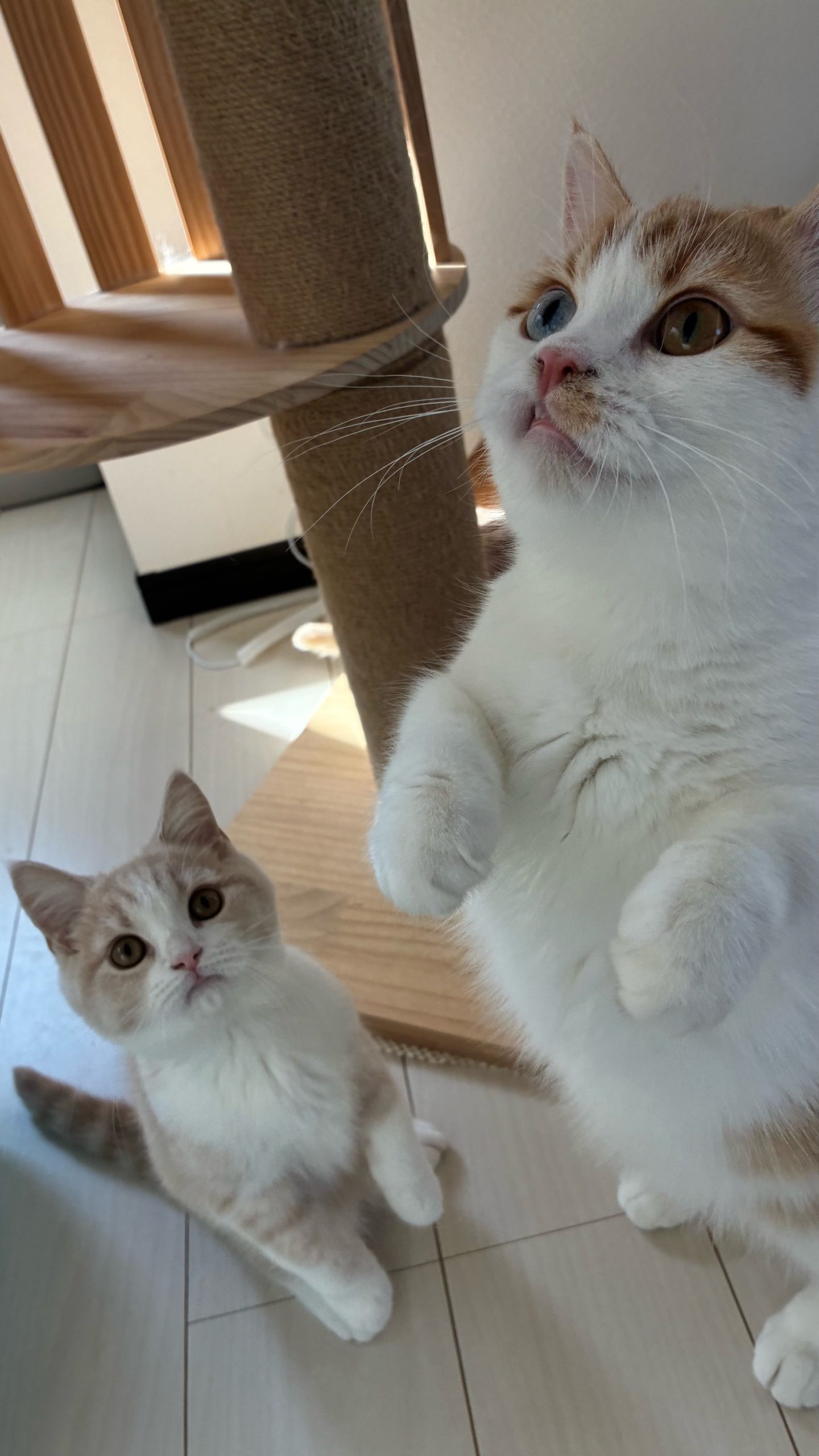 ばくくんケーブルじゃれつきしてるので、子猫たちも真似します😭