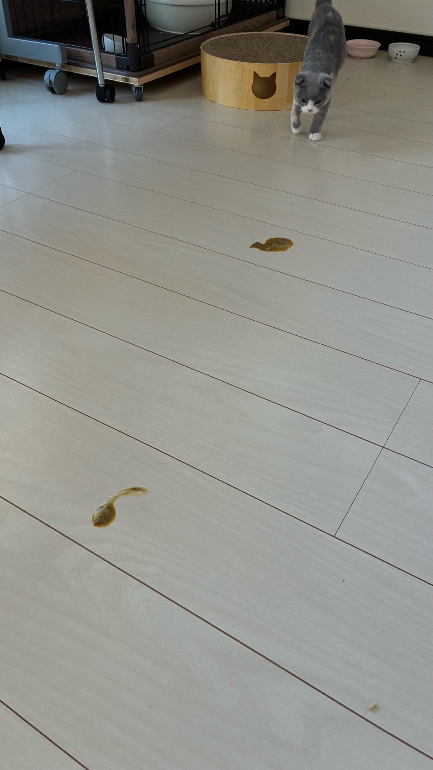 2階に嘔吐あり、作業中オス部屋も嘔吐あり。