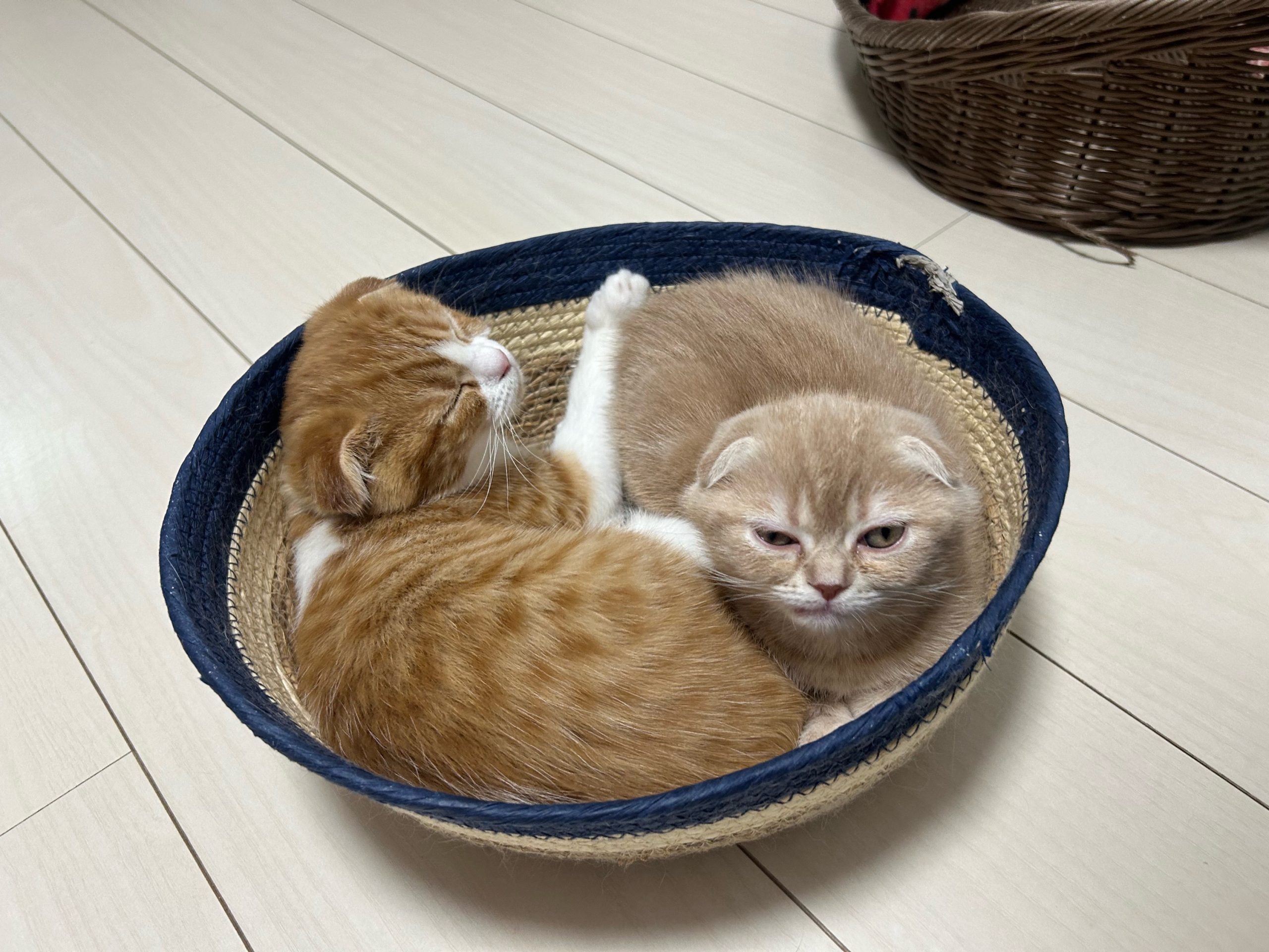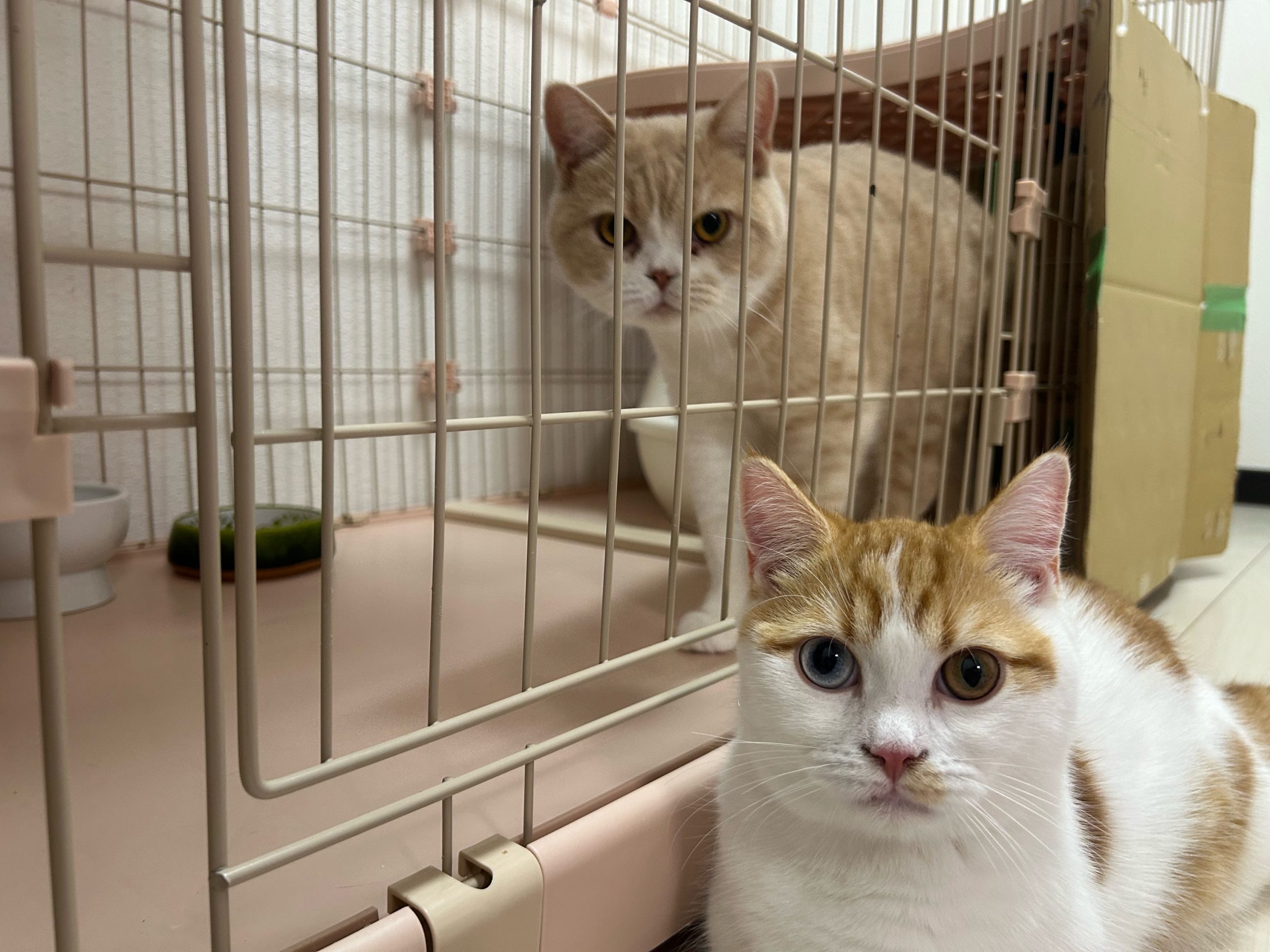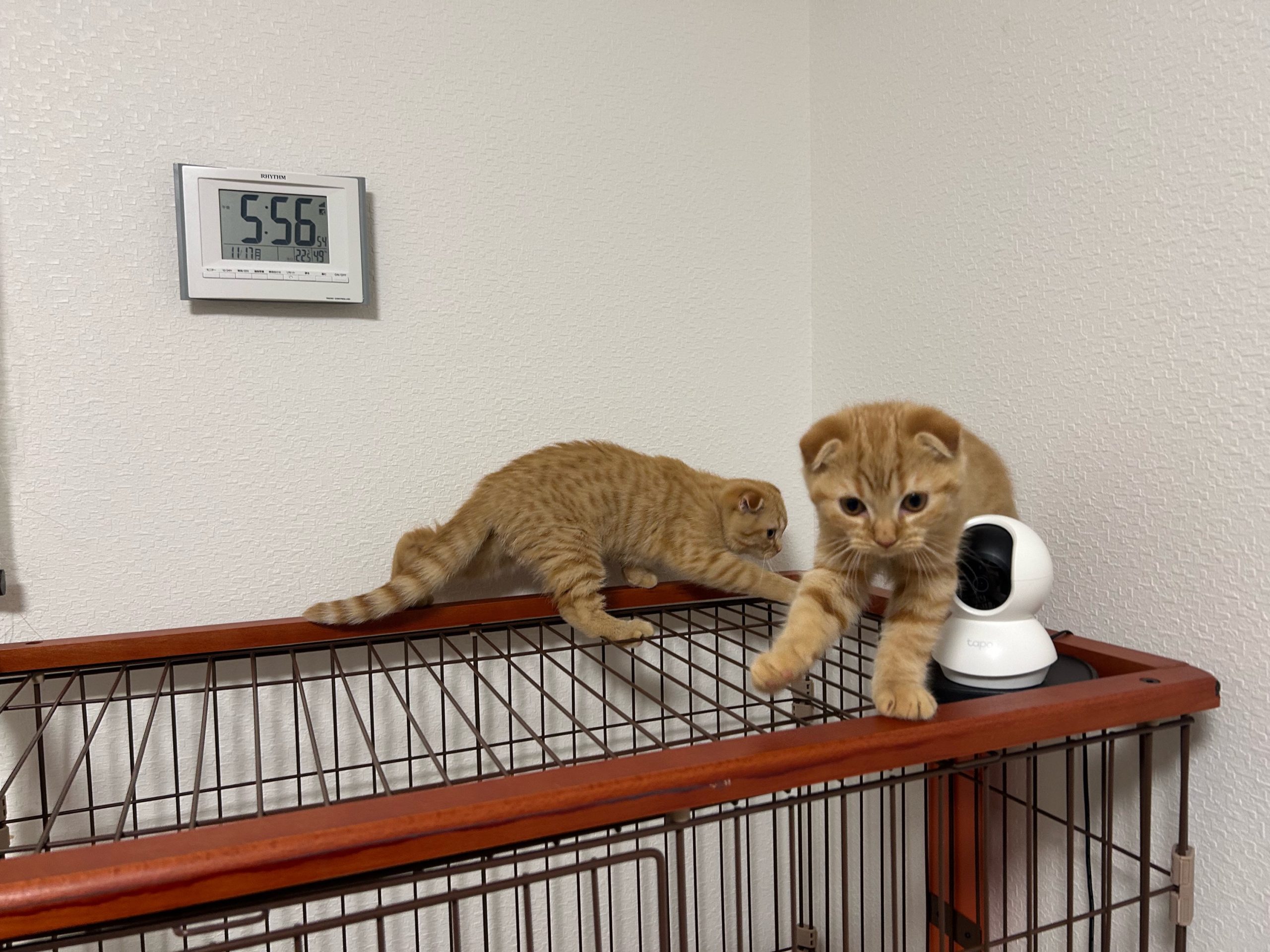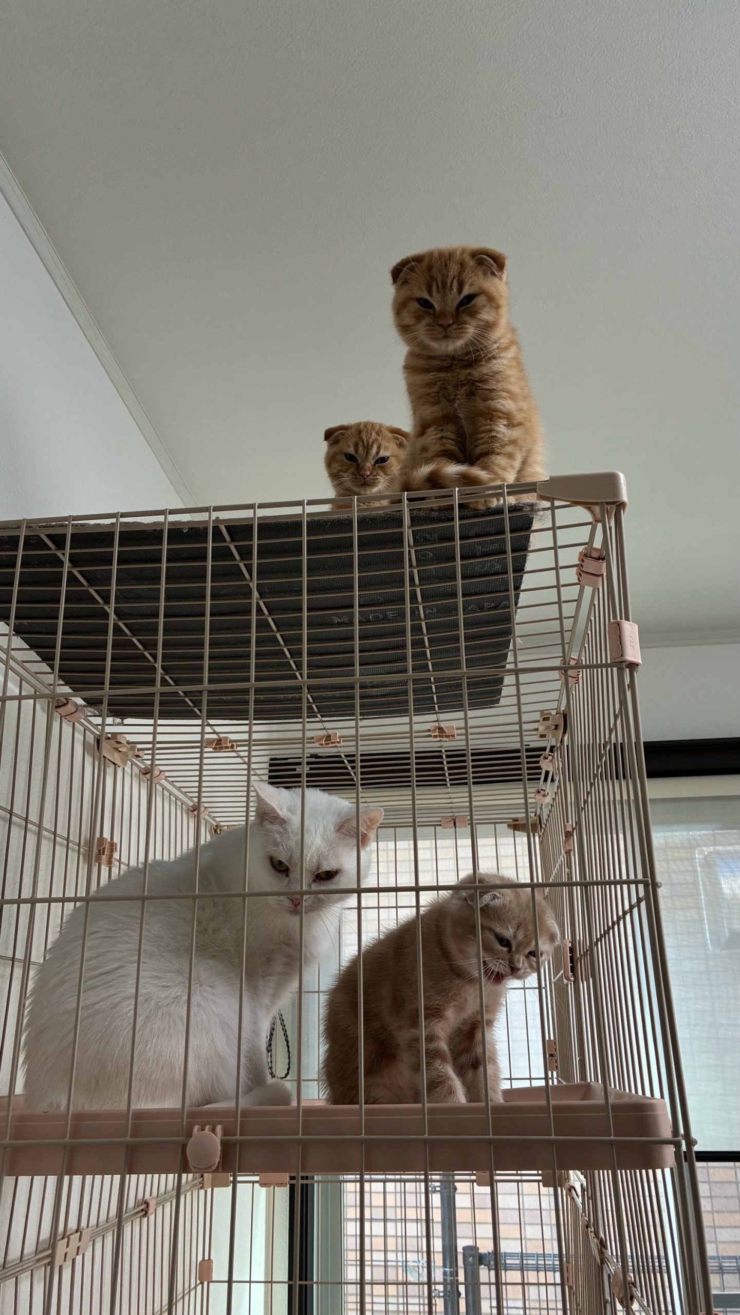 2階の小ケージ上のカゴをちくわくんが落として配信携帯も一緒に落下で一時にゃんこたち大パニックに😂だれも怪我などはありませんが、みんな各々飛び跳ねて驚き逃げ回りました‼️