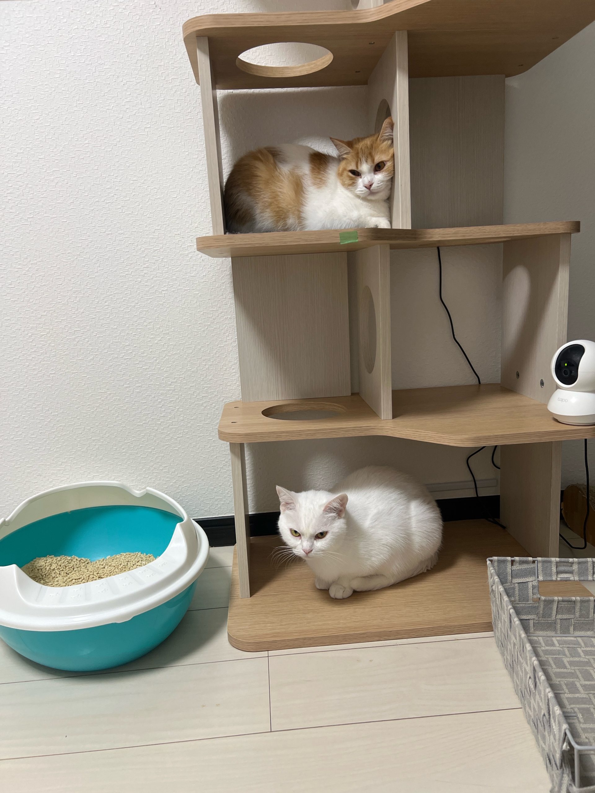 ばくくんときびくんのケージには他の猫ちゃんが入らないようにしました。