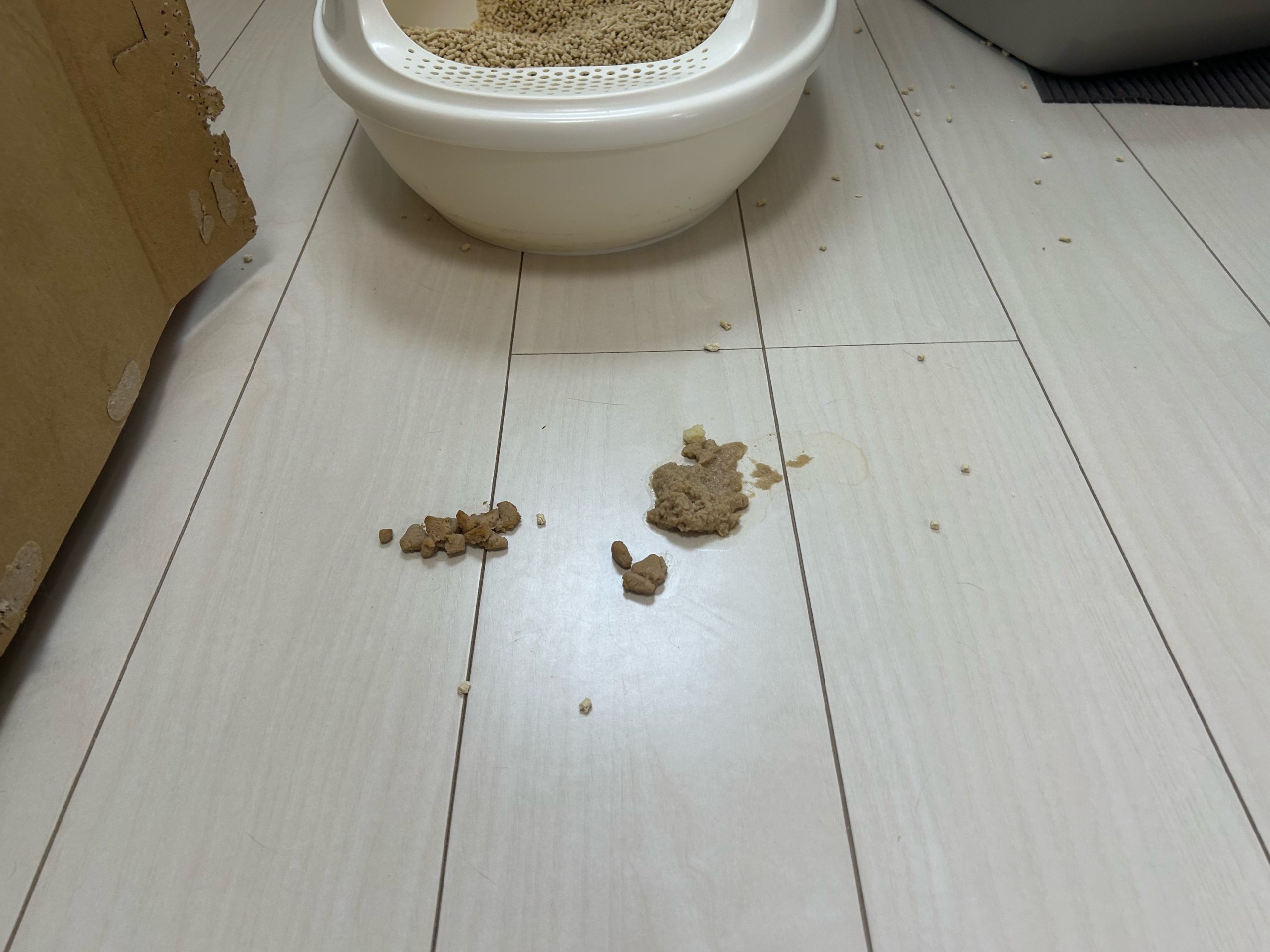 午前:2階にフードの嘔吐と、液体のみの嘔吐あり。
