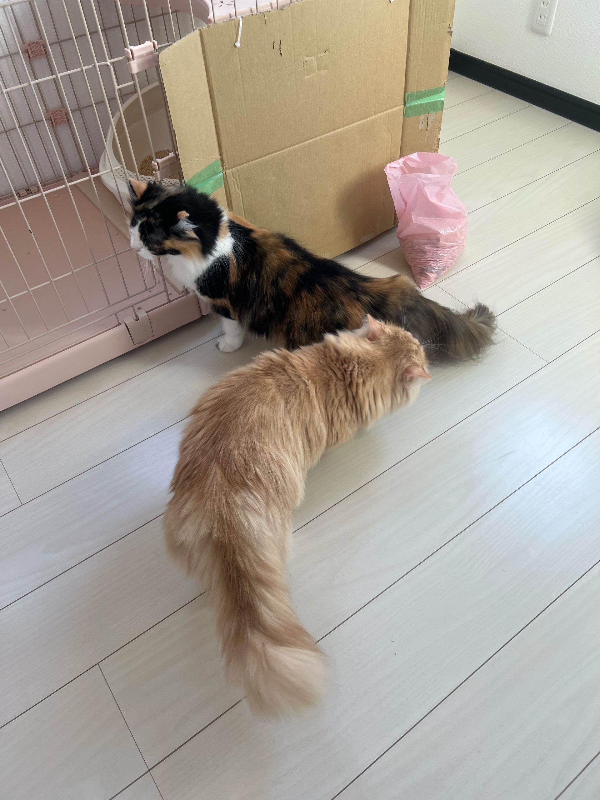 ばくくんは姫ちゃんが気になるようで追いかけています