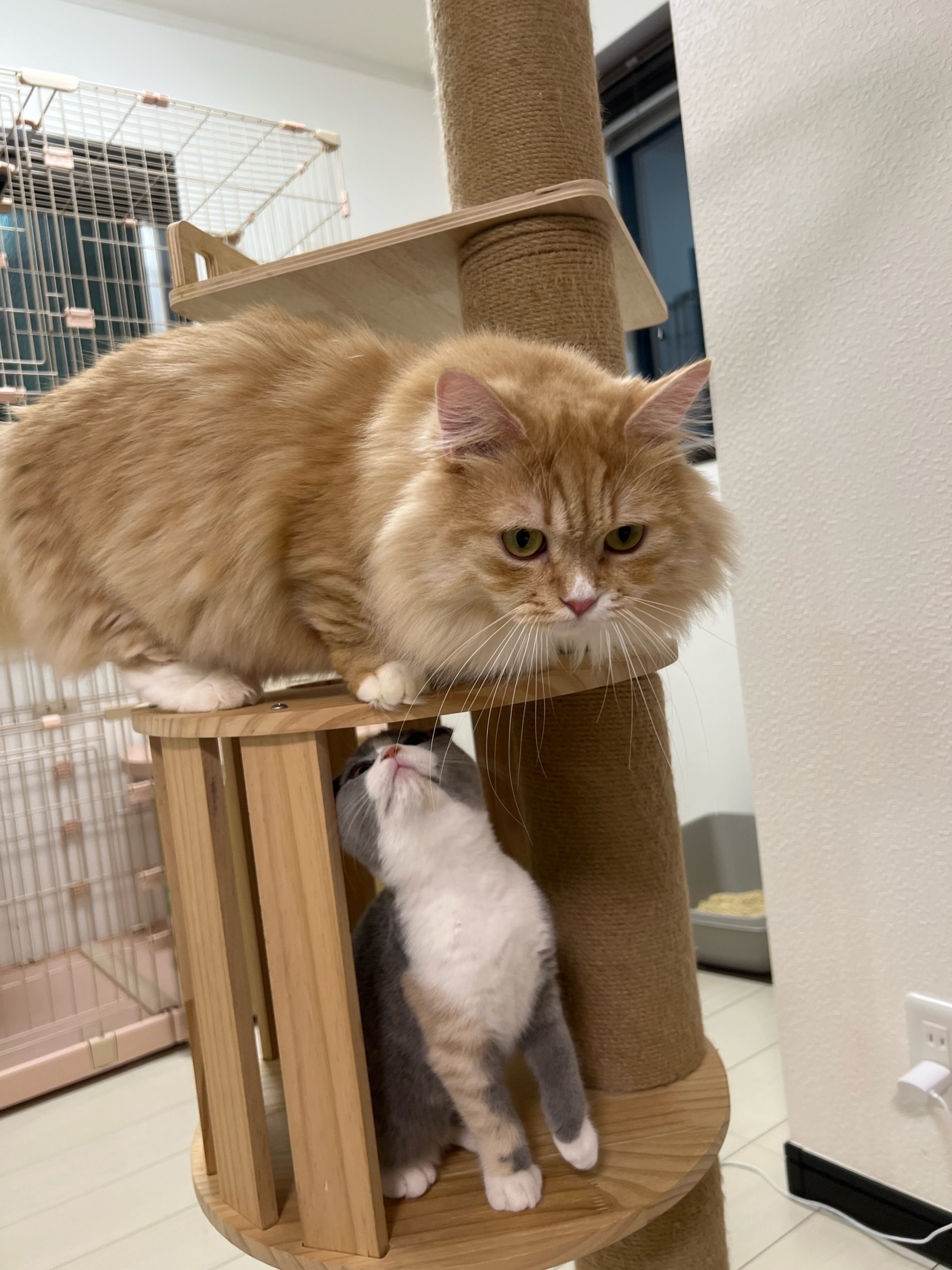 オス部屋ではキャットタワーのボウルの中に、誰かのコロンとうんちあり💩
