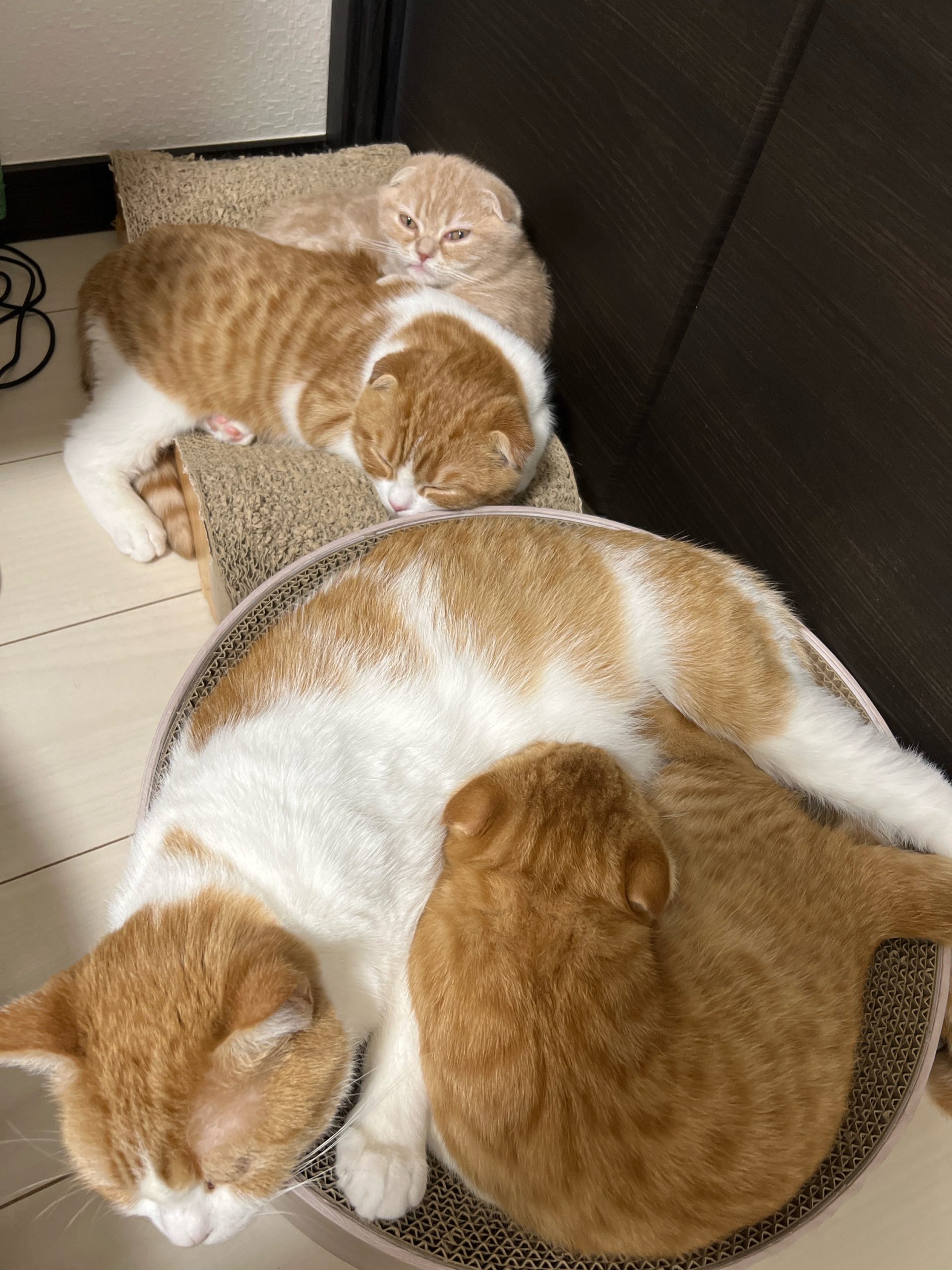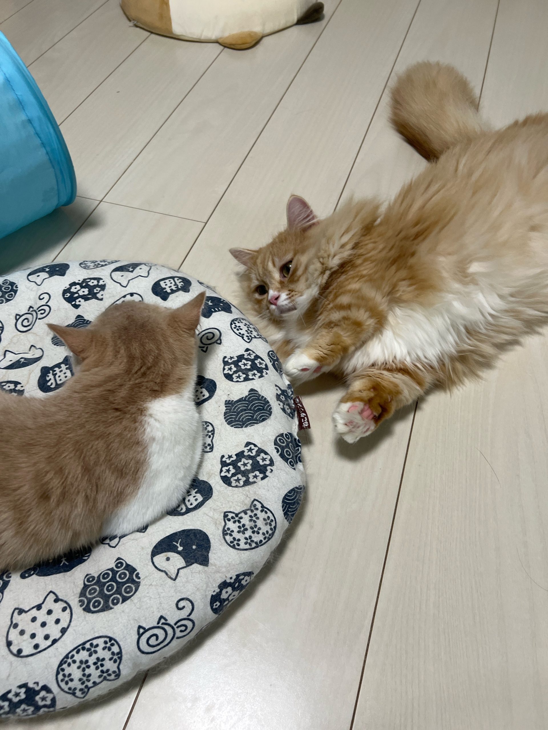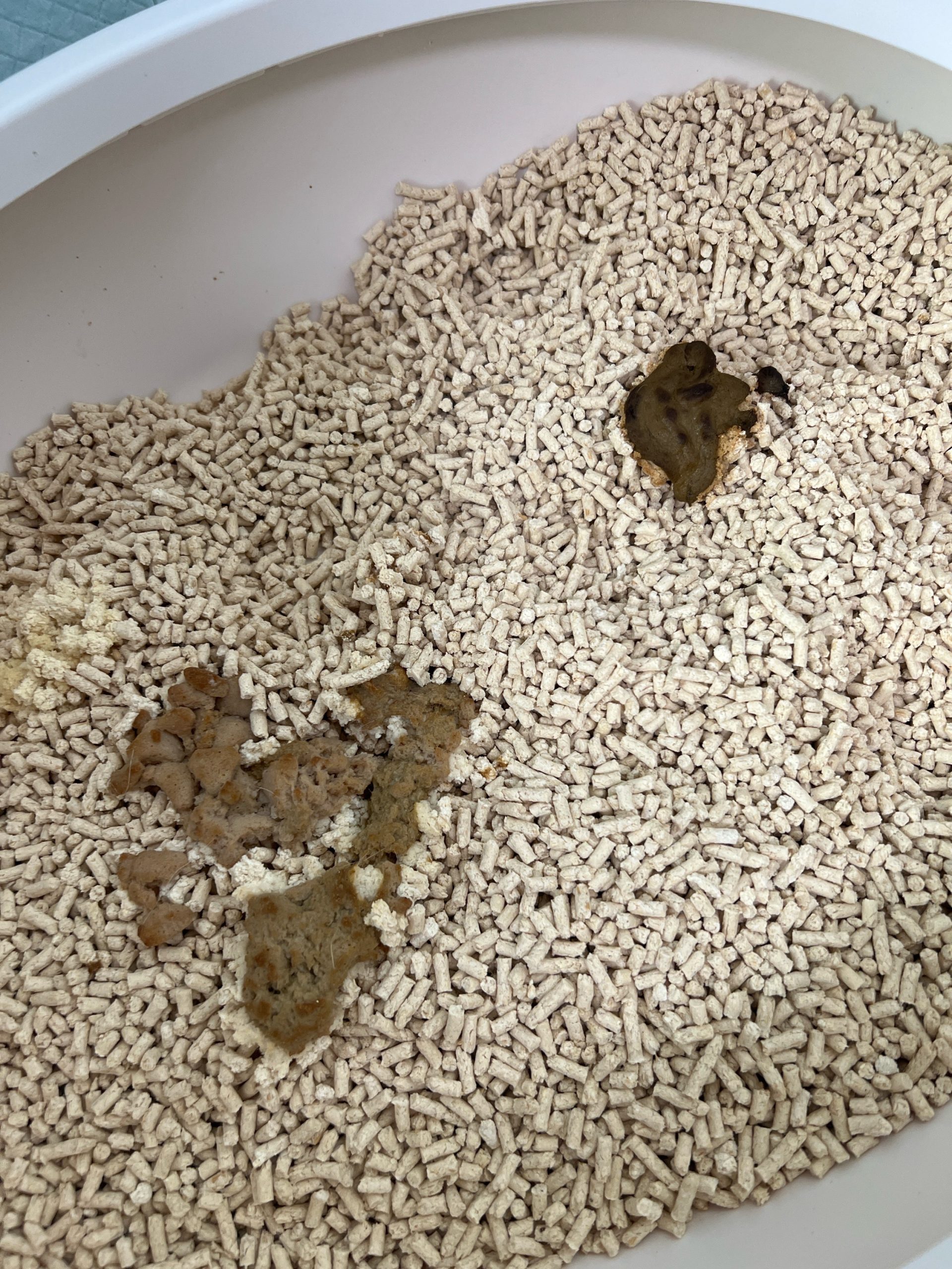 午前:まるくんトイレに緩めの💩と嘔吐あり。殿くんも珍しく少し緩めの💩