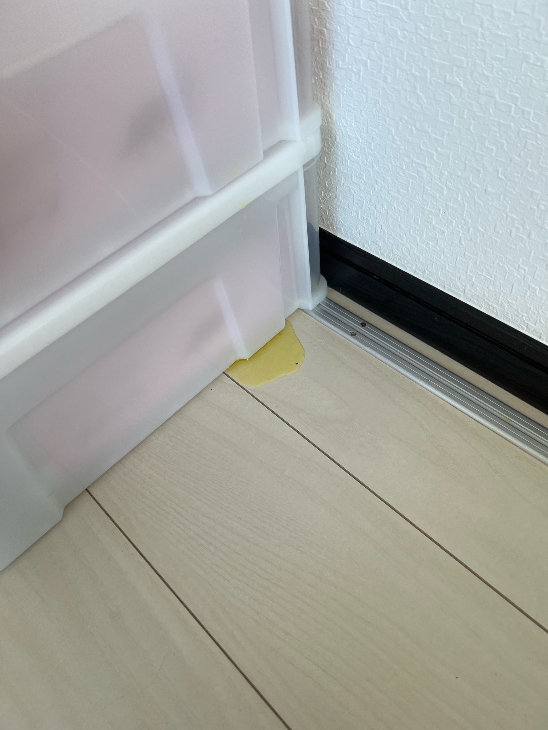 親子部屋のロールカーテンを開けると窓枠に登るようで芳香剤が落ちて溢れていました😓