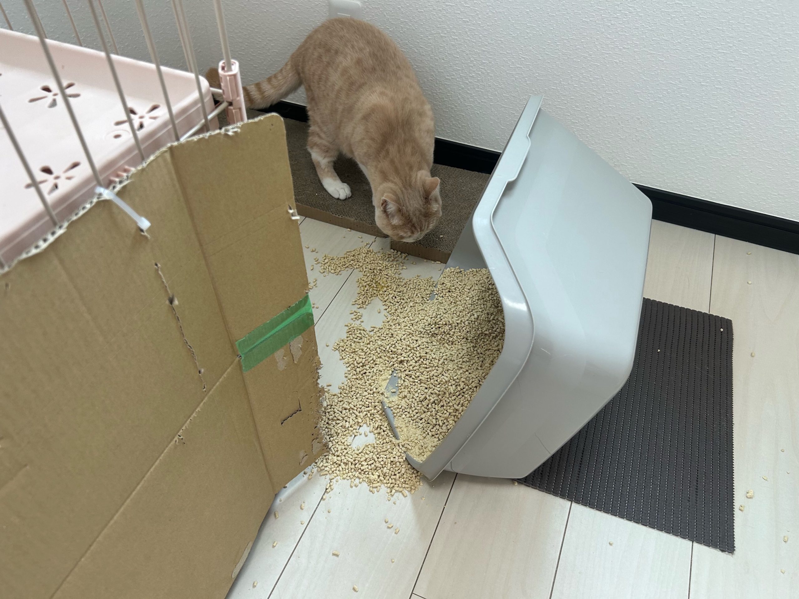 殿くん放牧中だったため、どちらのものか不明ですが、おトイレにフードの嘔吐あり💦
