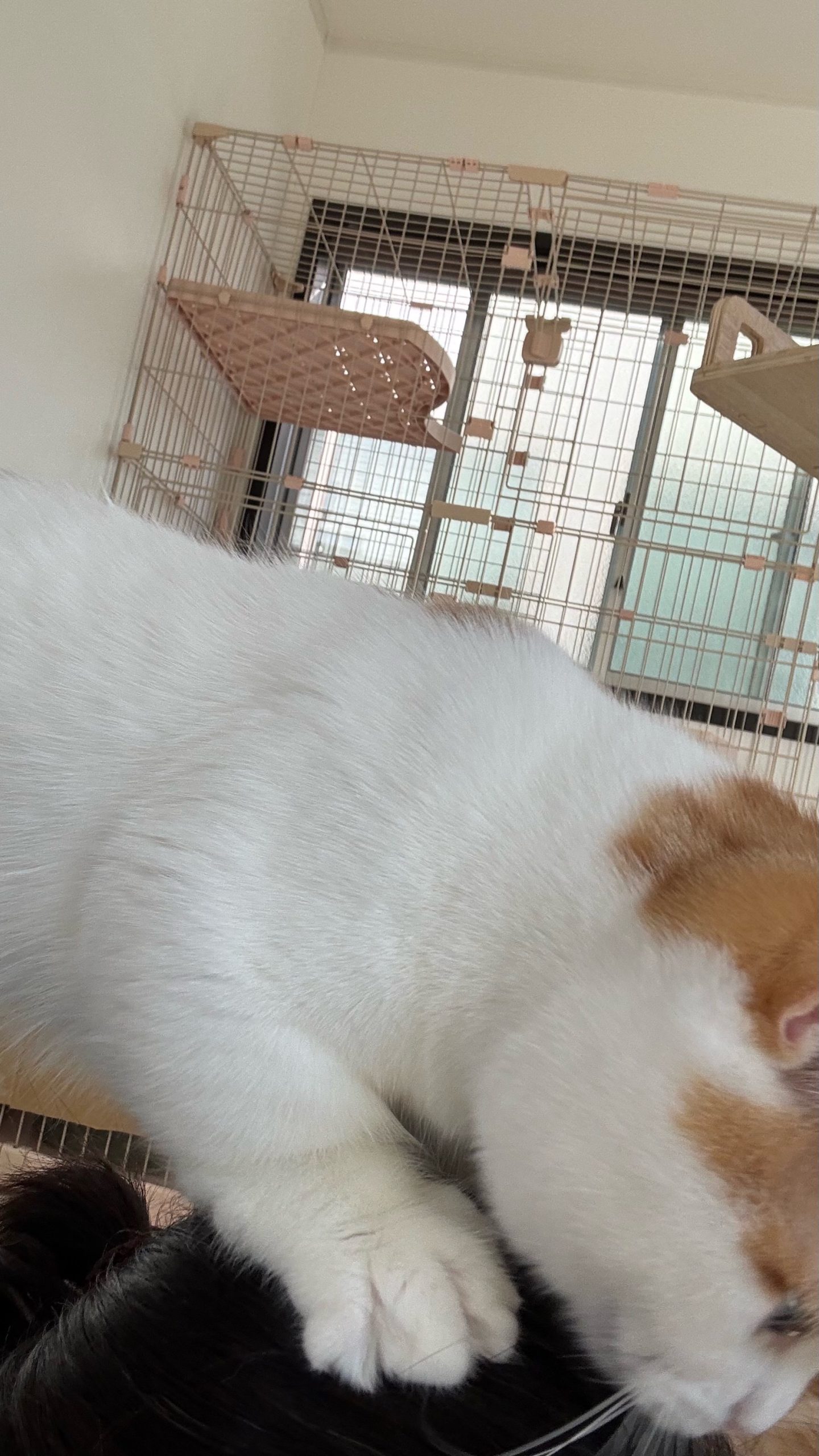ちくわくんに最近背中から頭に乗られてしまいます🐈意外と大きくなって重いです。