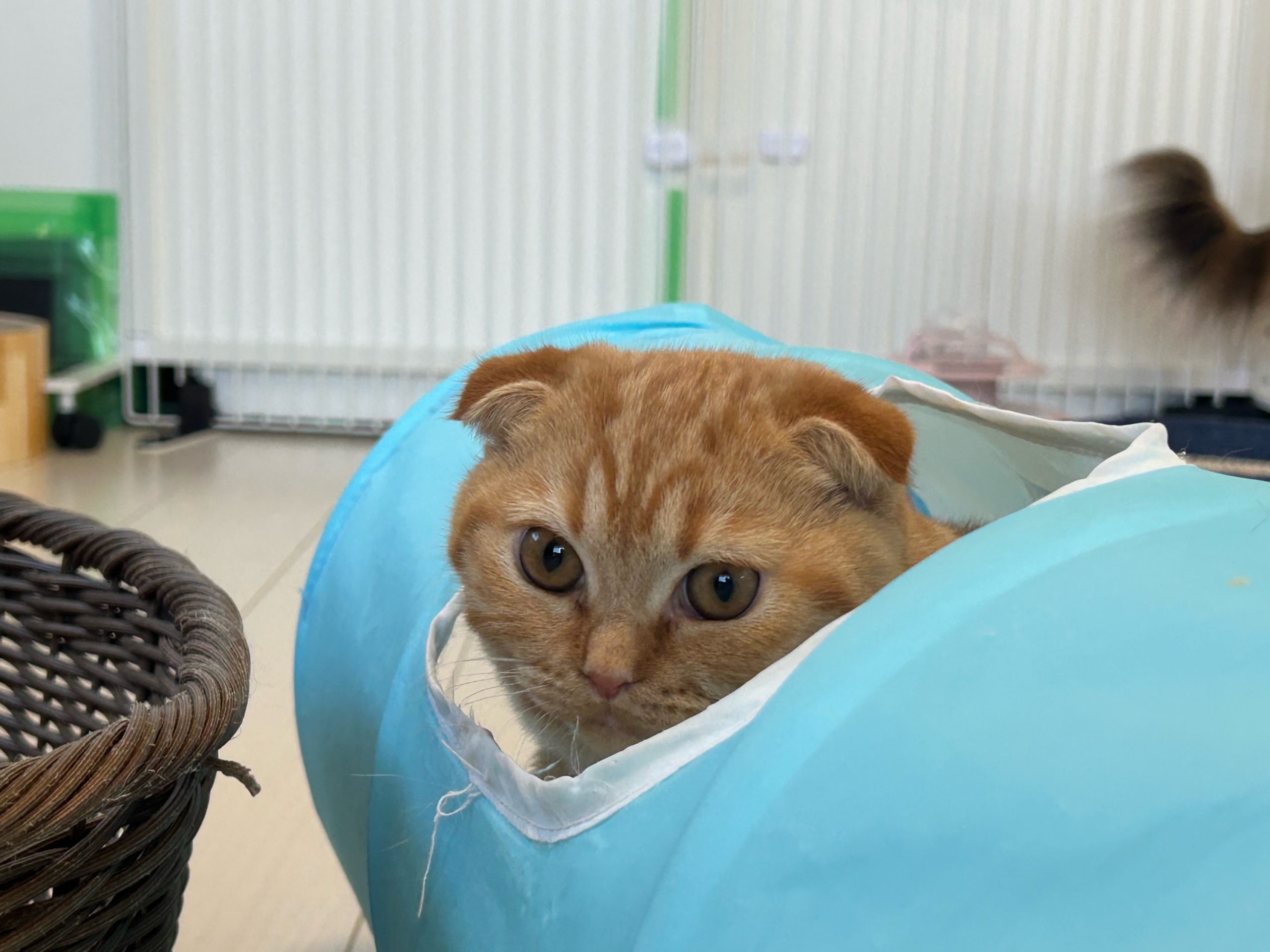 ロコ3つ子ちゃんの中で1番引っ込み思案な長女ちゃんは、いつの間にかケージからトンネルまで出てきていました🐈🐾