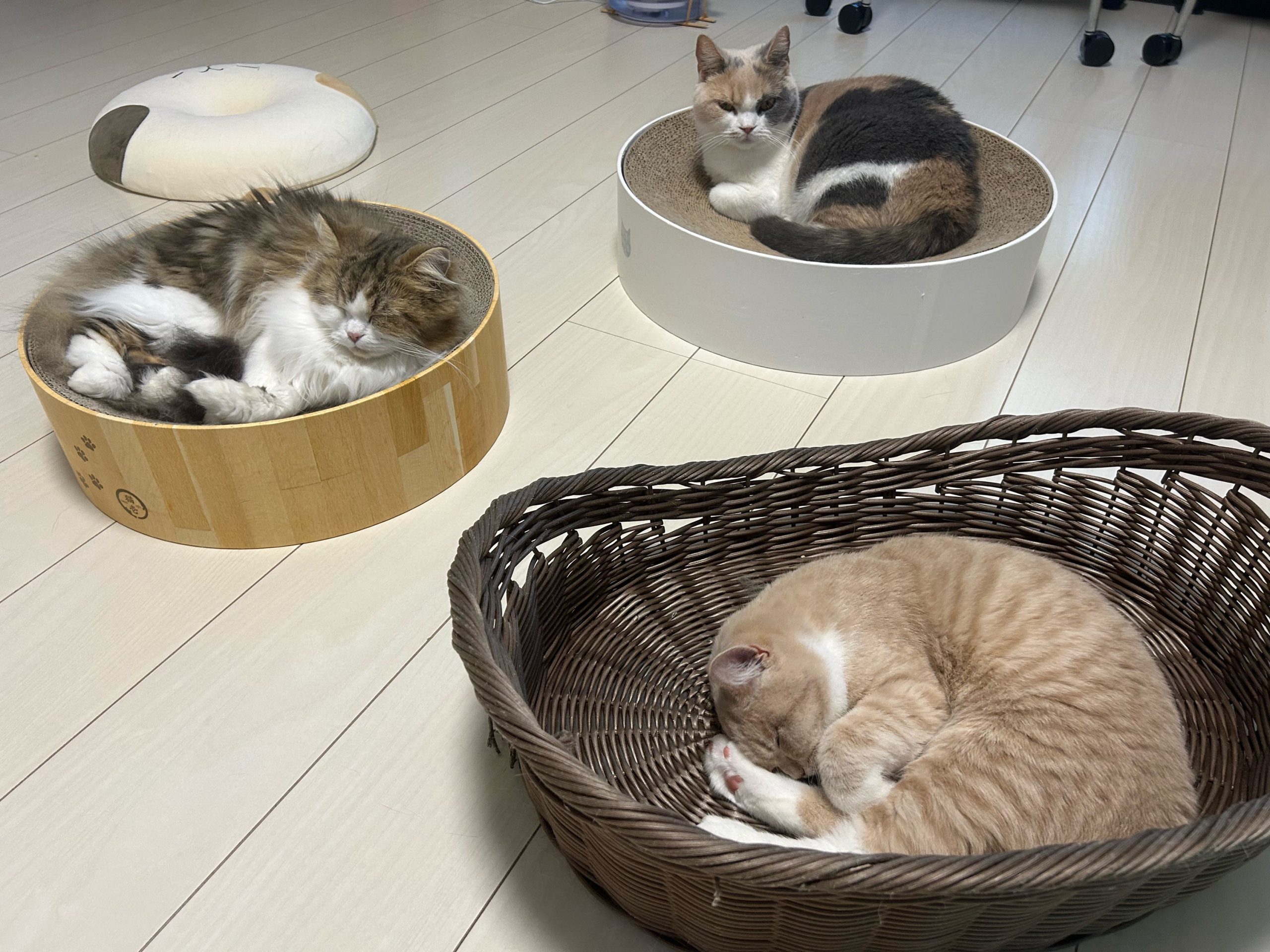 午後:ふれあい体験でたくさん遊んでいただき、猫ちゃんたちはみんなぐっすり😴