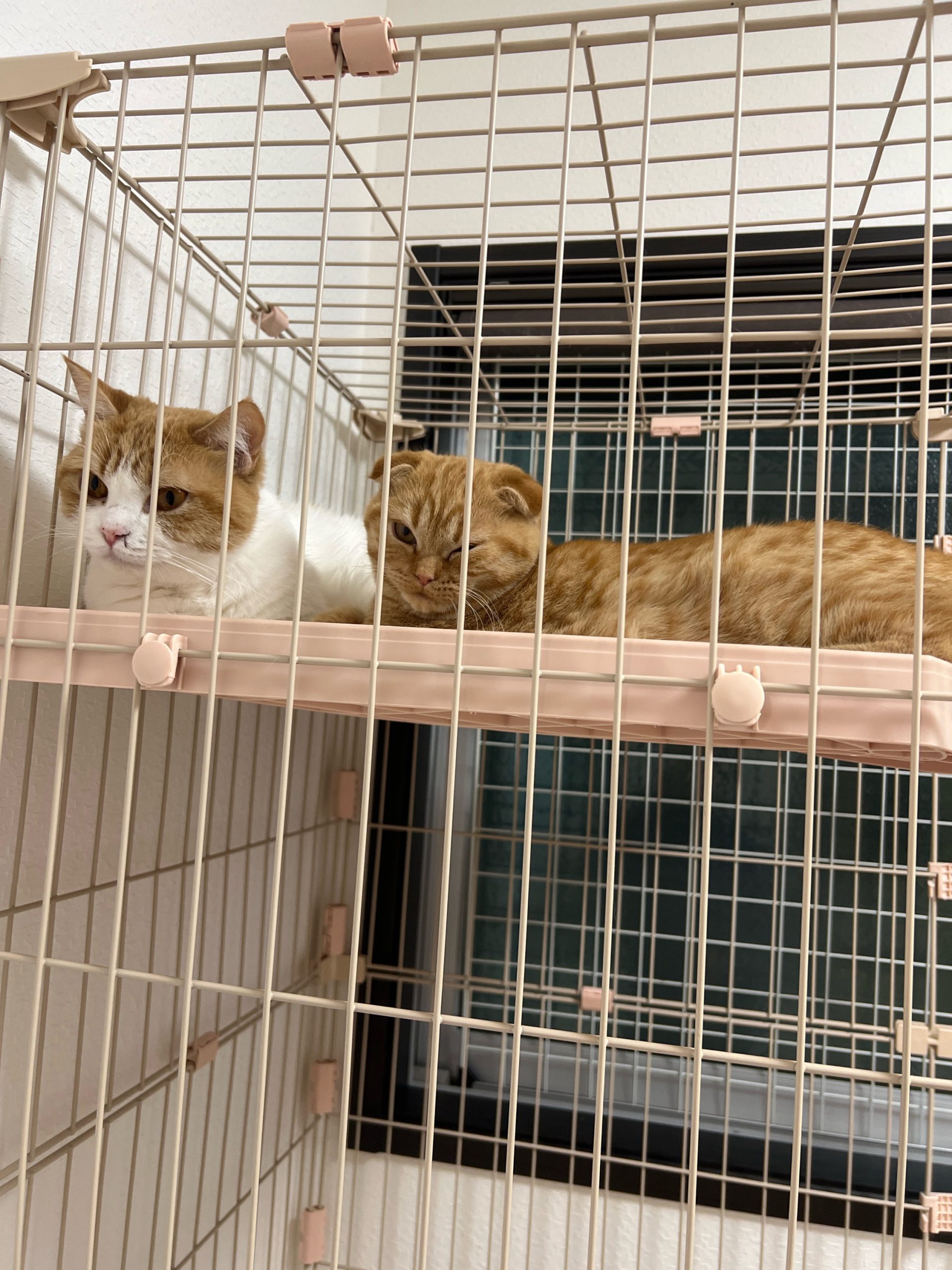 おこめちゃんとロコ赤ちゃんの長女ちゃんは相変わらずケージから離れず。ロコちゃんがケージに戻ると寄り添って甘えん坊さん😻