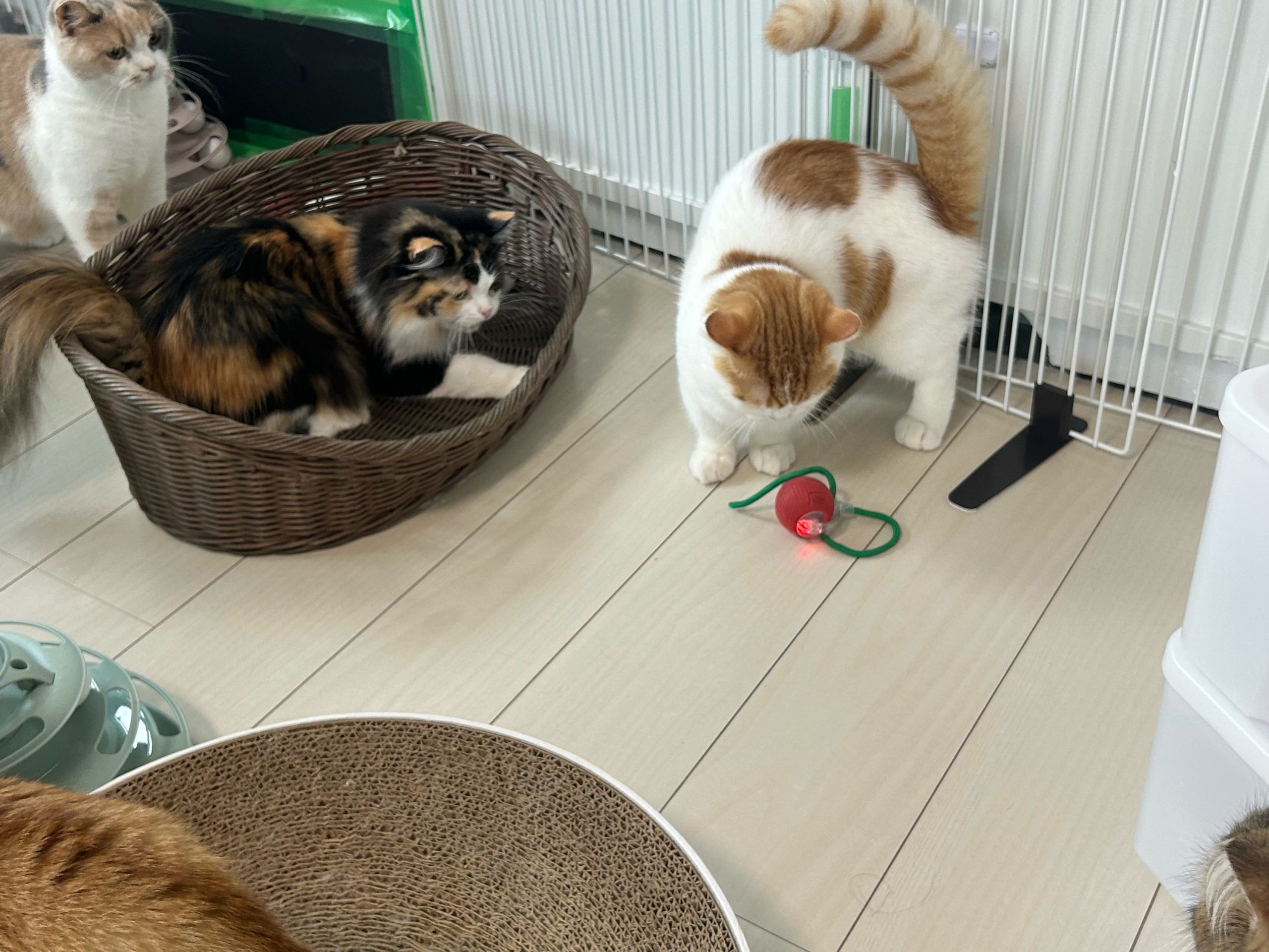 神長さんが電動のおもちゃをプレゼントしてくださり、猫ちゃんたちみんな興味津々で追いかけていました🧶🐈🐾