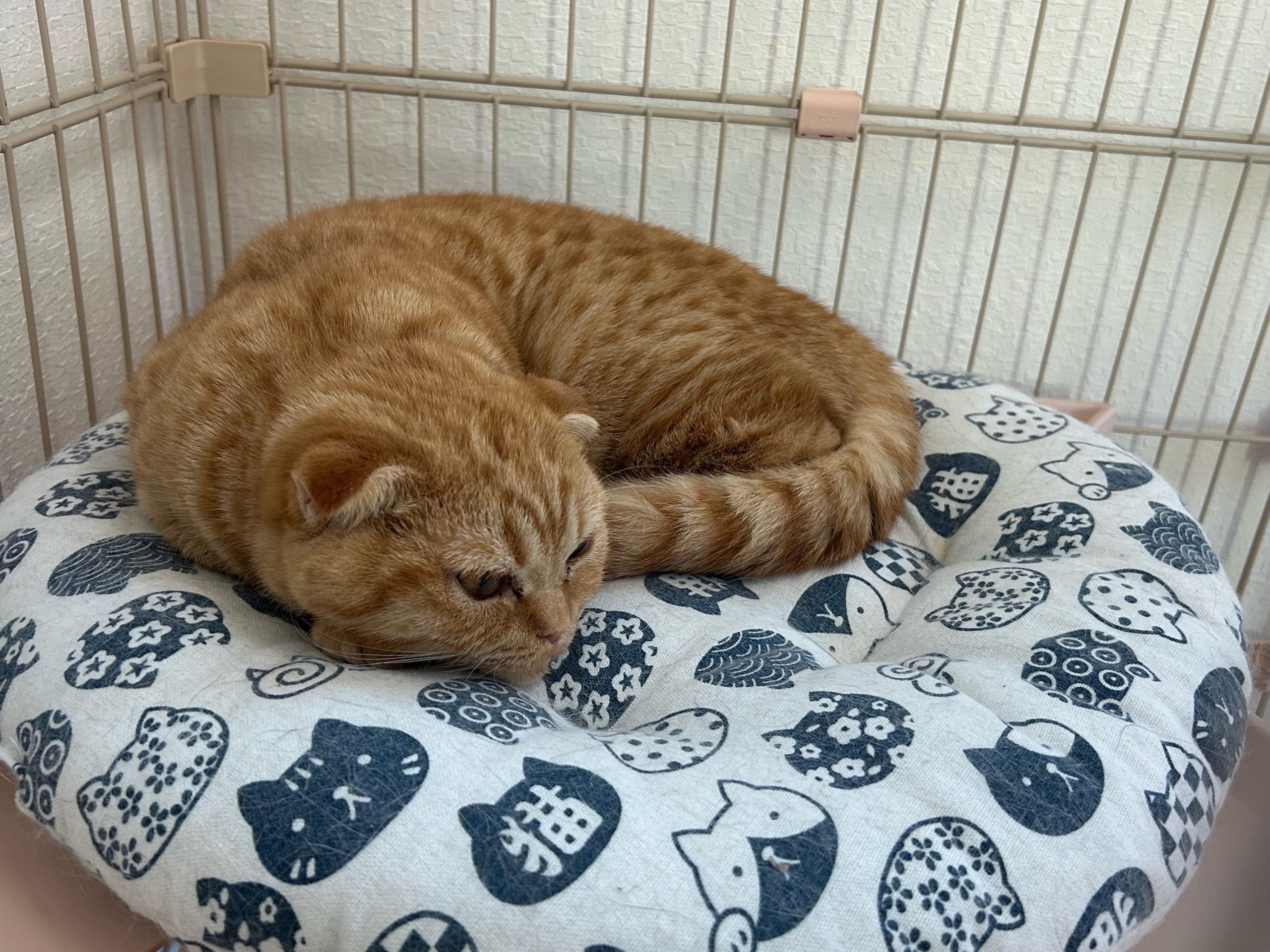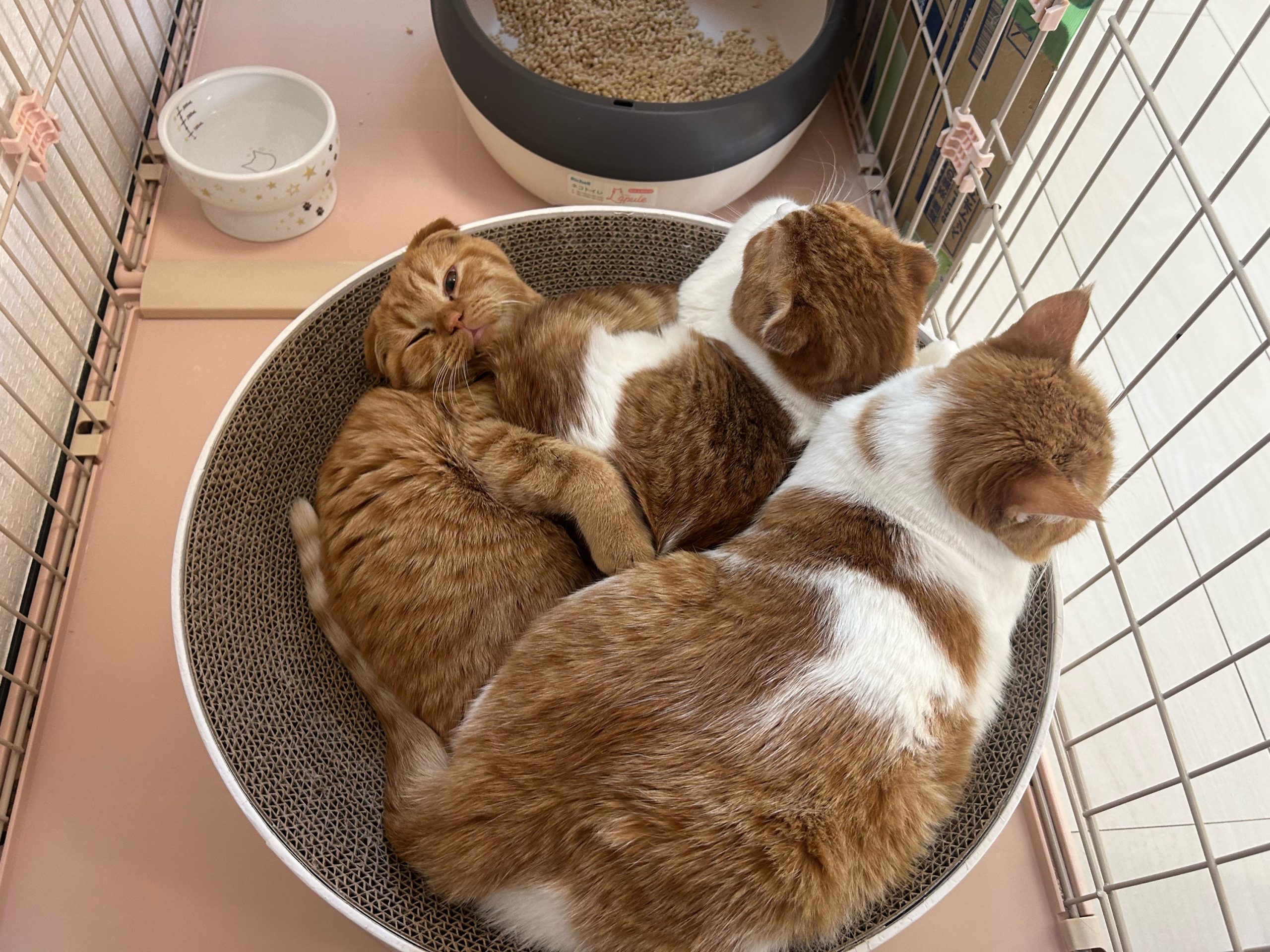 ケージを開けるとみんな出てきて散策してました。2ちゃんだけキャットタワーで寝ていてあまり元気がなさそうで体重も増えてない感じです😔