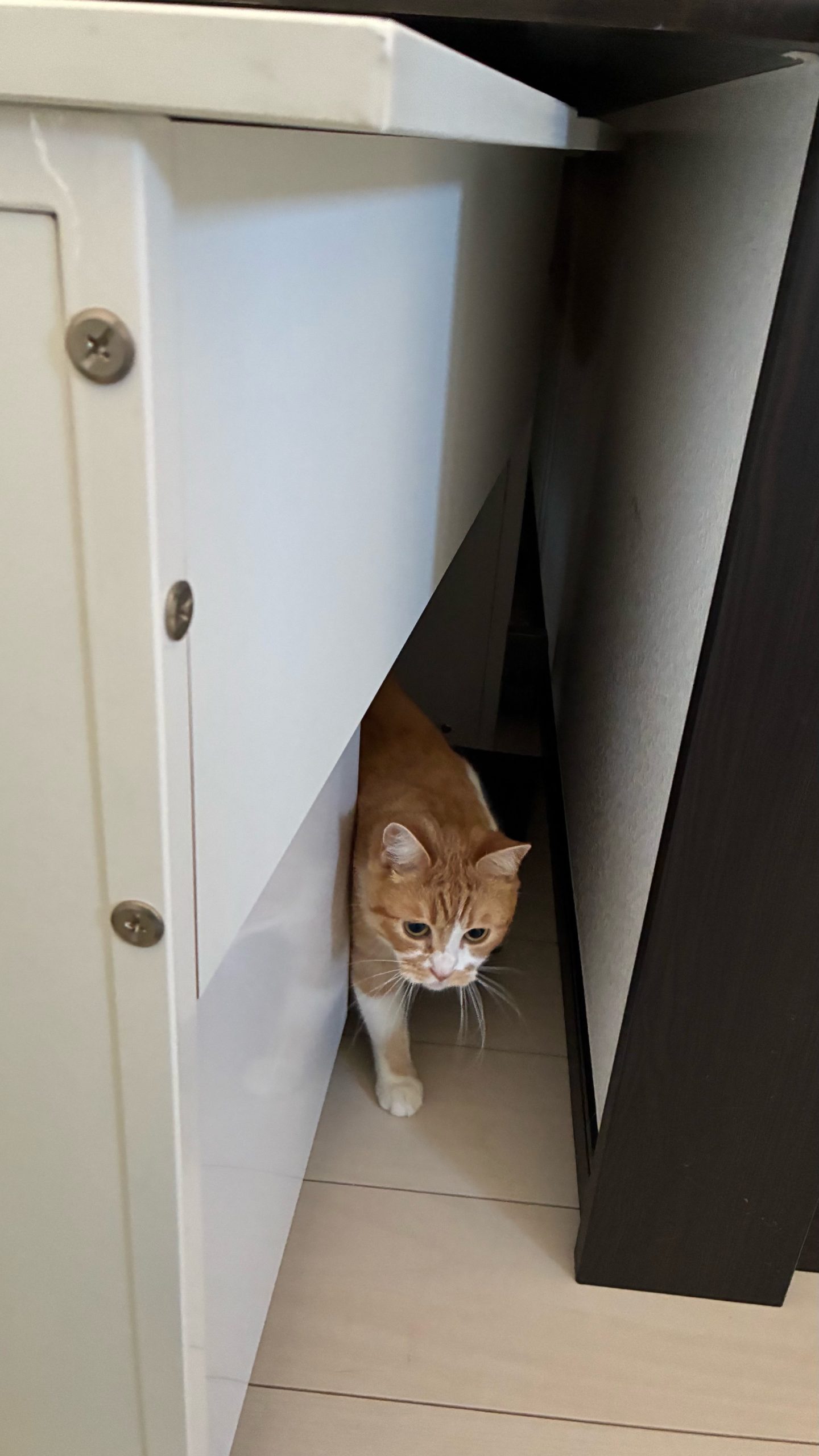 むぎちゃん甘えモードでずっとおしゃべりしてくれます。パーテーション閉めてあっても知らぬ間にキッチンの中にもおりました🐈