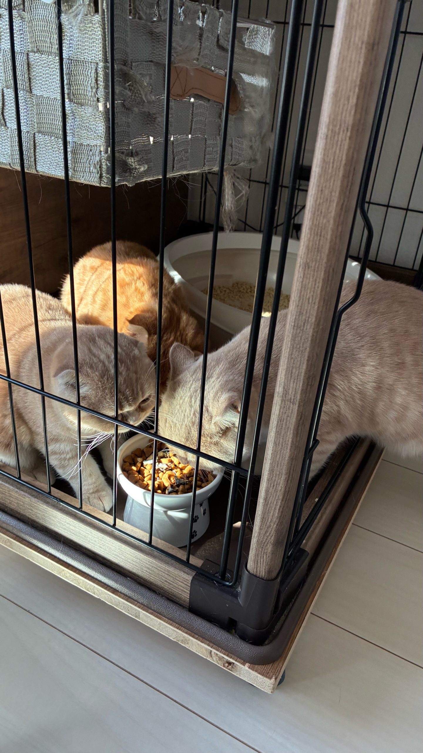 きびくんはケージでごはん、ちくわくんがほぼ食べ終えた段階できびくんケージオープン。逆にちくわくんの食欲が旺盛できびくんのごはんも食べています😅